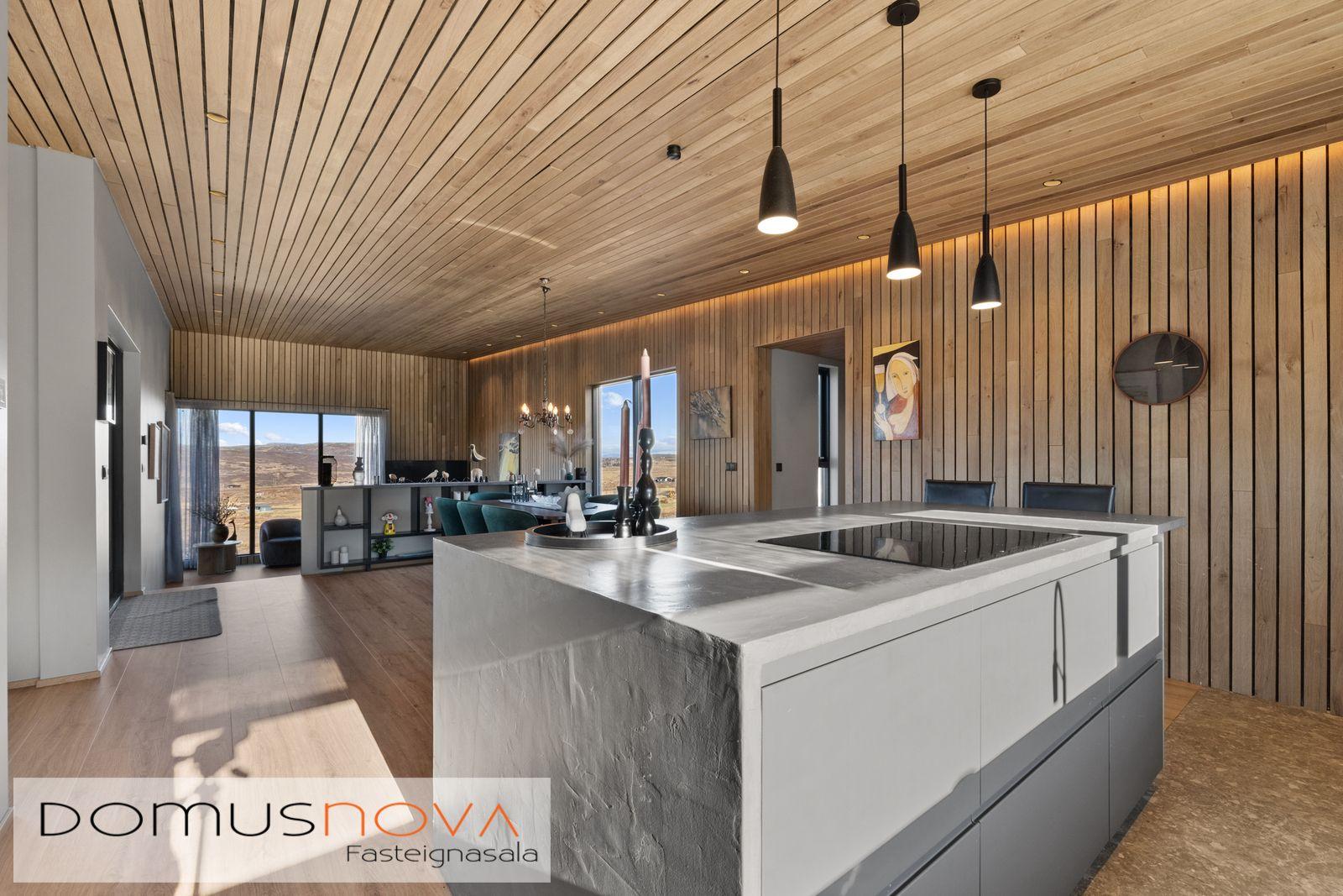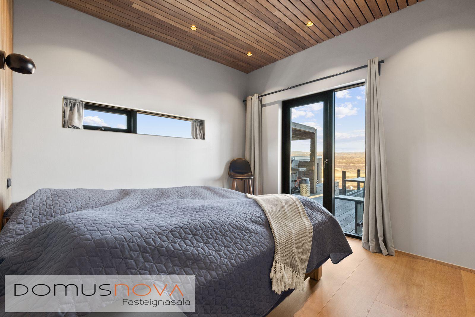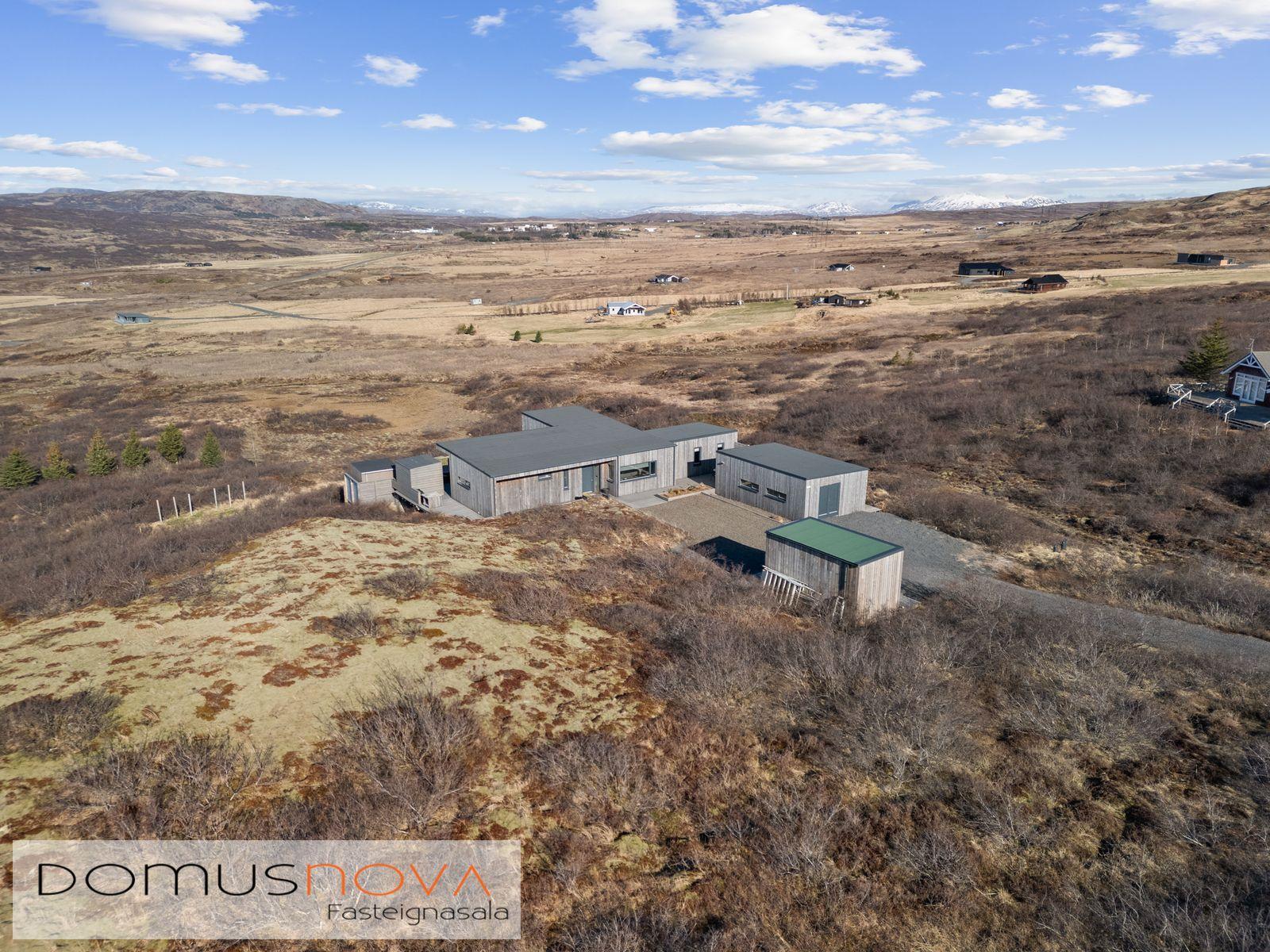 Eignin stendur á 9000 fm eignarlóð á lokuðu frístundahúsasvæði (símahlið) með fallegu útsýni til suðurs, vesturs og fjalla í norðri.