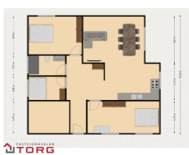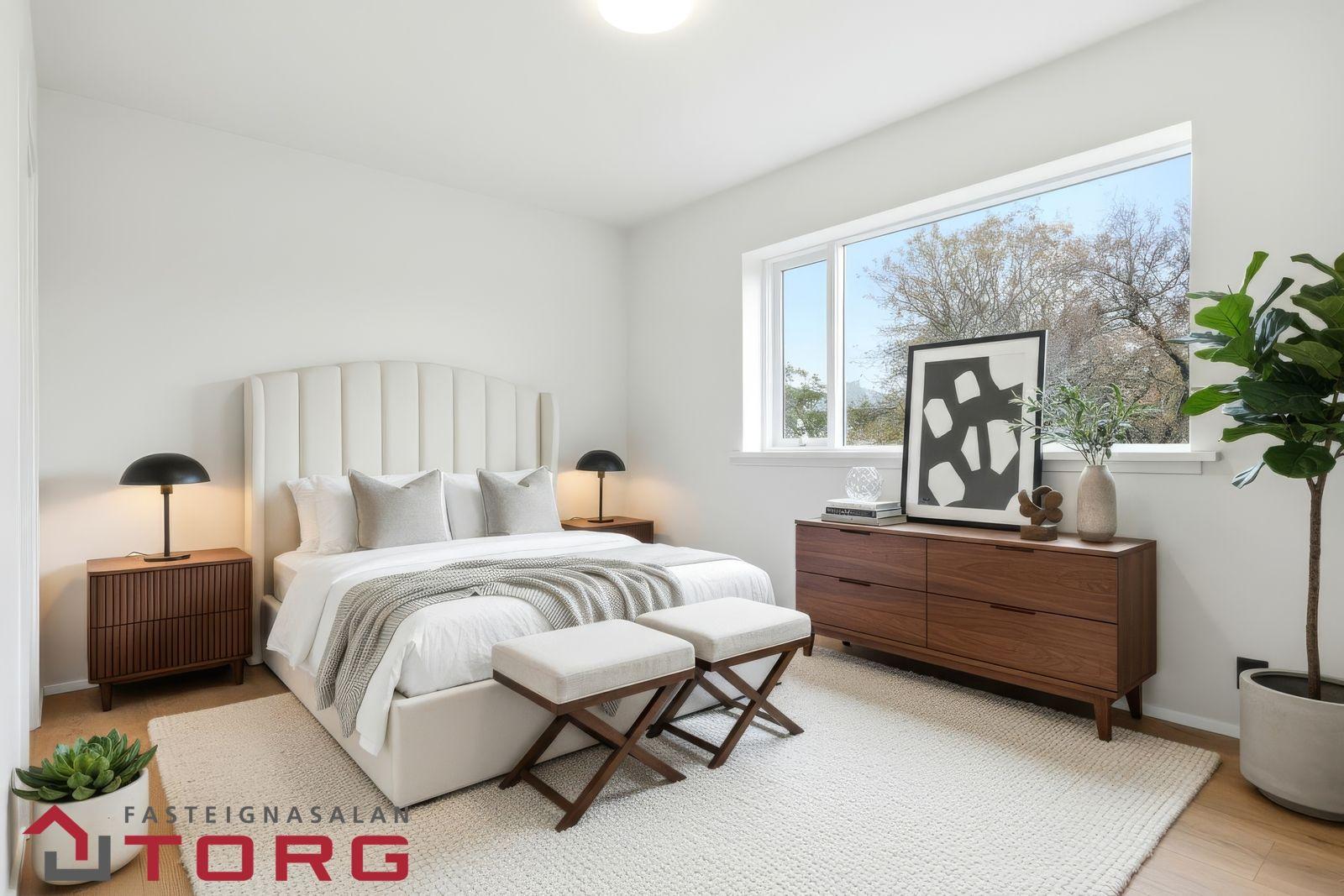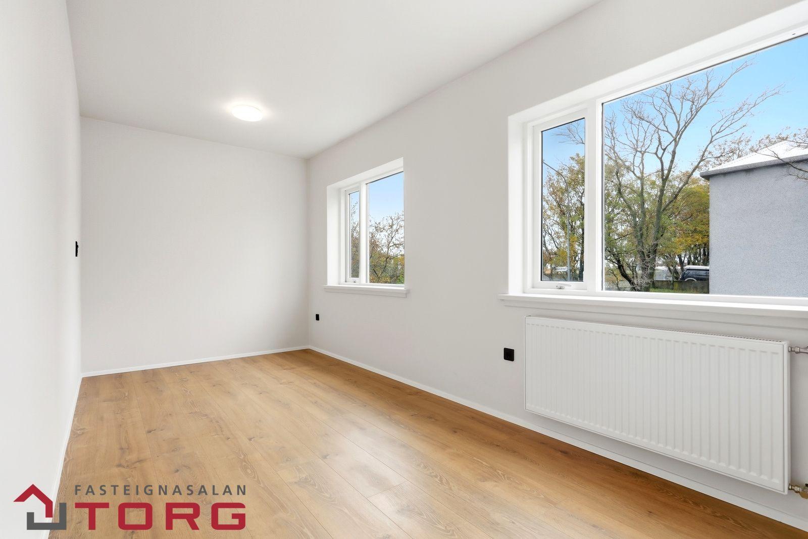 Svefnherbergi eru 3, tvö mjög rúmgóð, harðparket á gólfum.
