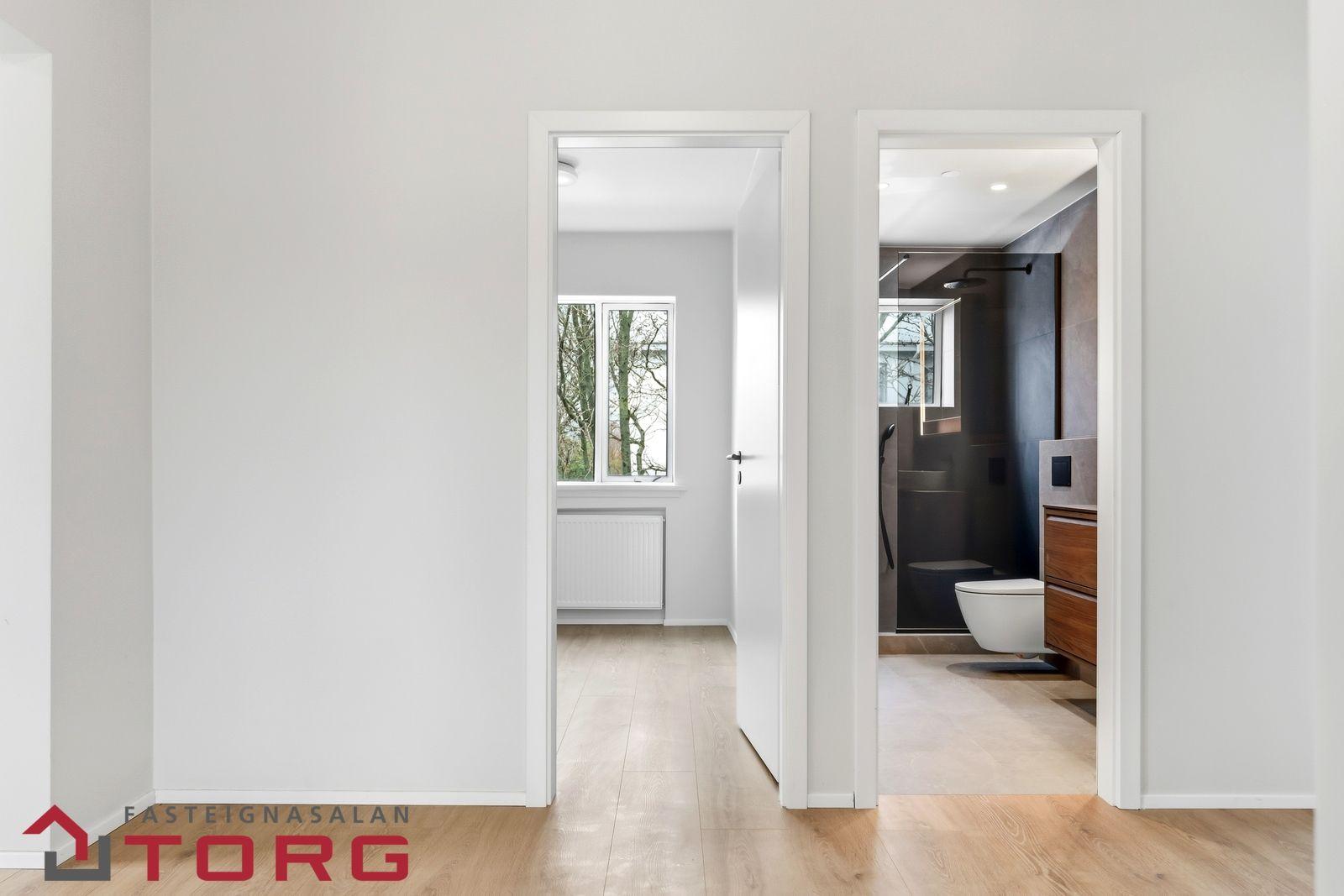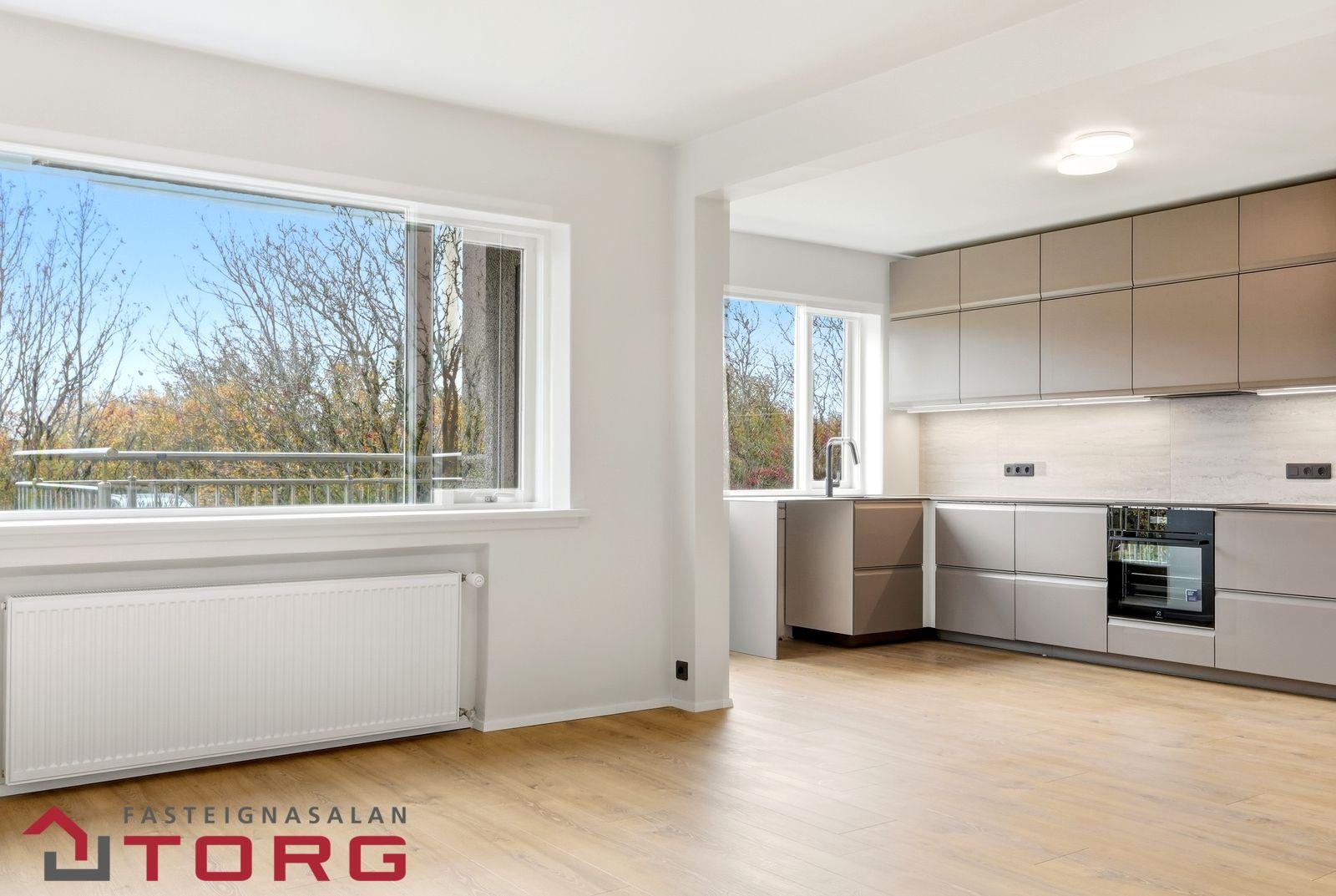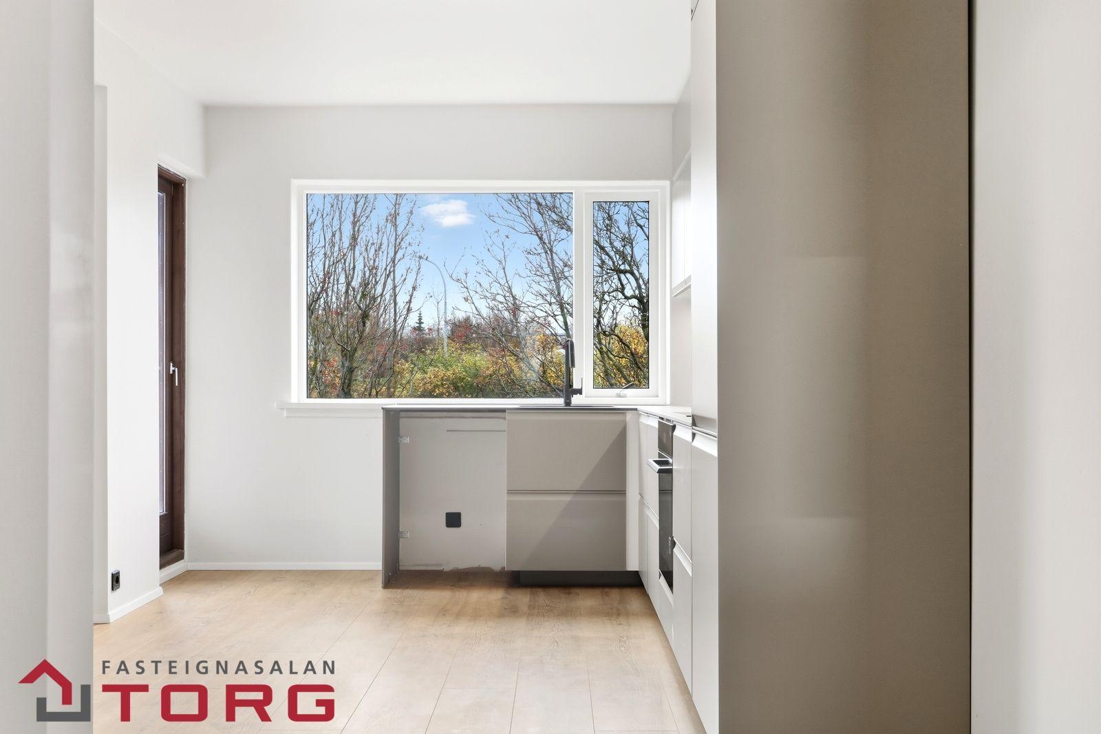 Fasteignasalan TORG kynnir: Laus við kaupsamning. Glæsileg endurnýjuð sérhæð innst í götu með nægum bílastæðum. Eignin er 131,4 fm þar af bílskúr 24,8 fm sem innréttaður hefur verið sem studioíbúð. Íbúðin hefur öll verið endurinnréttuð og var þeirri framkvæmd að ljúka, íbúðin skiptist í eldhús með vandaðri innréttingu og tækjum, stór og björt stofa, 3 svefnherbergi og glæsilegt baðherbergi.