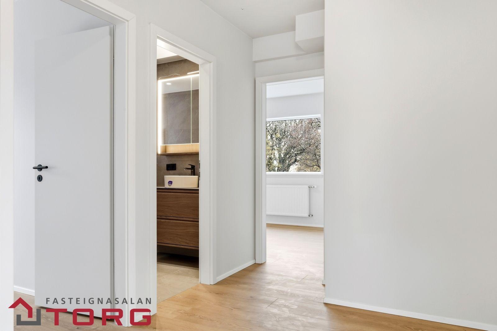 Allar innréttingar, hurðar, gólfefni og tæki eru ný í íbúðinni auk þess sem dregið hefur verið nýtt rafmagn í alla íbúðina og rofar endurnýjaðir, neysluvatnslagnir, ofnalagnir og ofnar.