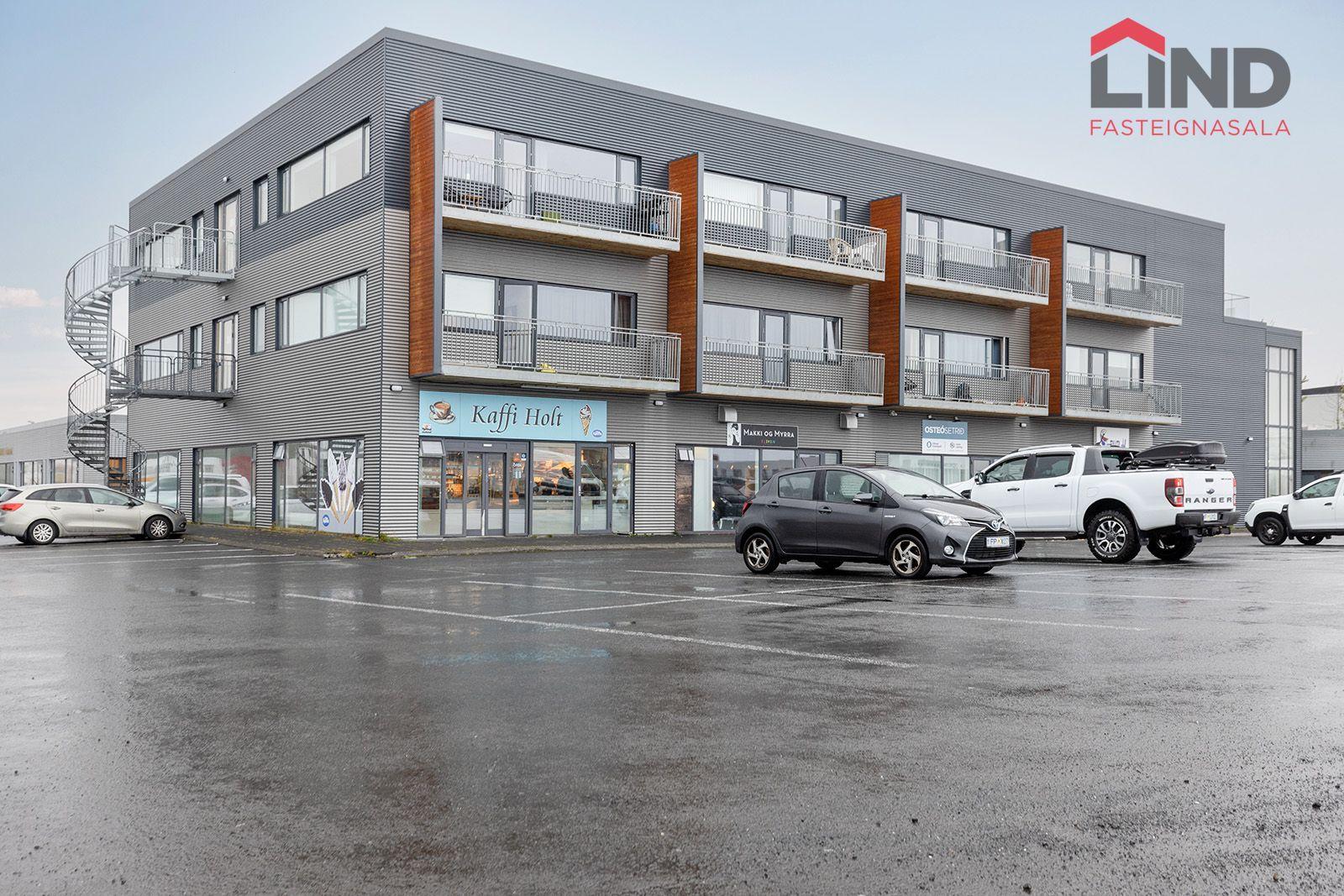 Húsið er á 3 hæðum með 19 íbúðum í einu stiga- og lyftuhúsi. Á jarðhæð er aðalinngangur byggingarinnar frá bílastæði að norðanverðu, tæknirými, hjóla- og vagnageymsla. Hverri íbúð fylgir rúmgóð sérgeymsla í hæðinni. Í húsinu er lyfta. á Jarðhæð er þjónusturými t.d. bakarísverslun, heildverslun, hárgreiðslustofa og fleira.