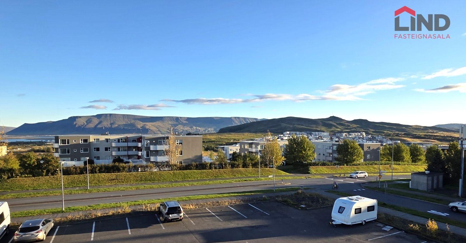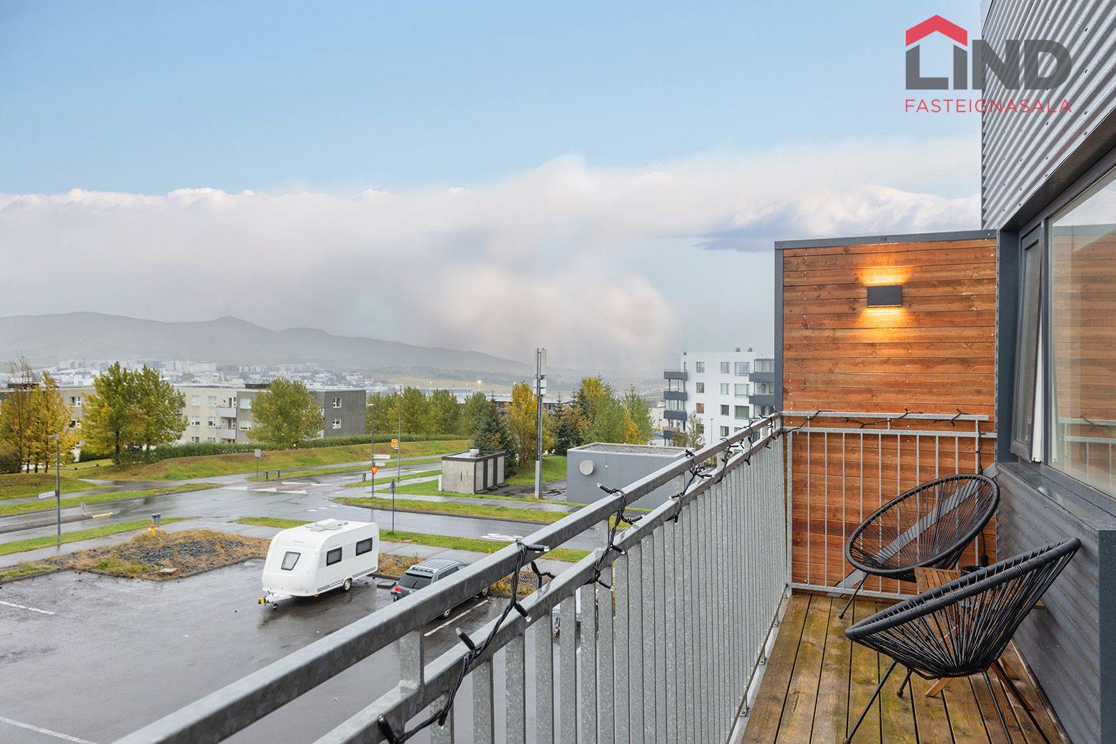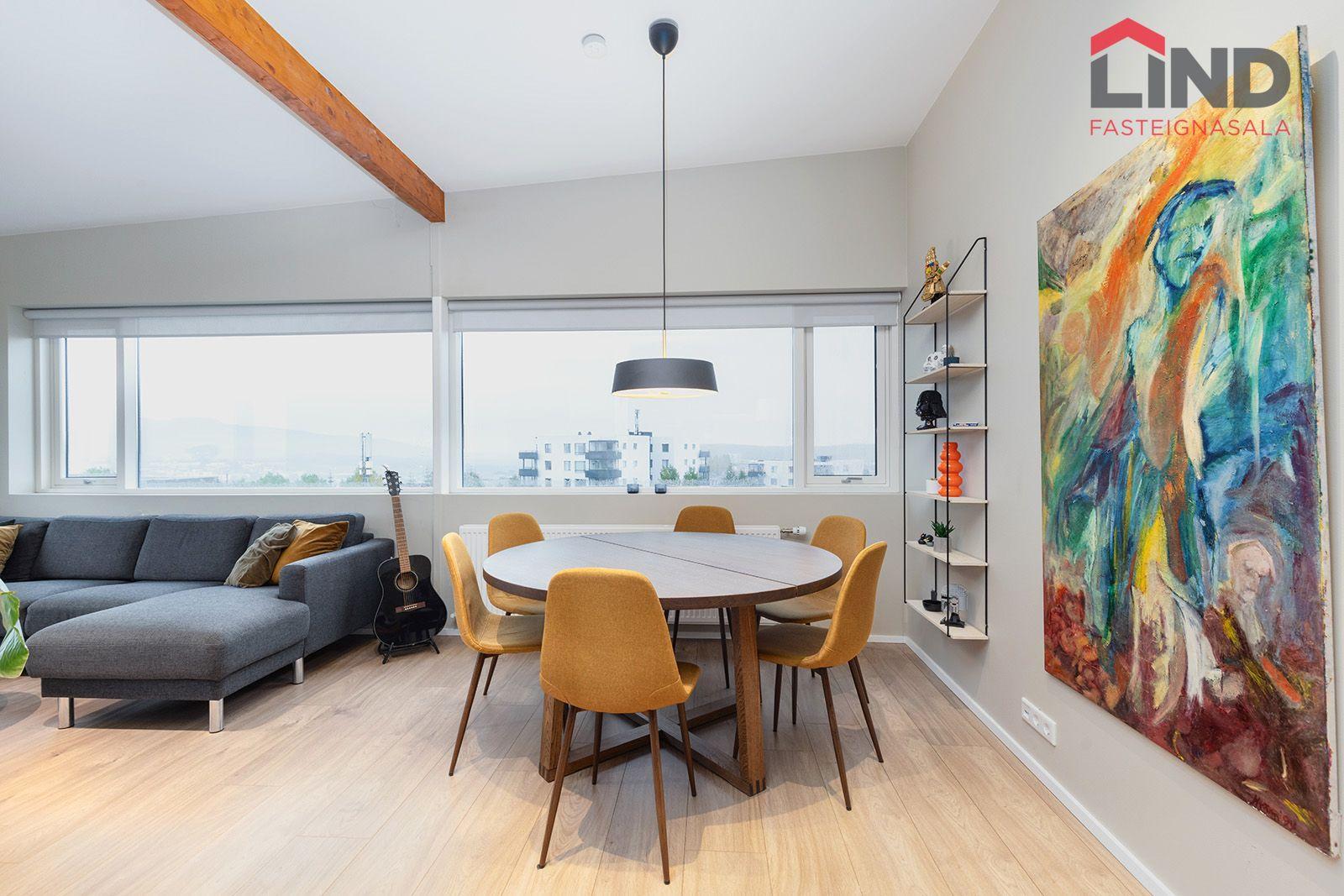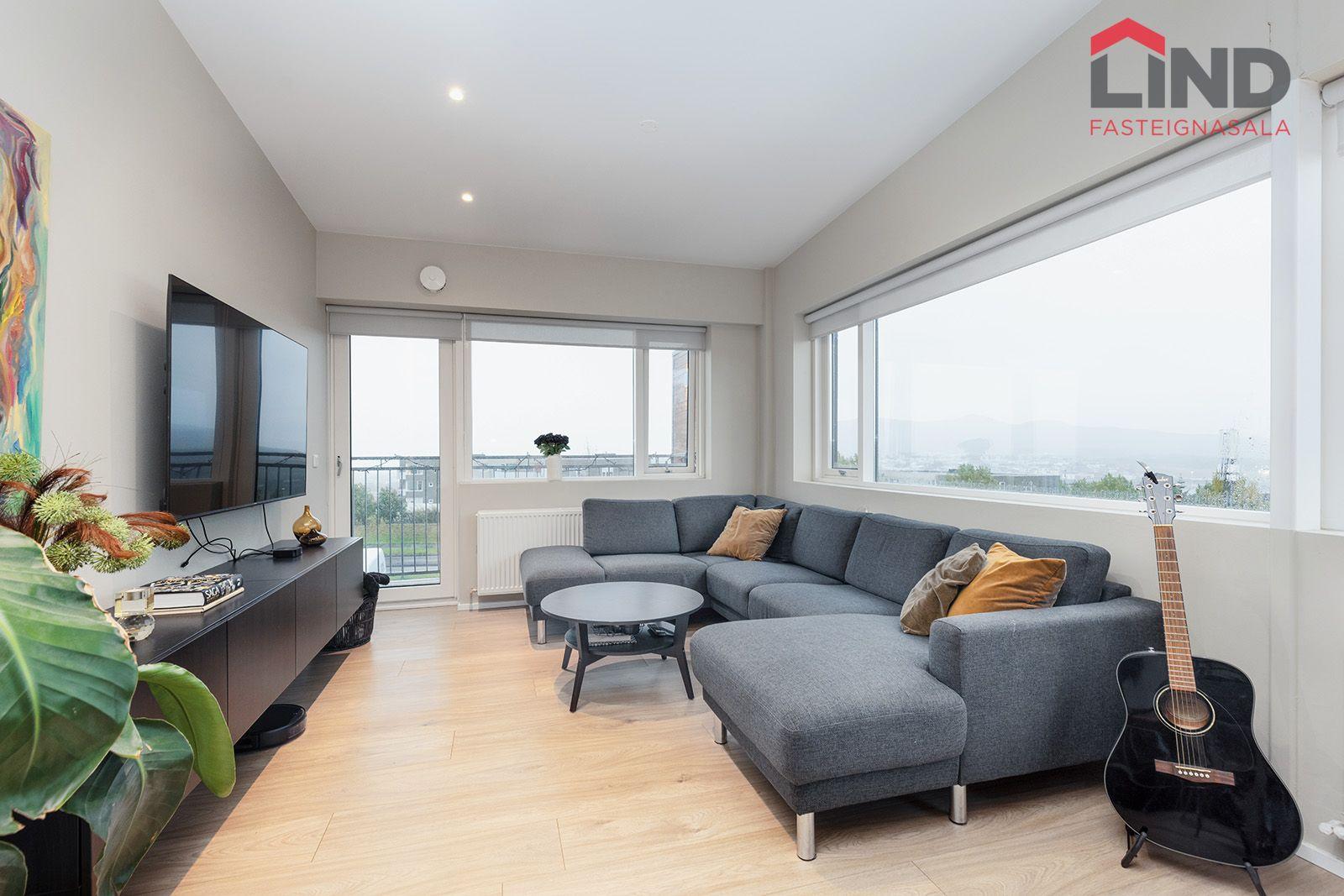 Útgengt út á norðursvalir með miklu útsýni yfir Esjuna og Faxaflóann