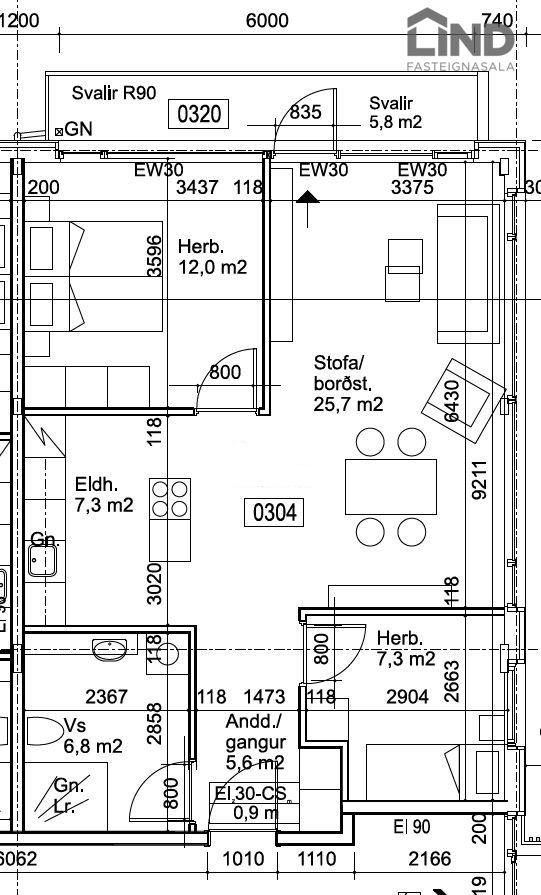 Íbúð 0304 er þriggja herbergja íbúð sem skiptist eftirfarandi: