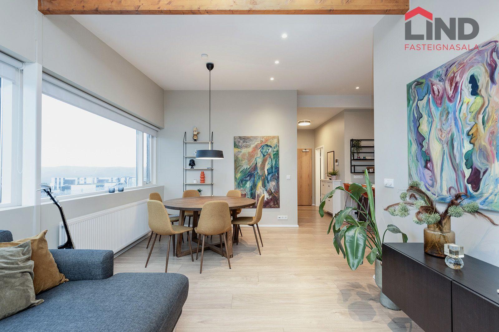 Aukin lofthæð, um 2,9 m er í íbúðinni. Vandað 12 mm harðparket.