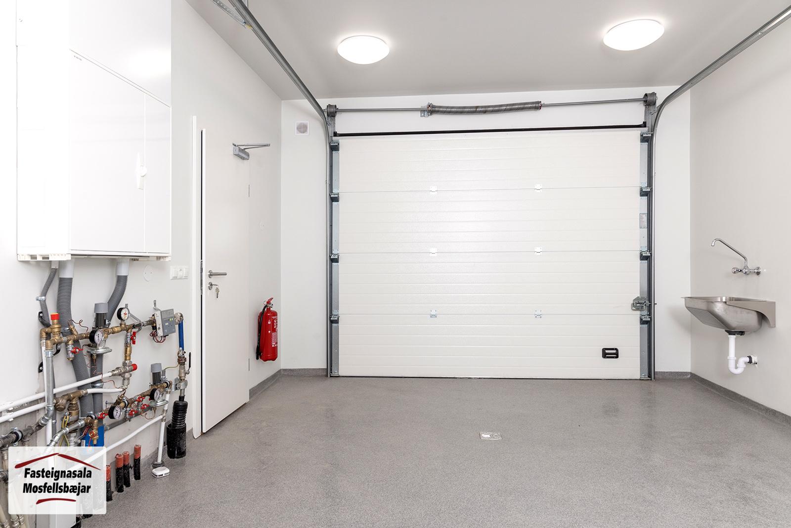 Bílskúr er með epoxy á gólfi. Er skráður 27,2 m2.