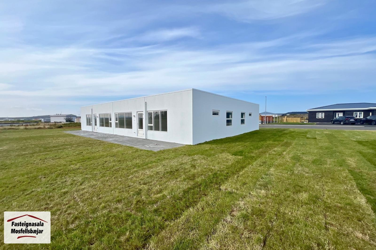 Parhús á einni hæð með bílskúr byggt úr forsteyptum einingum. Útveggir eru klæddir forsteyptri veðurkápu að utanverðu. Þak er varið með PVC dúk með malarfargi. Gluggar eru Ál-tré með tvöföldu K-gleri. Gert er ráð fyrir 2 bílastæðum á lóðinni, 1 í bílskúr. Steypt, opin sorpskýli eru komin á lóð.