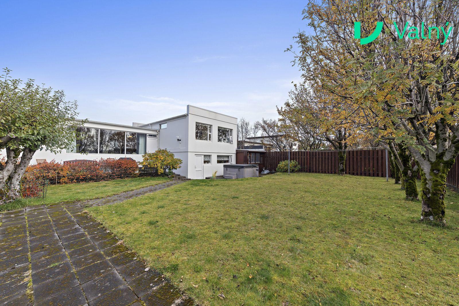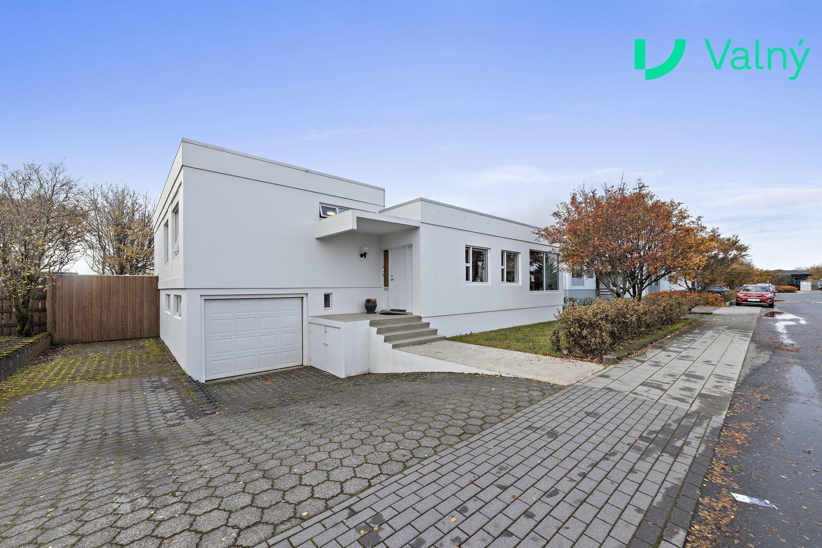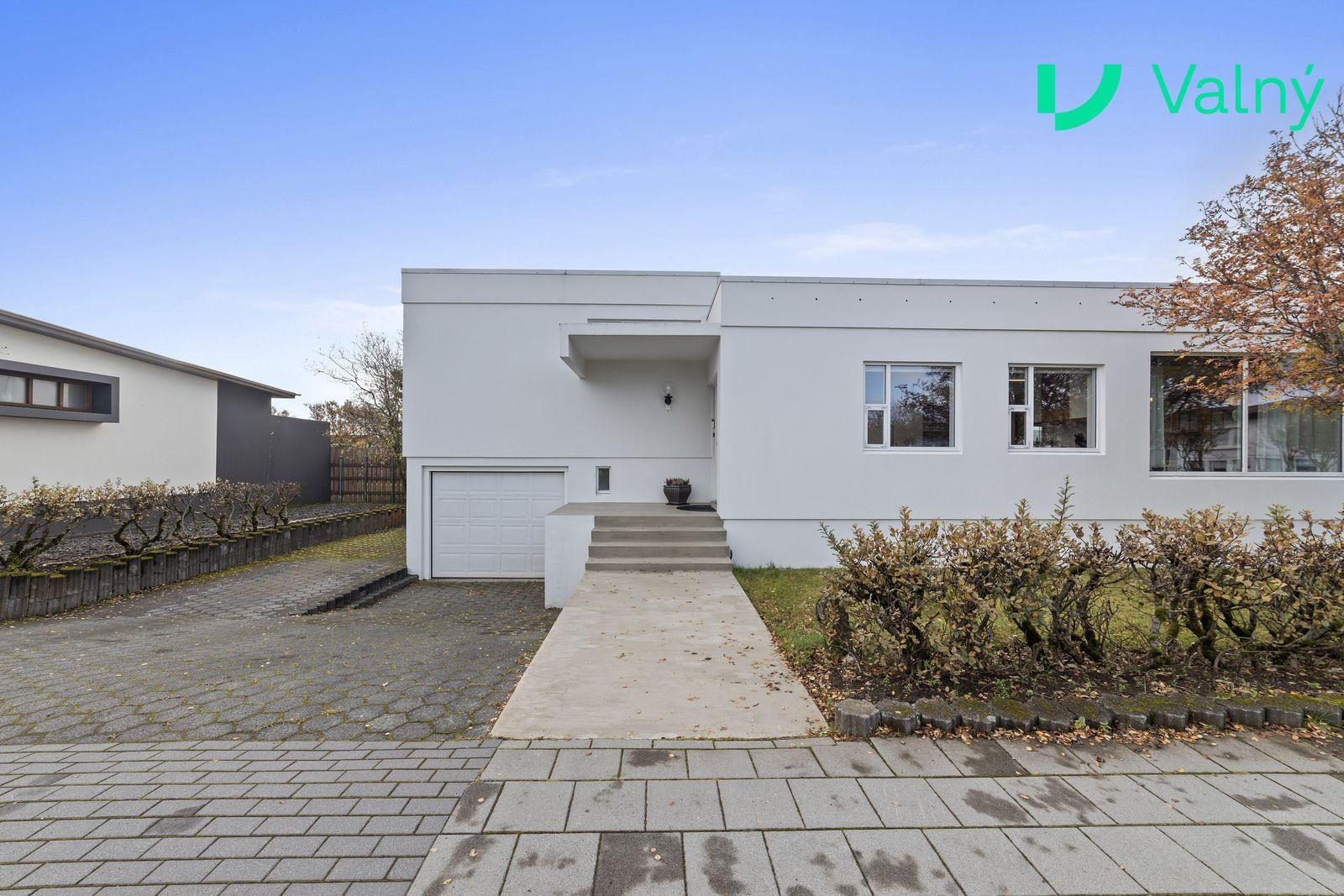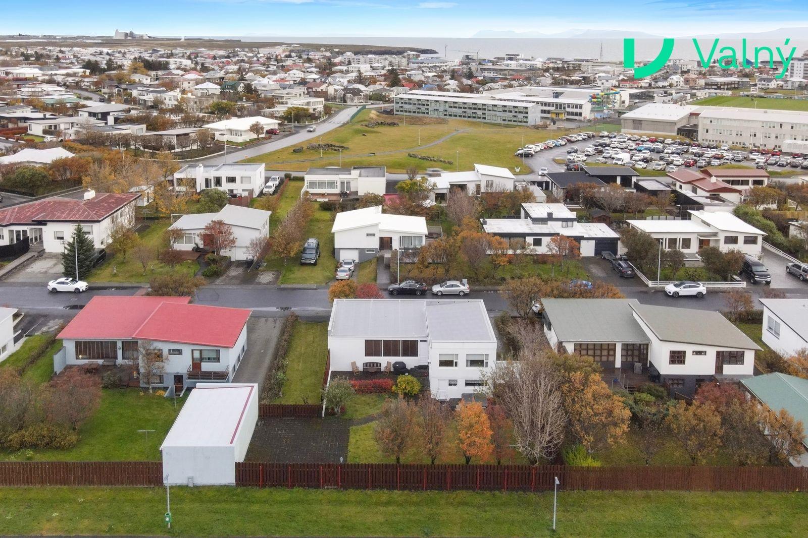 Háaleiti 31, 230 ReykjanesbærVel skipulagt sex herbergja einbýlishús á vinsælum og rólegum stað í Keflavík. Um er að ræða fjögur svefnherbergi, rúmgott alrými og þvottahús, innbyggðan bílskúr og stóra lóð með hellulagðri verönd og heitum potti. Snjóbræðsla er í innkeyrslu og stétt.