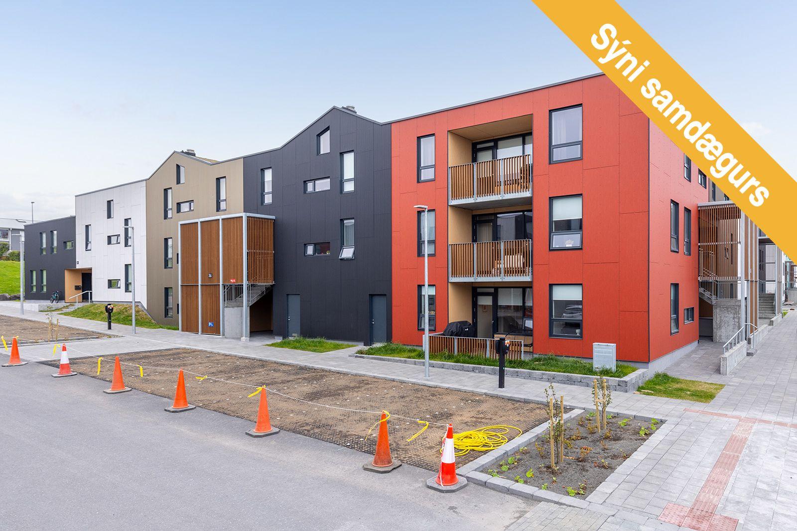 Íbúð 104 á 1. hæð með 2 svefnherbergjum, 1 baðherbergi með þvottaaðstöðu, sérafnotareit og sérgeymslu innan íbúðar. Rúmgott alrými og opið eldhús. Horn íbúð.Íbúðirnar afhendast fullfrágengnar fyrir utan megingólfefni en flísar á baðherbergjum/þvottahúsi.