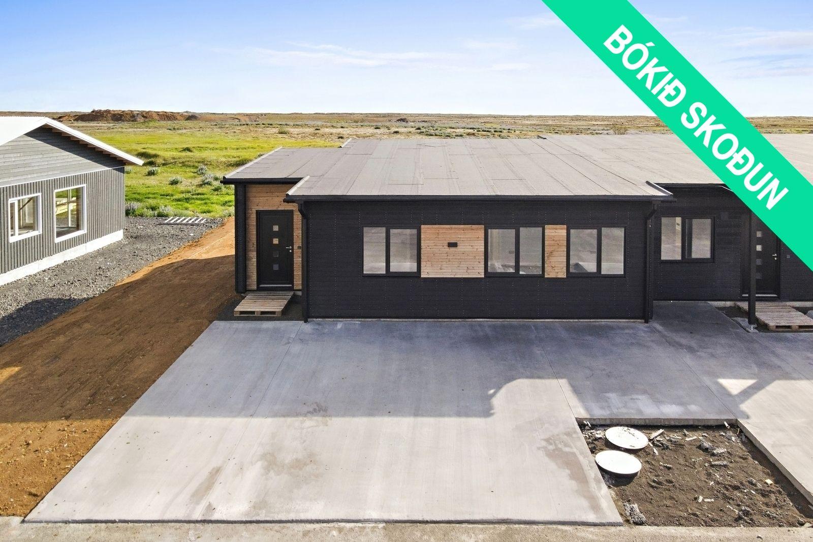 Háteigur 48, 250 GarðurNýtt raðhús á vinsælum stað í Garði. Um er að ræða þriggja svefnherbergja eign á einni hæð með rúmgóðri stofu, opnu eldhúsi og timburverönd. Frágengin lóð og steypt bílastæði.
