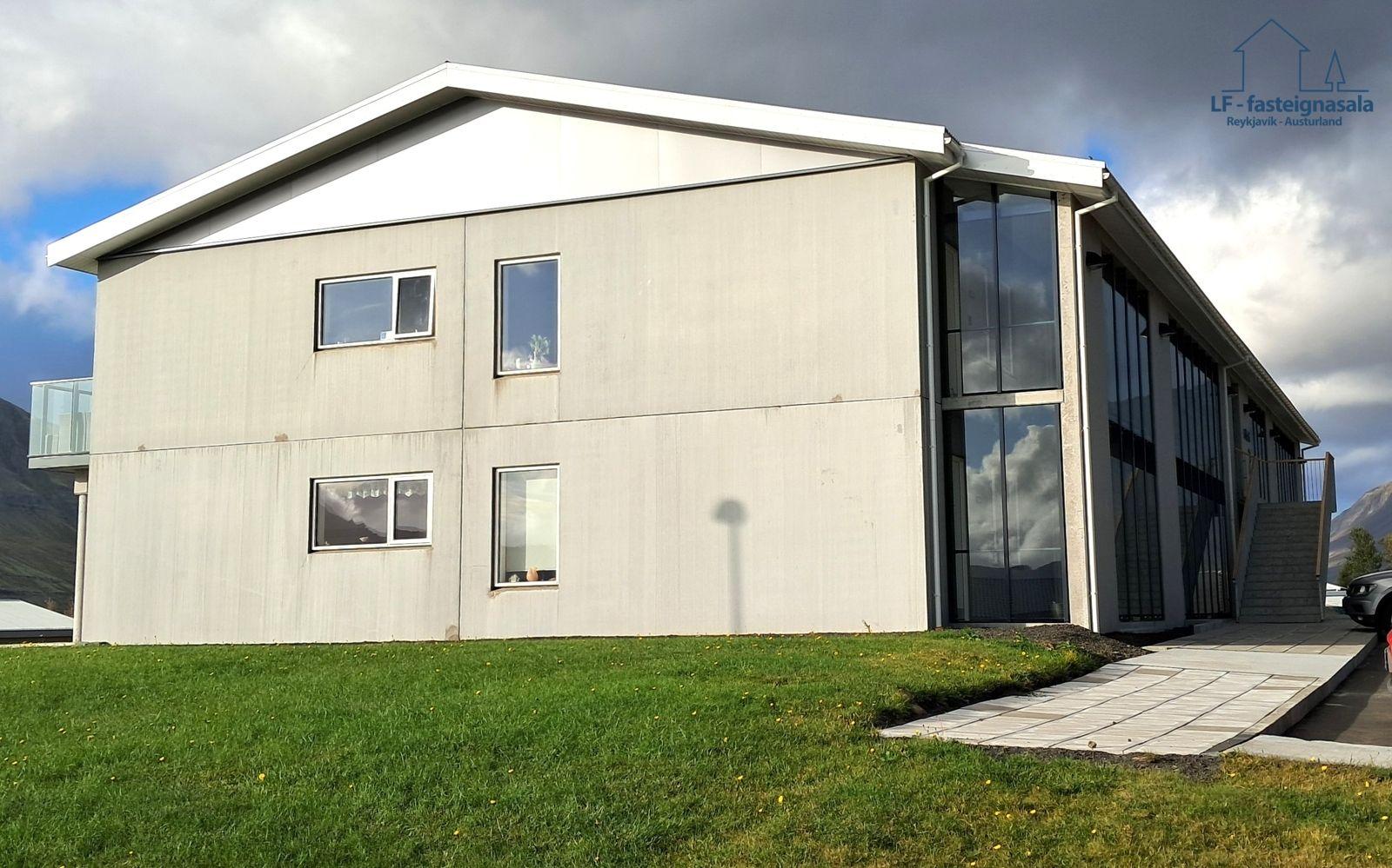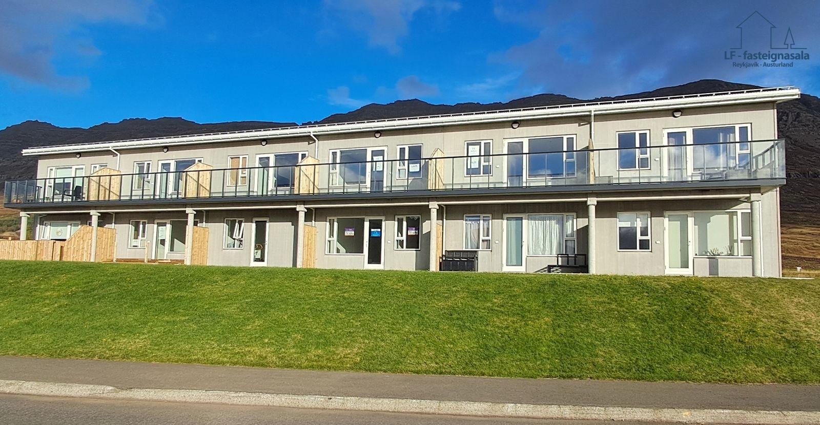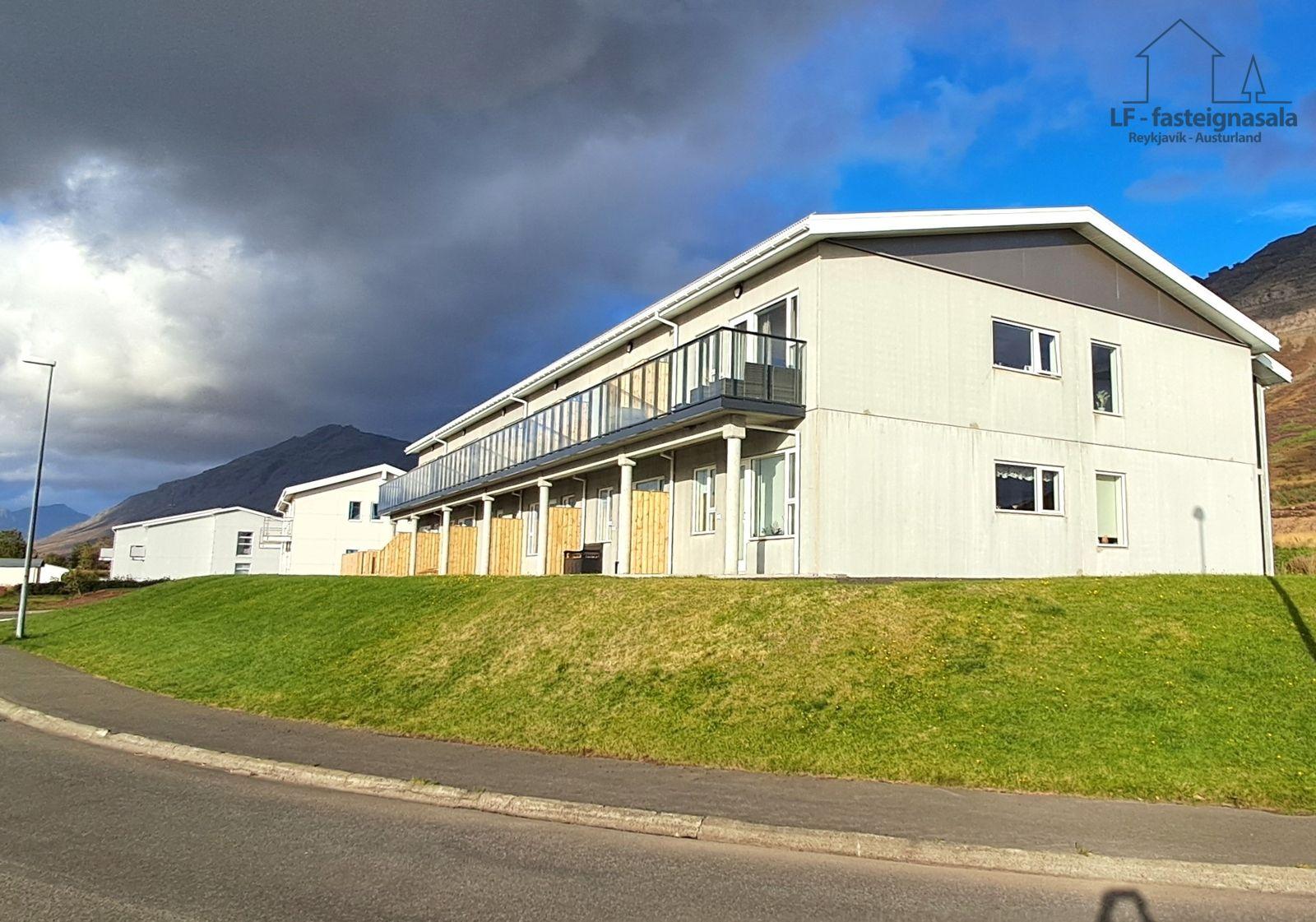 LF-fasteignasala/Lindin fasteignir s. 893-1319 og Þórdís Pála Reynisdóttir löggiltur fasteignasali thordis@lf-fasteignasala.is kynna: Sólbakki 2, Neskaupstað íbúð á neðri hæð. ÍBÚÐIN UPPFYLLIR SKILYRÐI HLUTDEILDARLÁNA EN EINNIG GETA SELJENDUR LÁNAÐ HLUTA ÚTBORGUNAR SAMKVÆMT NÁNARA SAMKOMULAGI. Vönduð og þægileg, fullfrágengin íbúð. Íbúðin er 78,0 m², þar af er geymsla 3,6 m² íbúð með sérinngangi og góðu aðgengi. Íbúðin skiptist í forstofu, stofu og eldhús í sama rými, tvö svefnherbergi, baðherbergi með rúmgóðri þvottaaðtöðu og geymslu á geymslugangi. Sameignileg hjóla- og vagnageymsla með sér inngangi. Forstofan er rúmgóð með fataskáp, flísar á gólfi. Alrýmið er rúmgott með vandaðri eldhúsinnréttingu frá Brúnás og eyju með helluborði með viftu í. Hægt er að hafa ljós og eða viftu fyrir ofan helluborðið. Bökunarofn er í þægilegri vinnuhæð. Stór svartur stálvaskur er í innréttingunni Steypt verönd er framan við stofuna og er svalahurðin vönduð og hægt að læsa henni utanfrá og opna og læsa með lykli. Gert er ráð fyrir innbyggðum ísskáp og einnig innbyggðri uppþvottavél. Svefnherbergin eru tvö, bæði með fataskápum og parketi á gólfum. Baðherbergi með flísum á gólfi, góð innrétting og speglaskápur. Flísalagt sturtuhorn. Þvottahús er hluti af baðherberginu, þar er innrétting fyrir 2 tæki (þvottavél og þurrkara). Sér geymsla ásamt vagna- og hjólageymslu er á geymslugangi og er inngangur beint í hjóla- og vagnageymsluna að sunnanverðu og einnig inn á ganginn að norðanverðu. Brúnas innréttingum með eikaráferð og hvítum efri skápum er í eldhúsi. Íbúðin er kynnt með rafmagnsofnum. Í forstofu og baðherbergi er rafmagnsgólfhiti. Íbúðin er fullbúin og er gott parket á alrými og herbergjum en flísar á öðrum gólfum innan íbúðarinnar. Hljóðdúkur í loftum íbúðar og gefur hann góða hljóðvist. Reykskynjarar, slökkvitæki og læstur lyfjaskápur fylgja íbúðinni. Húsið er úr forsteyptum einingum. Gólfplötur eru staðsteyptar. Þak er hefðbundið tvíhalla þak með bárujárni. Útihurðar, gluggar og svalahurðar eru timbur/ál með tvöföldu K-gleri. Lóðin er fullfrágengin með grasi og hellum. Aðgengi að húsinu er malbikað ásamt bílastæðum.