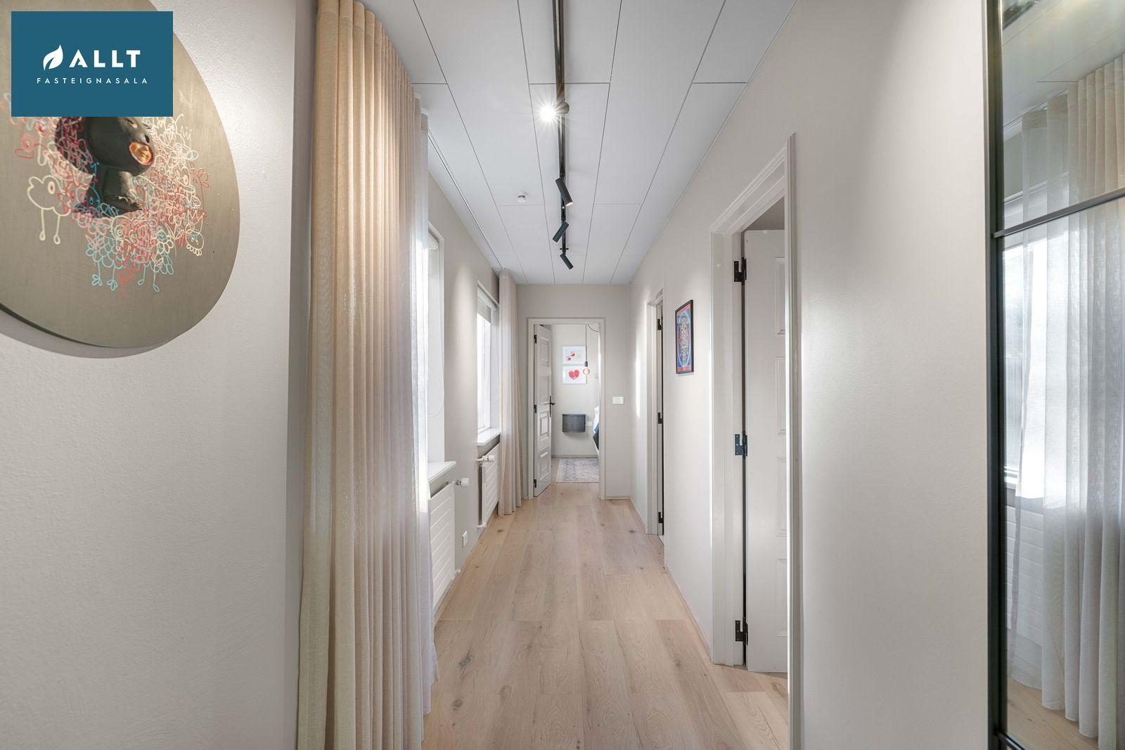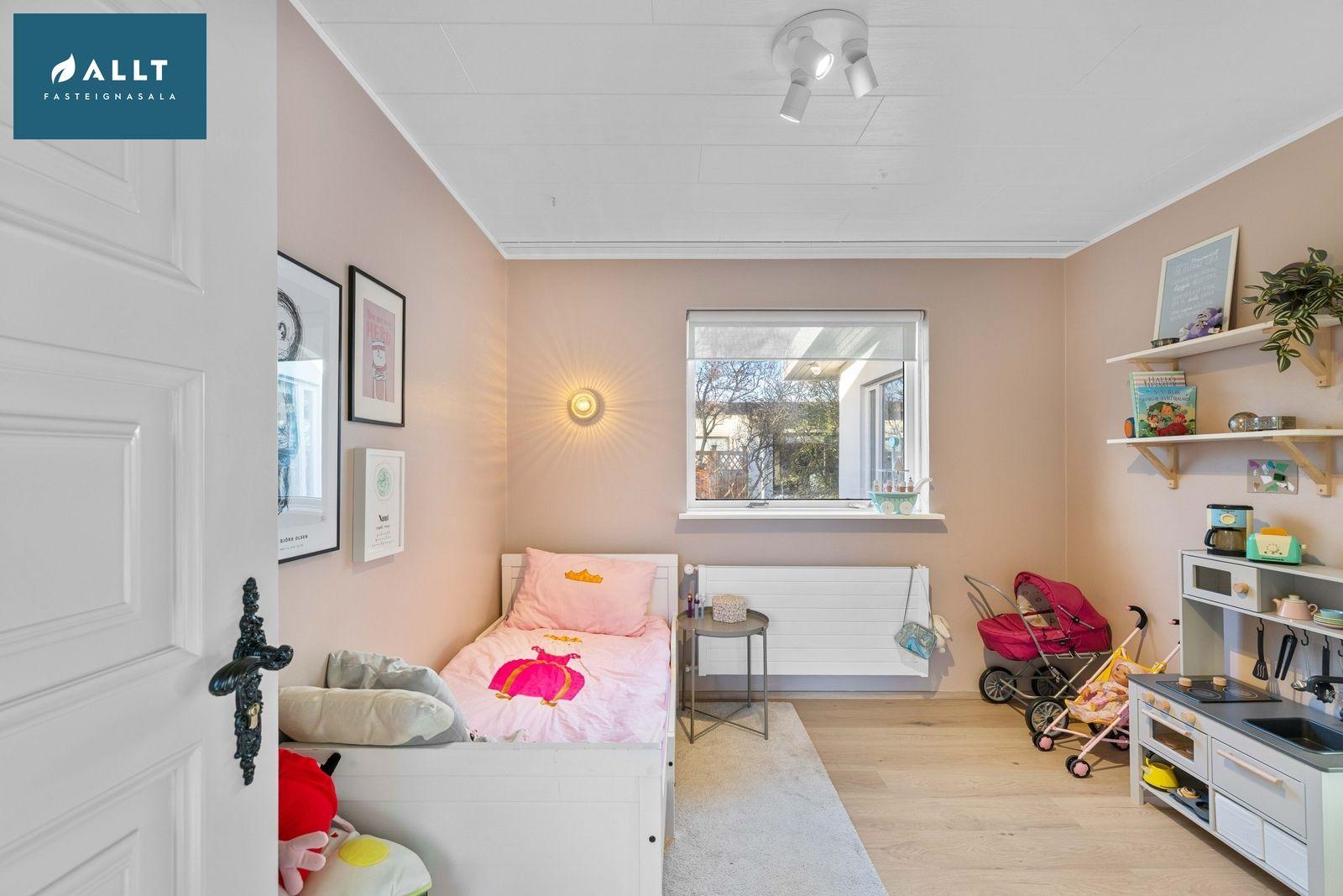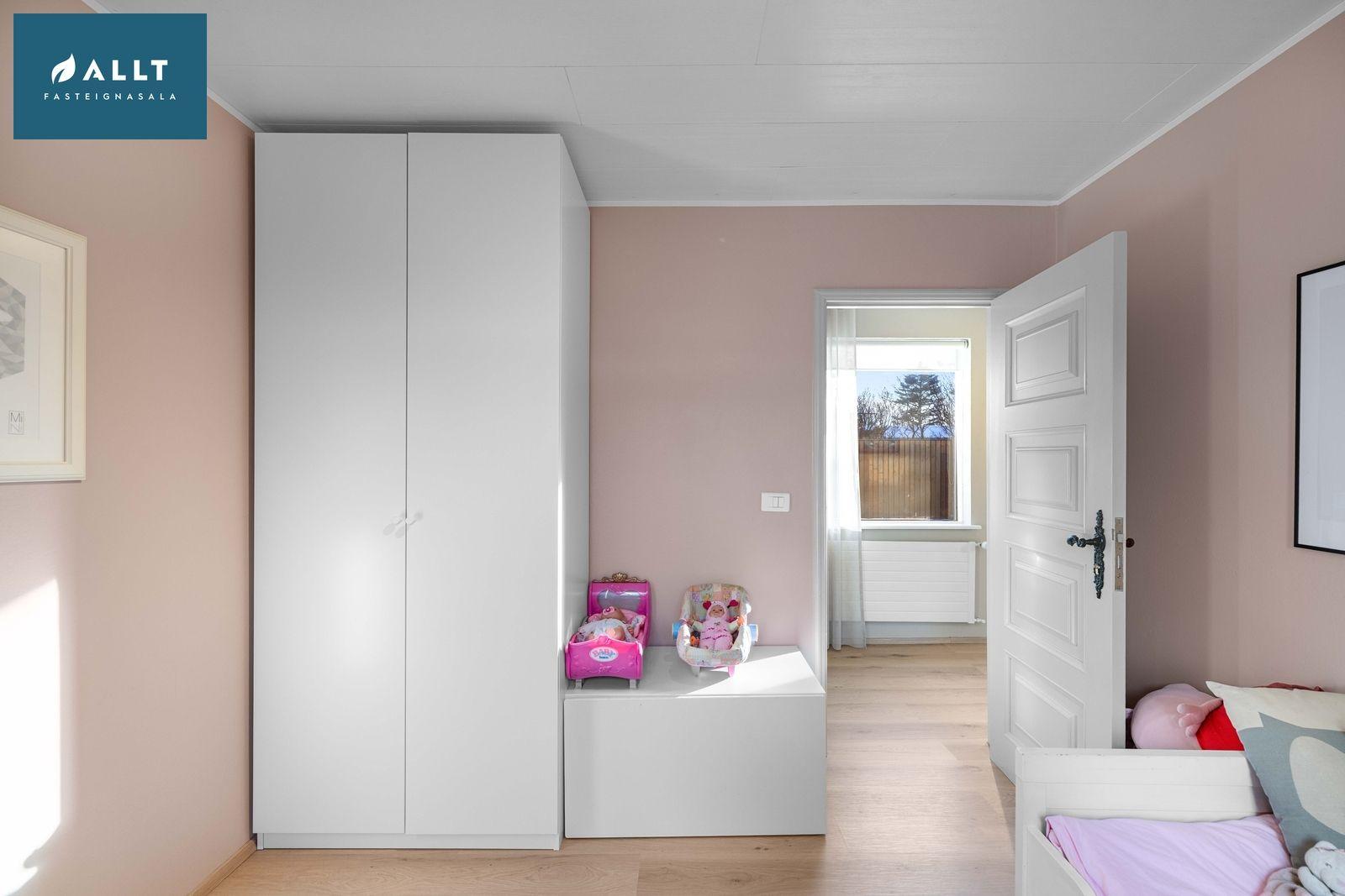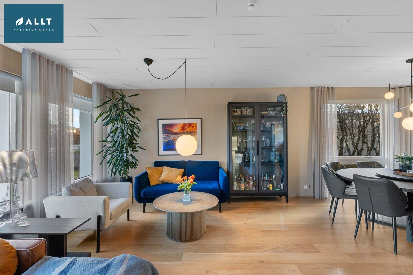 Eignin samanstendur af bjartri stofu, borðstofu, opnu eldhúsi, rúmgóðu holi með arni, þremur svefnherbergjum, tveimur baðherbergjum auk svefnherbergis og baðherbergis með sturtu í skúr alls fjögur svefnherbergi. Forstofa er rúmgóð og innaf er forstofusalerni. Aflokaður sólpallur er til suður með heitum potti. Þvottahús með geymslu innaf. Gott bílaplan.