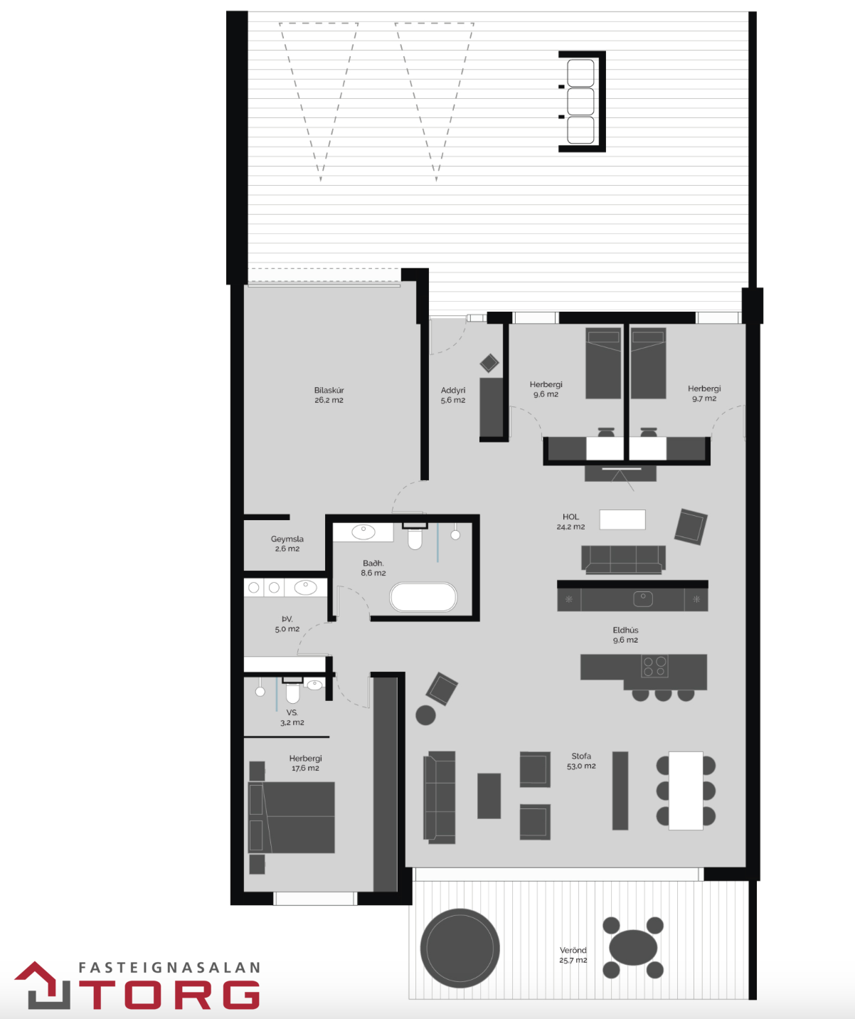 Eignin er hluti af vandaðri nýrri raðhúsalengju sem sameinar nútímaleg þægindi, orkunýtingu og nýjustu tækni og gert er ráð fyrir free@home hússtjórnunarkerfi, loftræstikerfi, gas arinn, vönduðu álgluggakerfi, bluetooth aðgengi á útidyrahurð, rafmagnsgardínum og margt fleira. Raflagna- og ljósahönnun er í höndum LUMEX. Húsið er einangrað og klætt að utan með viðhaldslausri álklæðningu. Húsið skilast fullbúið að utan og tilbúið til innréttinga að innan (áður byggingarstig 5). Glæsileg utanhússklæðning í bland við sjónsteypu gerir húsið einstaklega stílhreint og vandað.