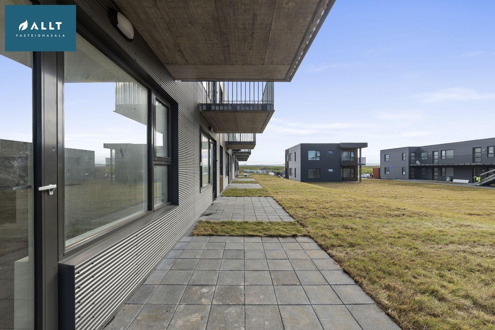 Sigurjón Rúnarsson Löggiltur fasteignasali, í síma 560-5524, tölvupóstur sigurjon@allt.isUm er að ræða nýjar fullgerðar íbúðir úr forsteyptum einingum frá Einingaverksmiðjunni. Úveggir eru með 7 cm veðurkápu. Gluggar eru frá Byko, ál/timbur. Bílastæði skv hönnunargögnum. Bílastæði eru malbikuð. Lóð tyrfð. Sérafnotarými íbúða jarðhæðar (verönd) er frágengin skv skilalýsingu.