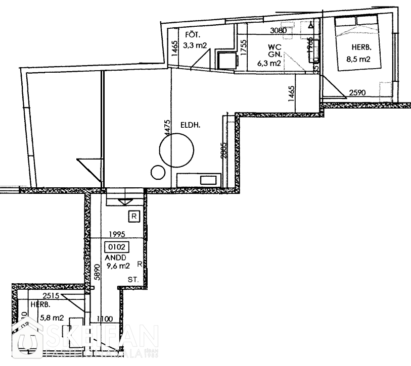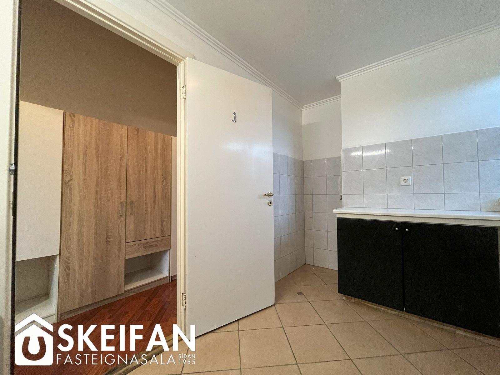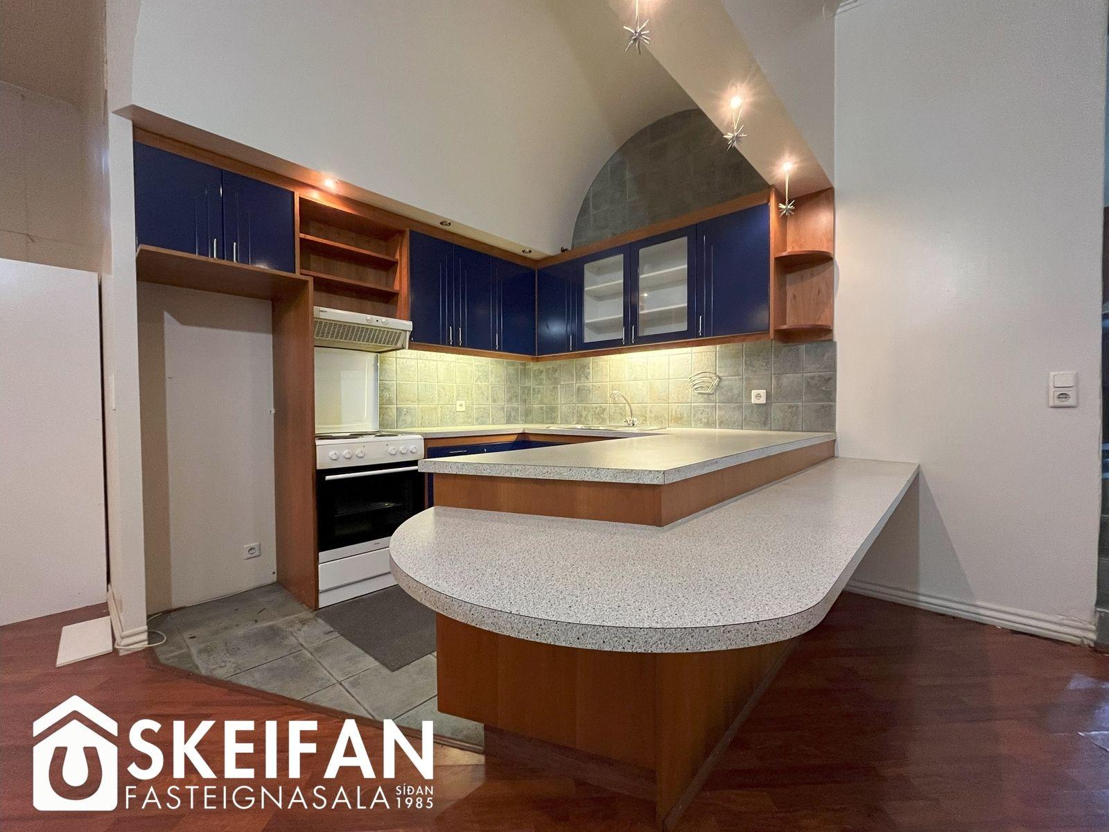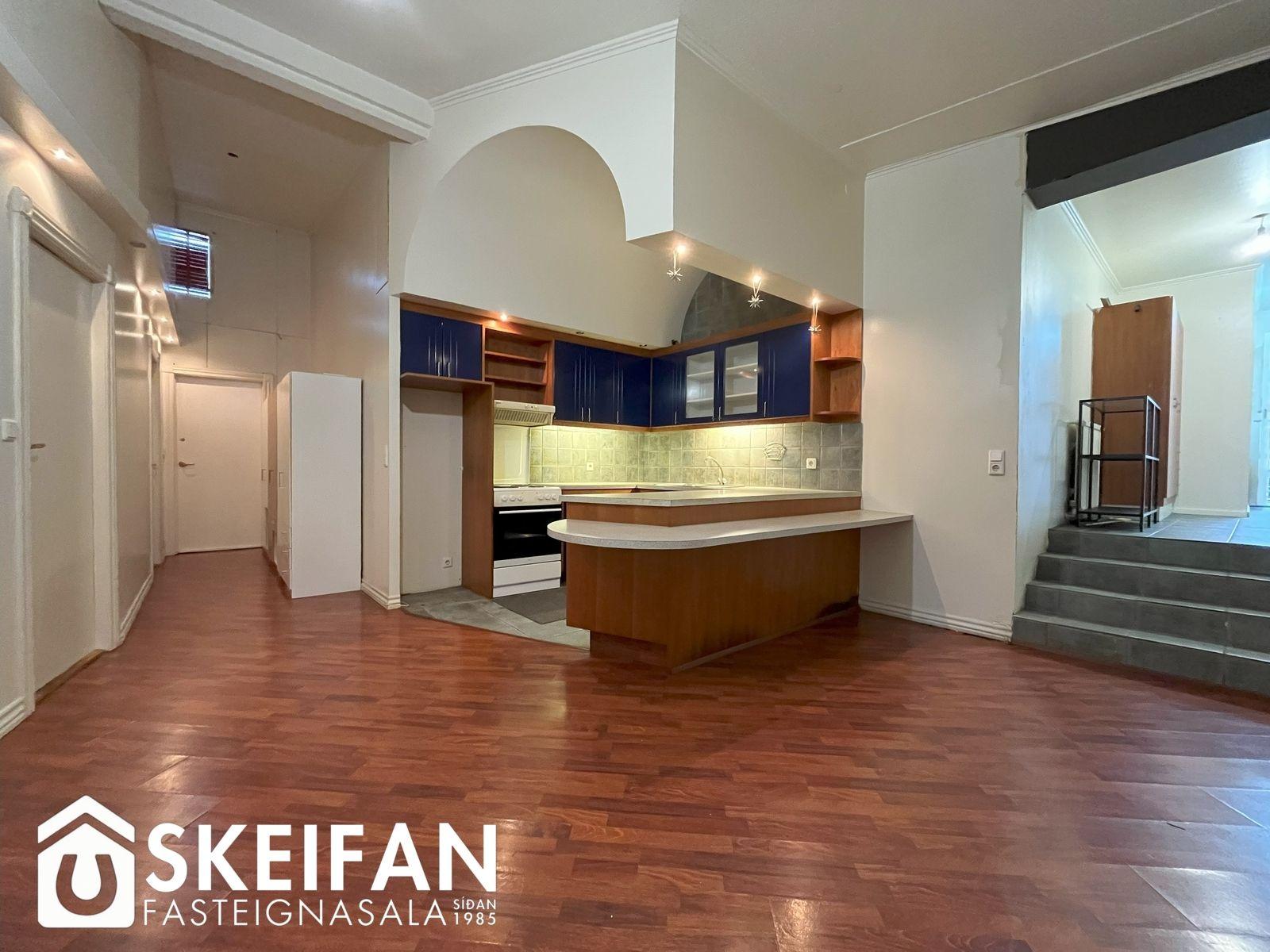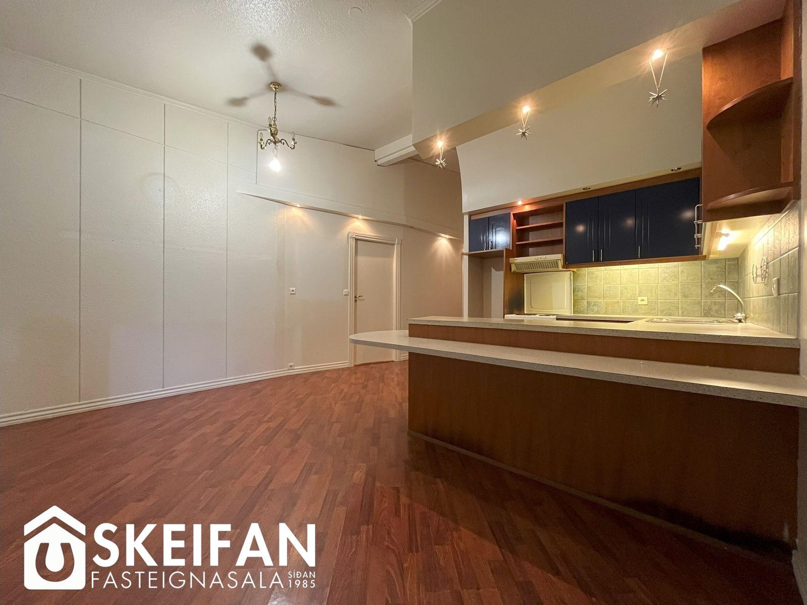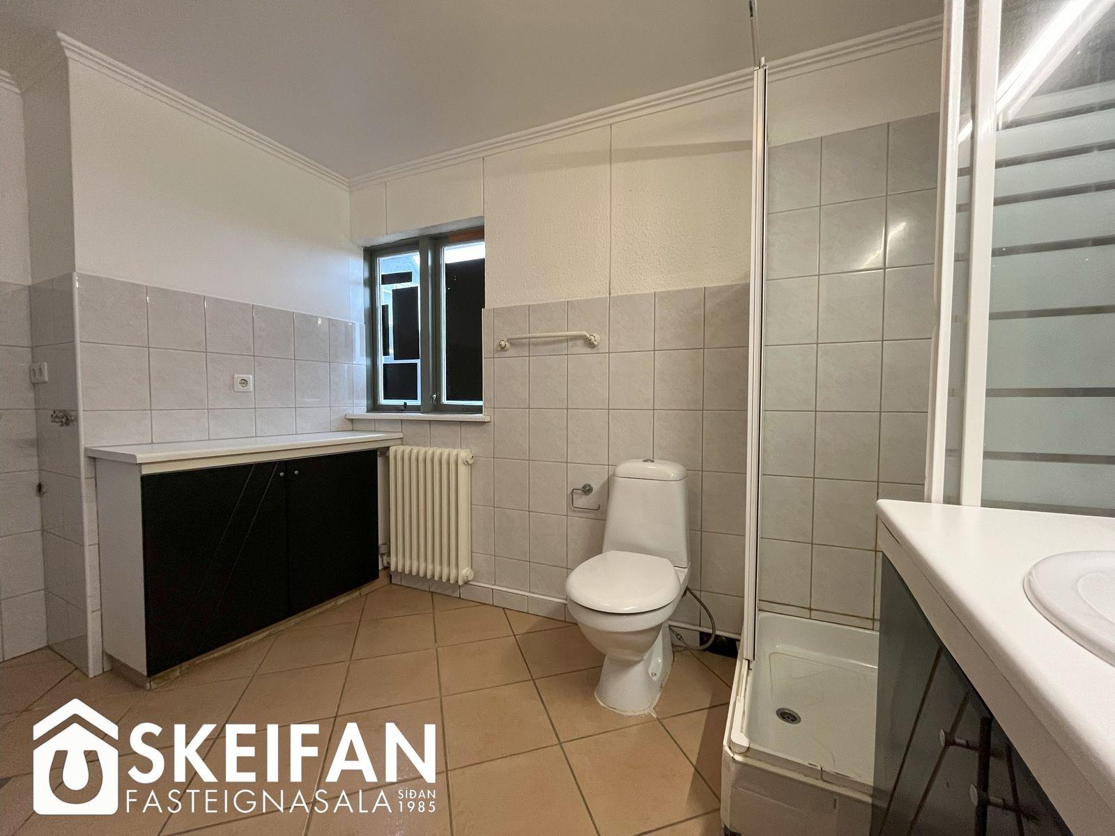 Nánari lýsing: Anddyri: Flísalagt með fataskáp. Forstofuherbergi: Parket á gólfi. 5,8 m² að stærð. Eldhús: Innrétting er máluð blá að hluta til. Ágætis skápapláss. Flísar á gólfi og á veggjum að hluta til. LED lýsing í lofti. Stofa/borðstofa: Parket á gólfi. Ágætis lofthæð. Svefnherbergi: Parket á gólfi. 8,5 m² að stærð. Svefnherbergi: Parket á gólfi og fataskápur. Baðherbergi/þvottaaðstaða: Svört innrétting, sturta, salerni og aðstaða fyrir þvottavél. Geymsla: 3,3 m² geymsla og stígi upp á geymsluloft sem er ekki inn í fermetratölunni.