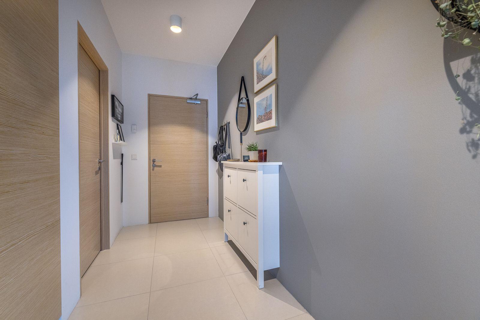 Forstofugangur flísar á gólfi og innbyggður fataskápur.