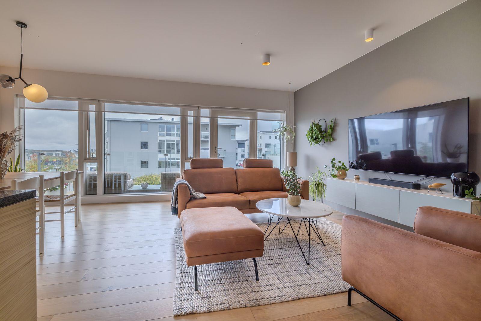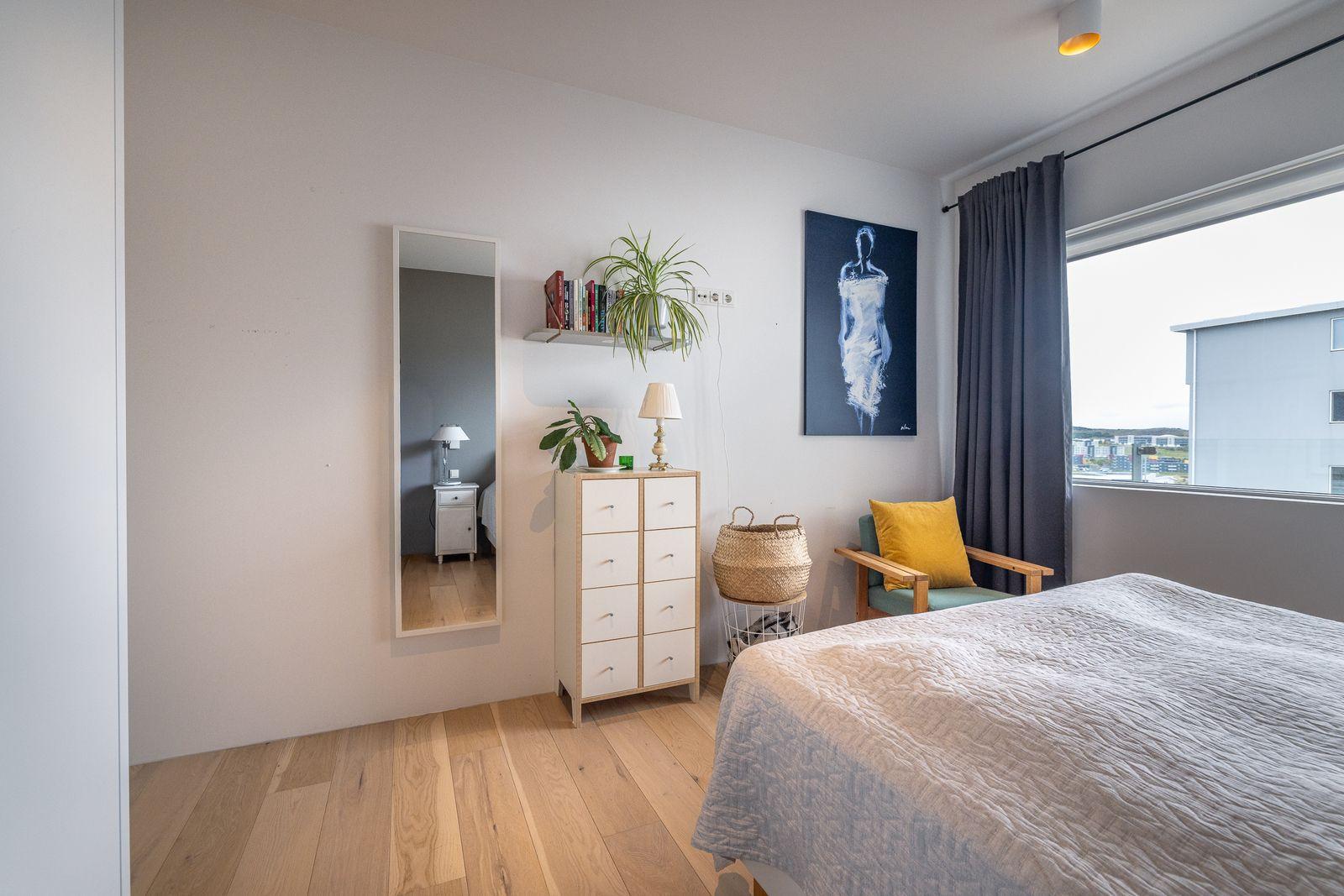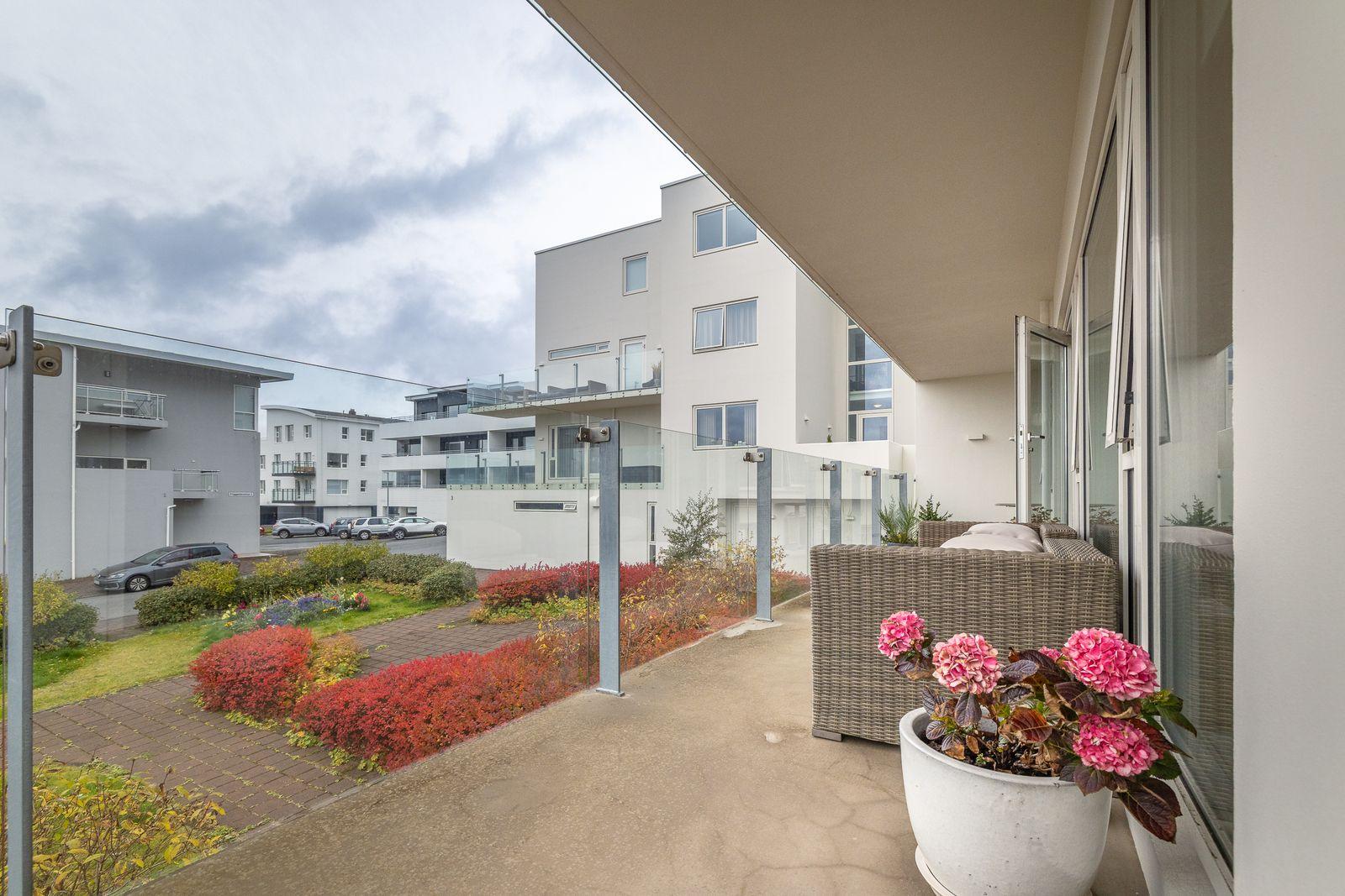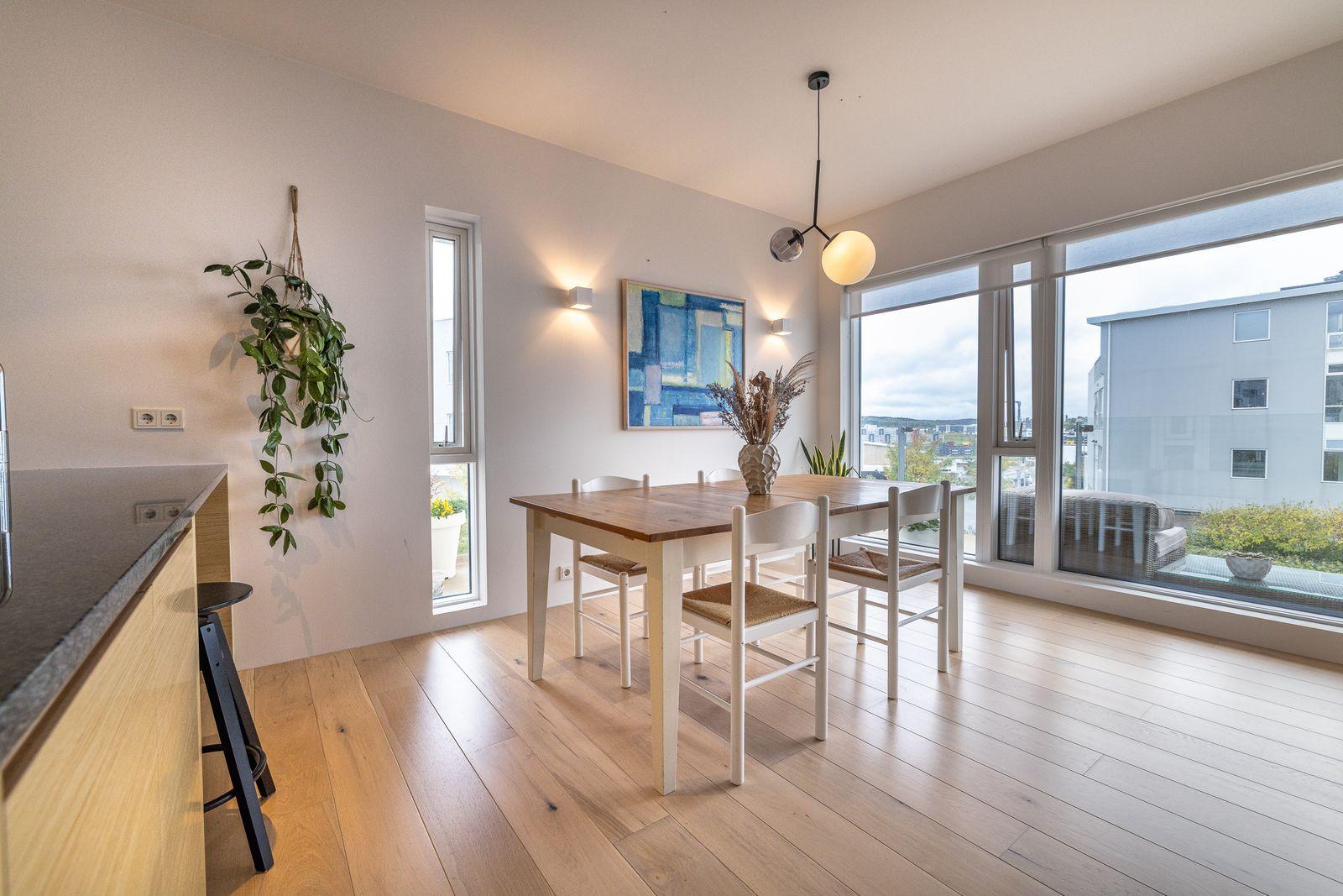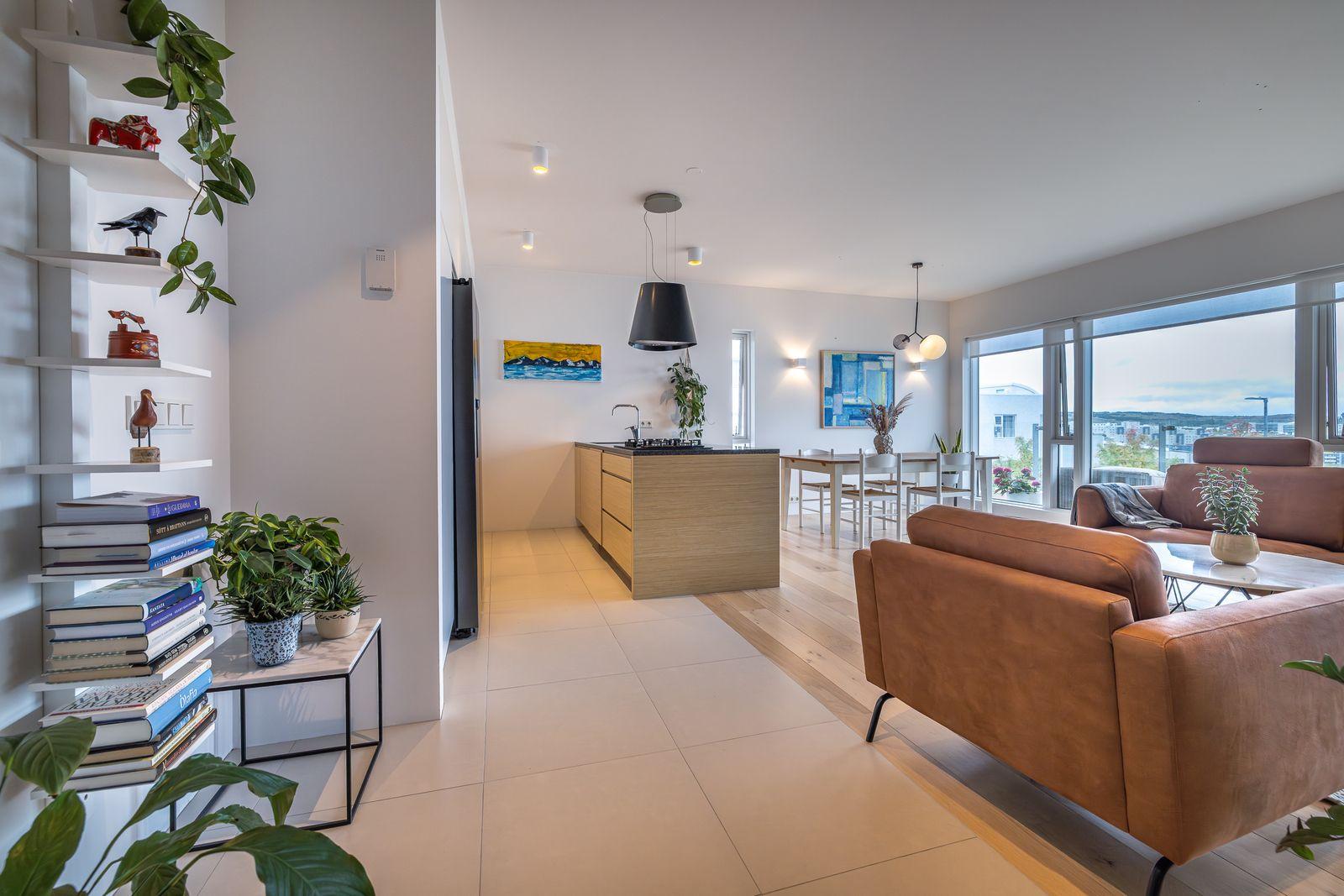 á InstagramEignin skiptist í forstofugang, svefnherbergi, baðherbergi, eldhús, stofu, þvottahús, geymslu og rúmgóðu stæði í lokuðum bílakjallara, stórar svalir til suðurs og vesturs.