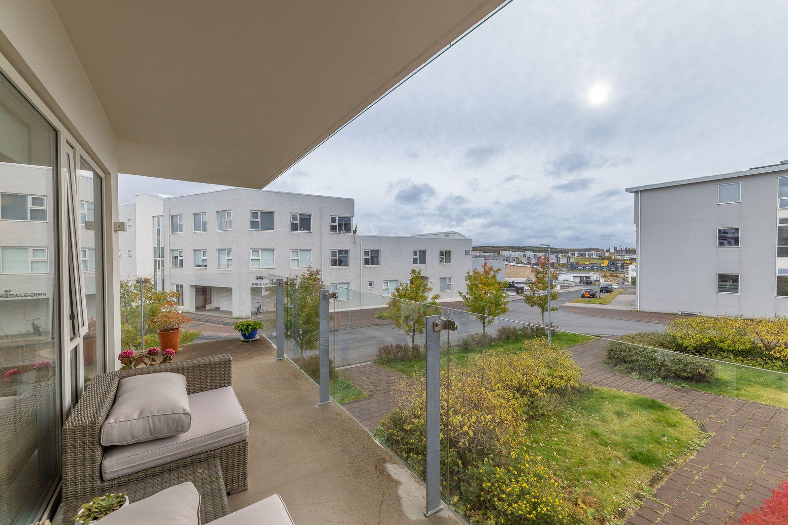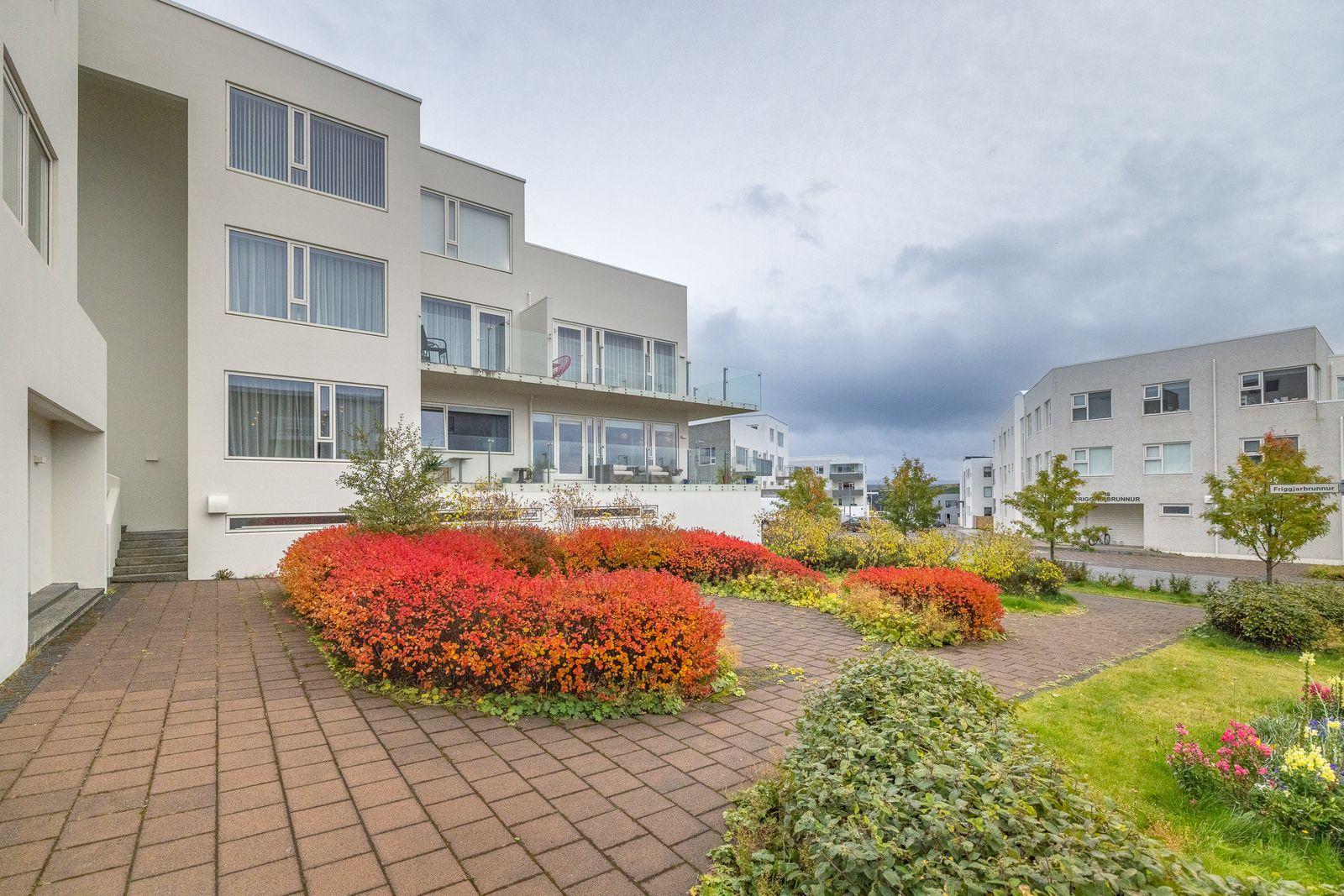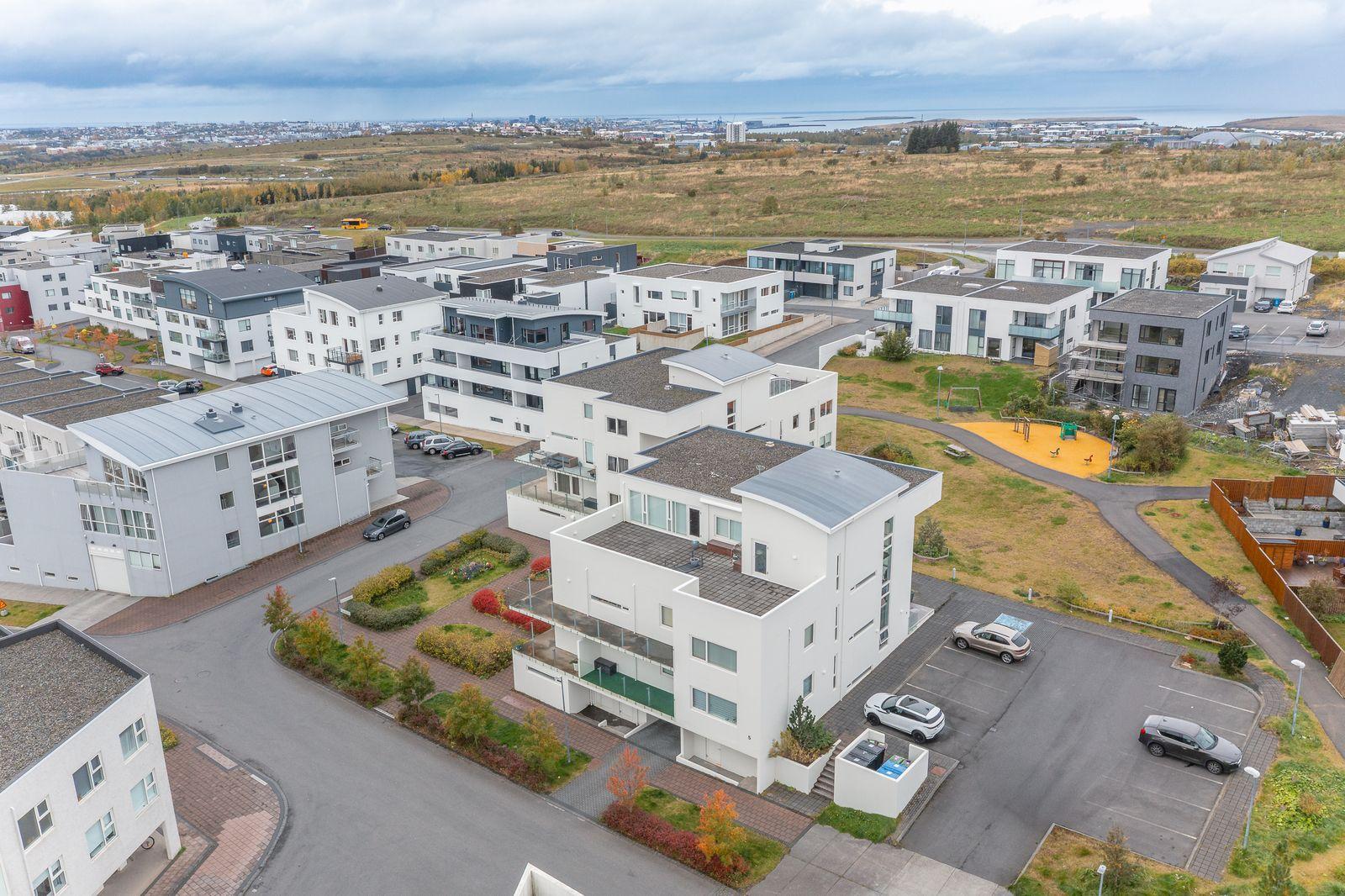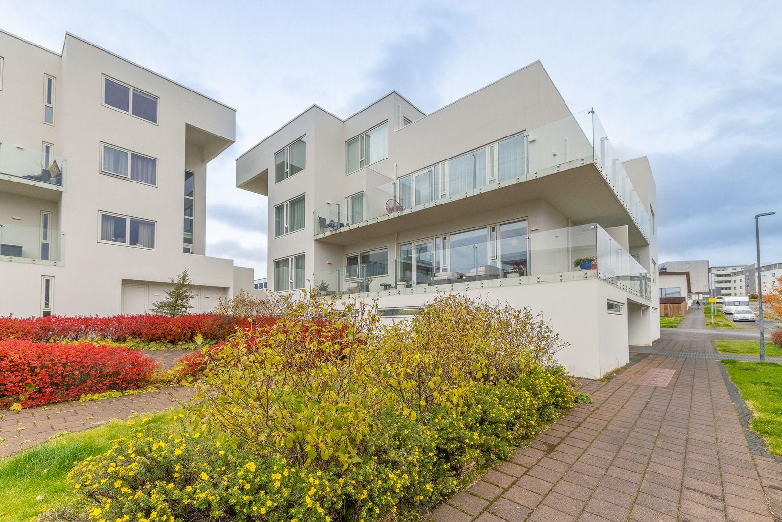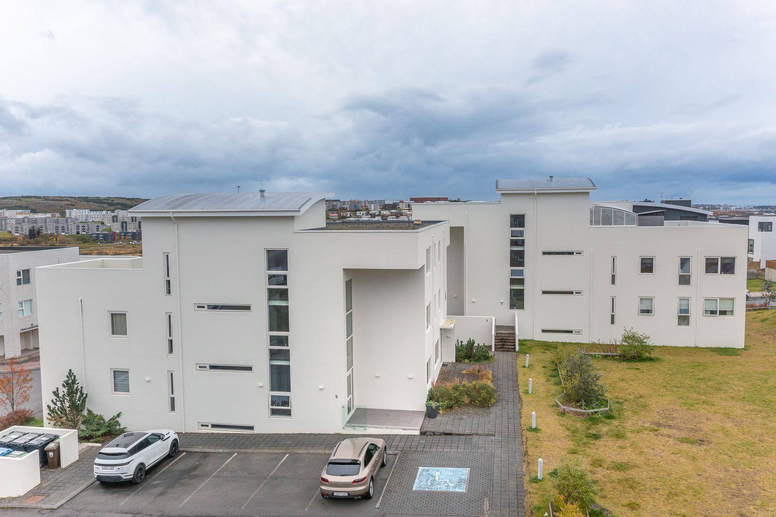 á InstagramEignin skiptist í forstofugang, svefnherbergi, baðherbergi, eldhús, stofu, þvottahús, geymslu og rúmgóðu stæði í lokuðum bílakjallara, stórar svalir til suðurs og vesturs.