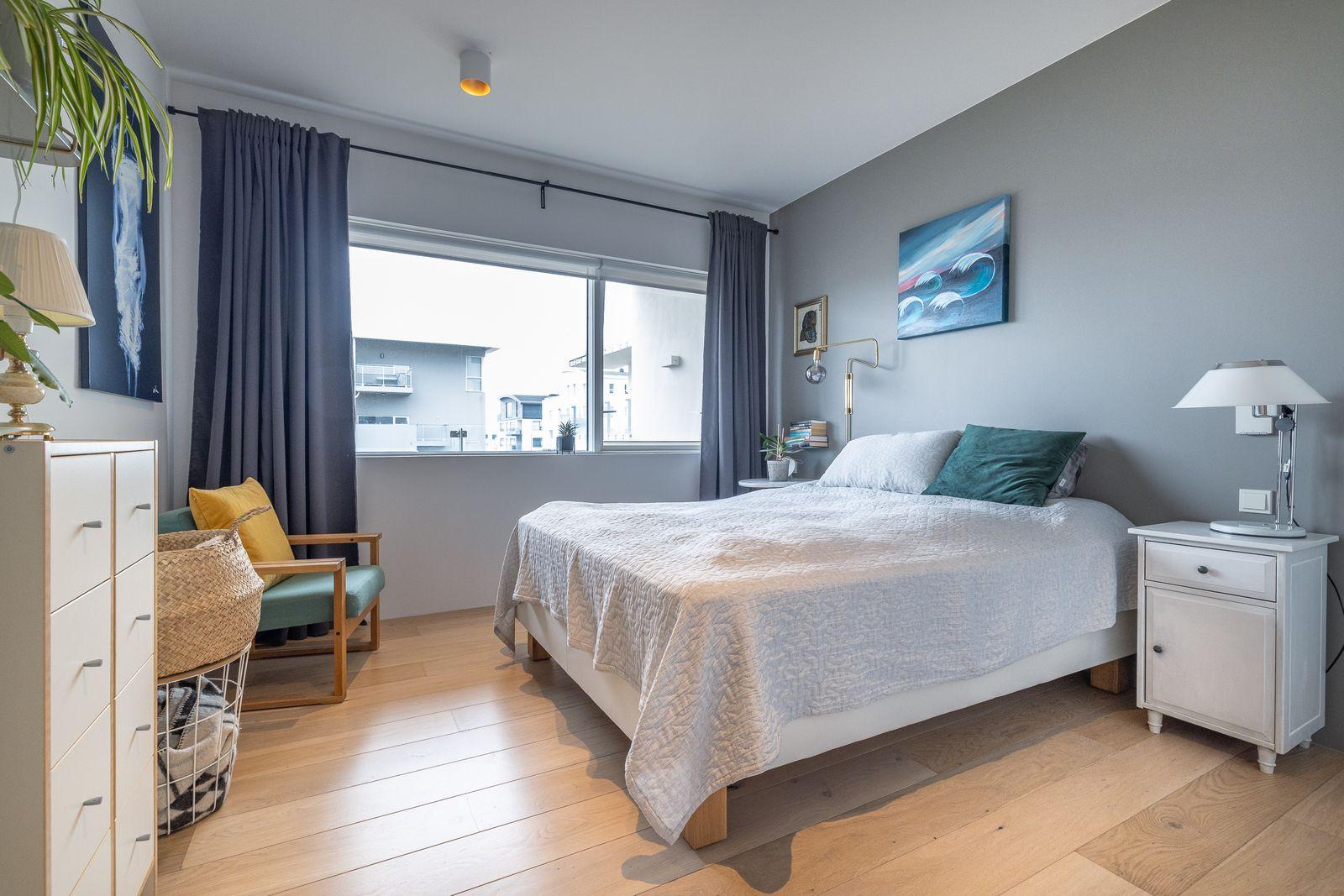 Hjónaherbergið er rúmgott með stórum innbyggðum fataskáp.