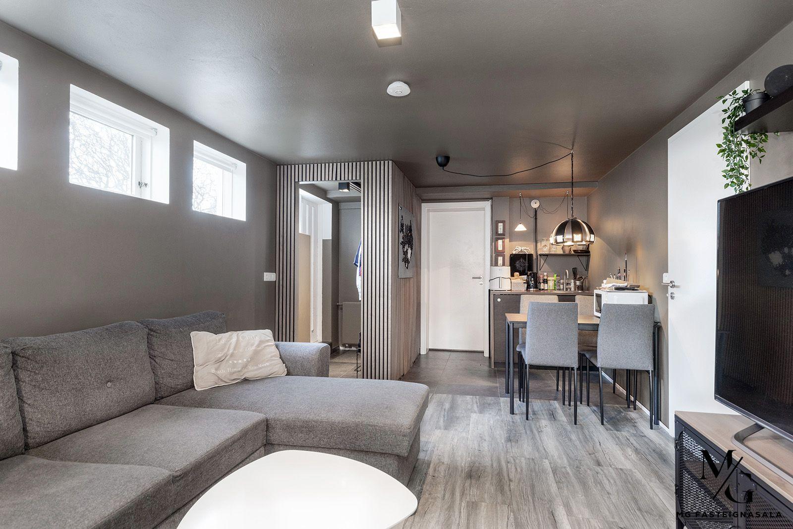 Sjónvarpsherbergi: Stórt rými sem hefur verið nýtt sem sjónvarpsherbergi og hluti sem geymsla.