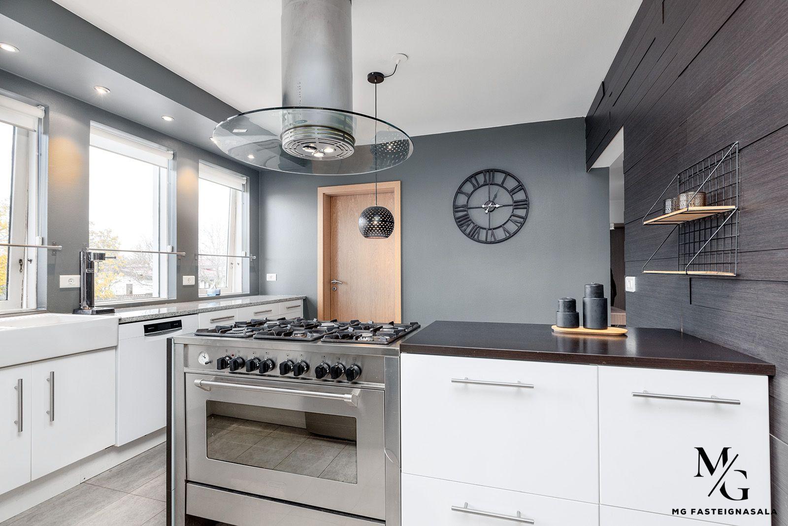Eldhús: Falleg innrétting, stór gaseldavél.