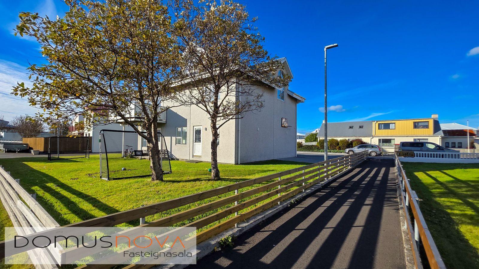 Lóð: Lóðin er 515 fm. Góð aðkoma og næg bílastæði. Stór afgirtur garður með aðgengi beint úr bílskúr.