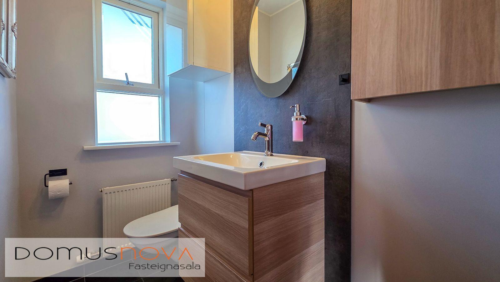 Gestasalerni: Snyrtileg innrétting. Upphengt salerni. Flísar á gólfi.