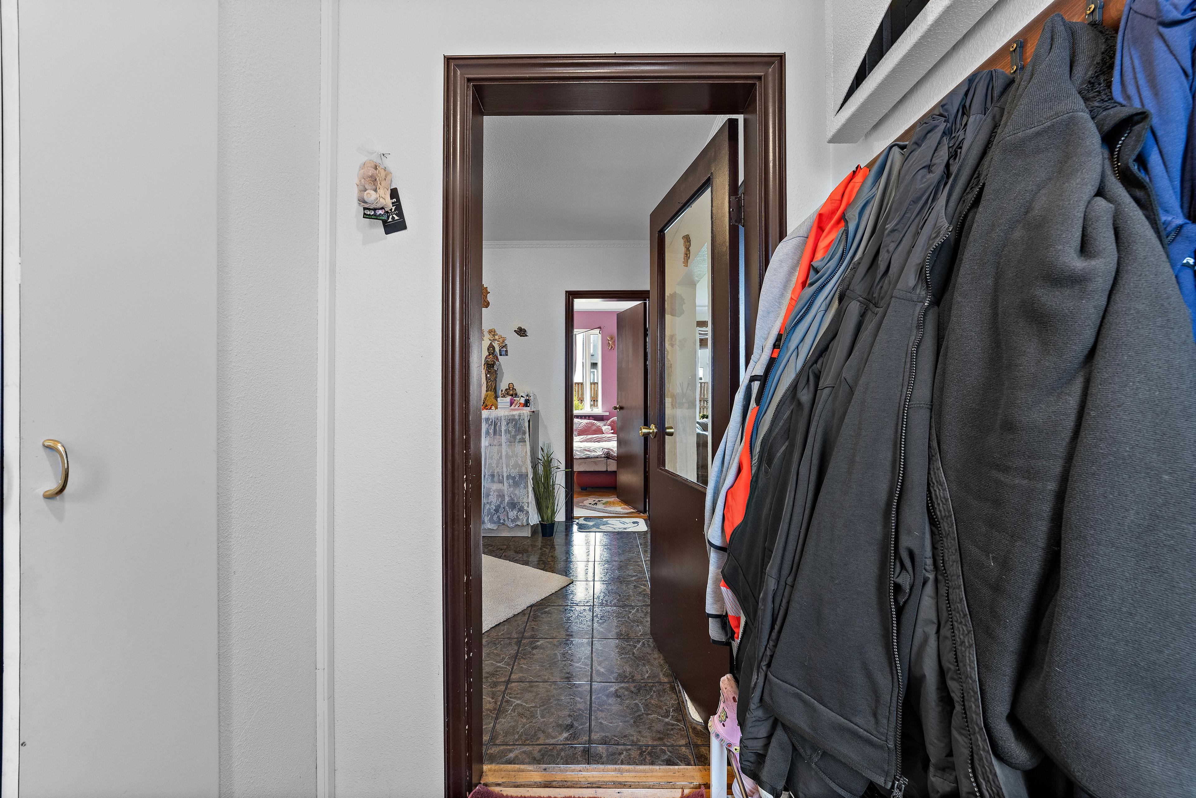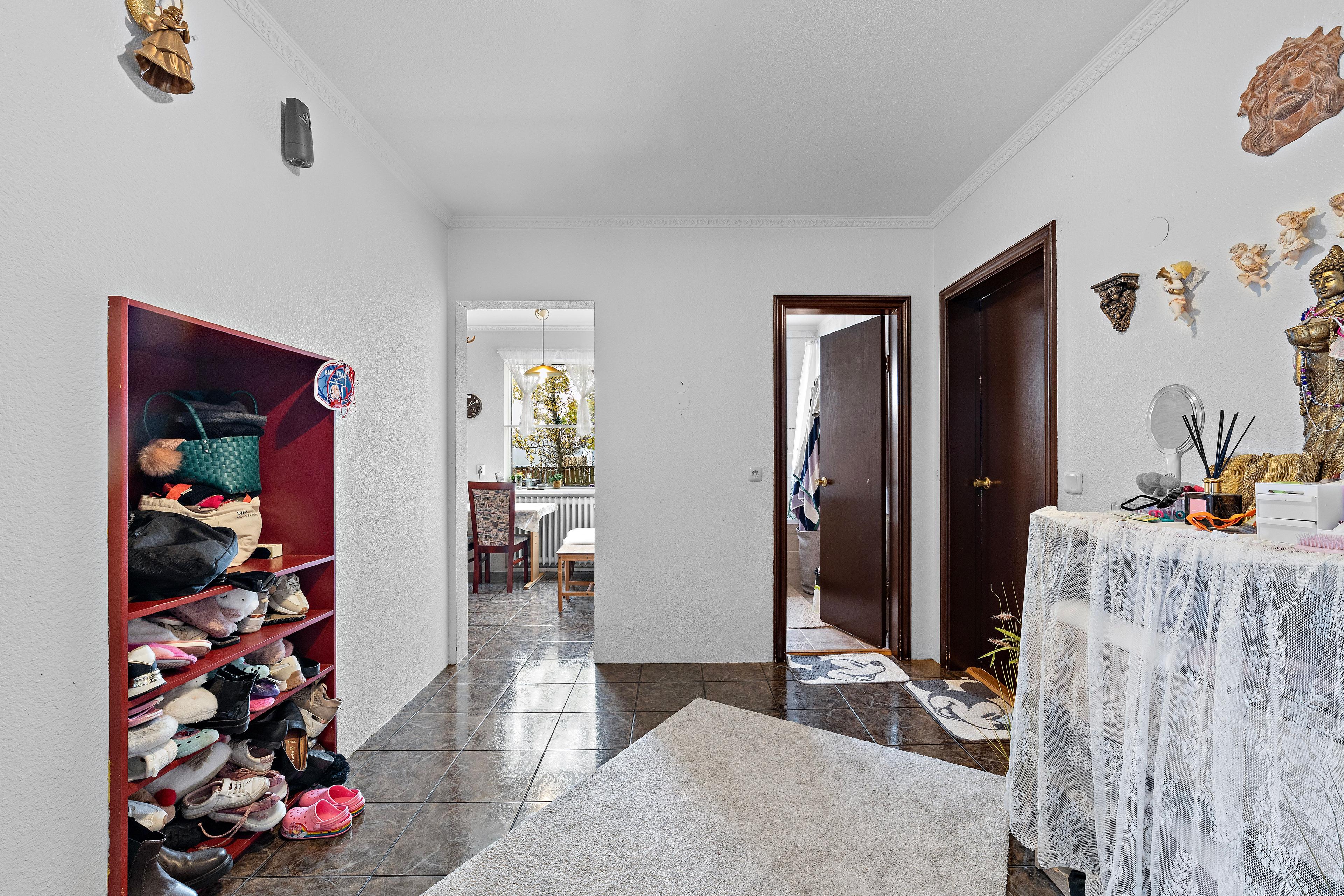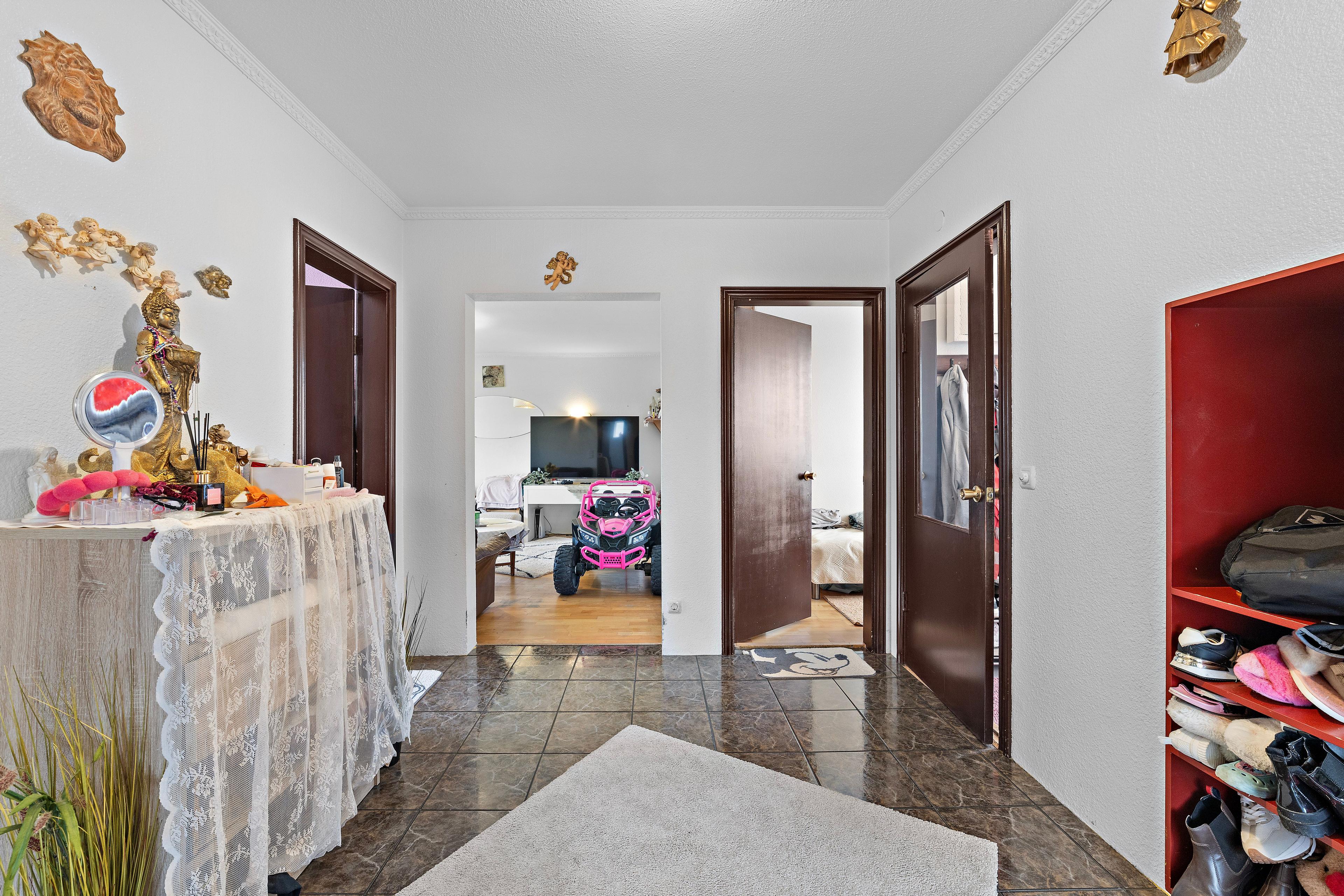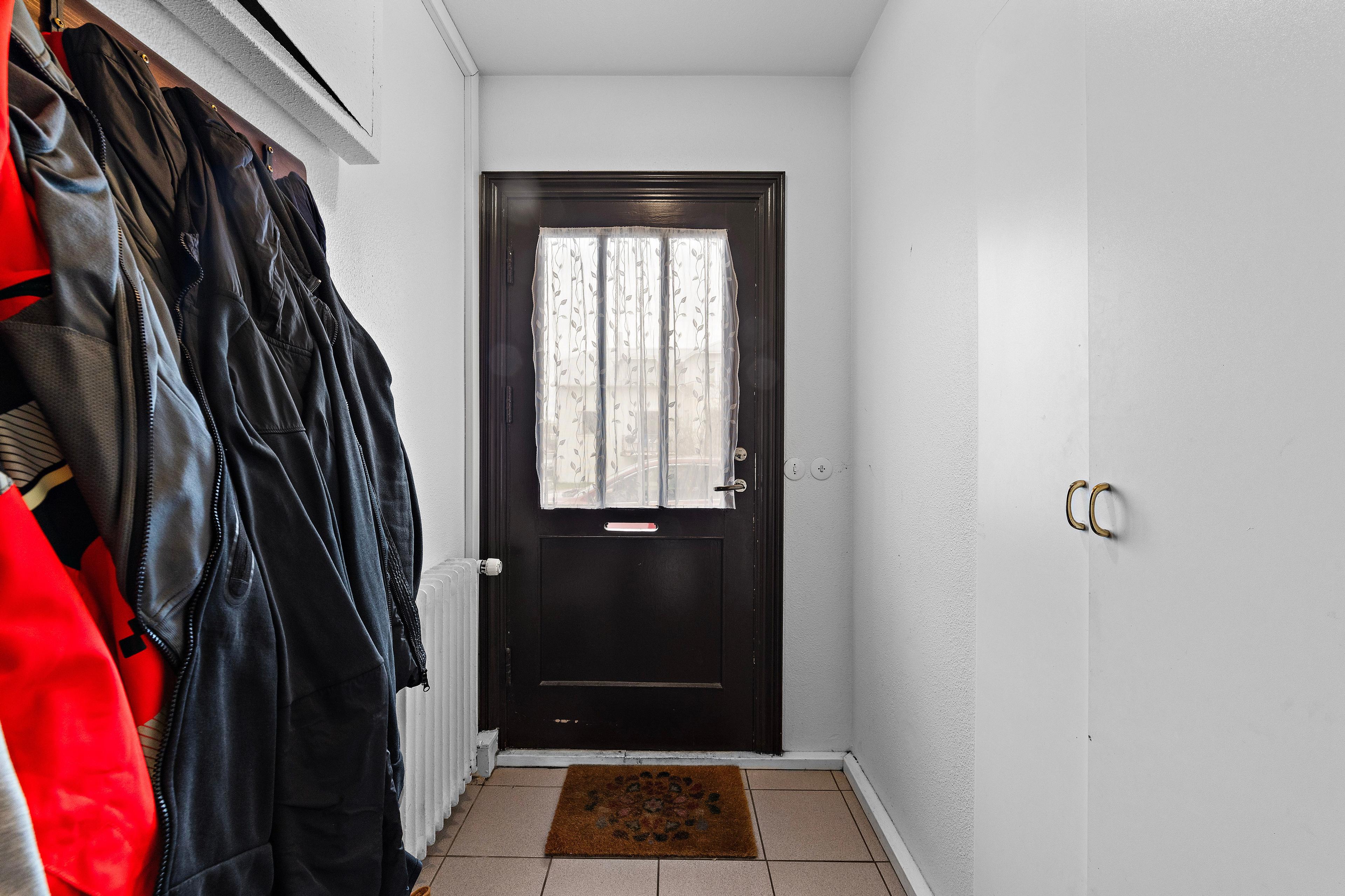 Forstofa með flísum á gólfi. Geymsla undir stiga efri hæðar. Hol er með flísum á gólfi. Eldhús er með flísar á gólfi, plastlögð innrétting, ofn í vinnuhæð og t.f uppvöskunarvél. Borðkrókur við glugga. Hjónaherbergi er með parket á gólfi. Tvö barnaherbergi með parketi á gólfi. Stofa er rúmgóð með parketi á gólfi. Baðherbergi er með flísar á gólfi og veggjum. Baðkar og innrétting við vask. Sameiginlegt þvottahús með efri hæð. Gengið inní að utanverðu við hliðná inngangi.