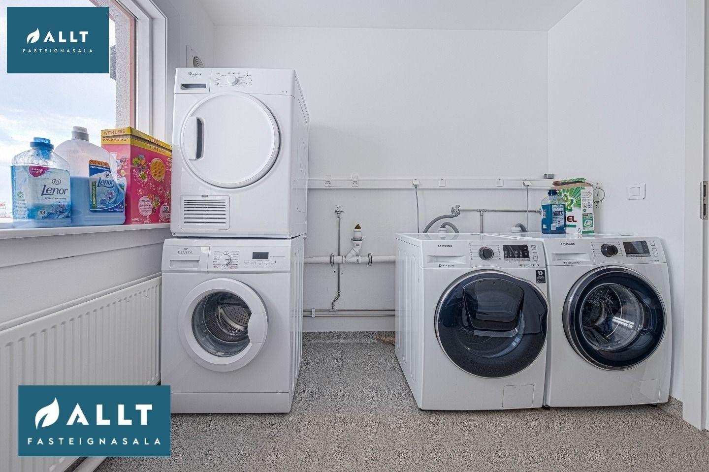 Sameiginlegt þvottahús er á hverri hæð í húsinu og deila þeir sem eru saman á hæð einu þvottahúsi.