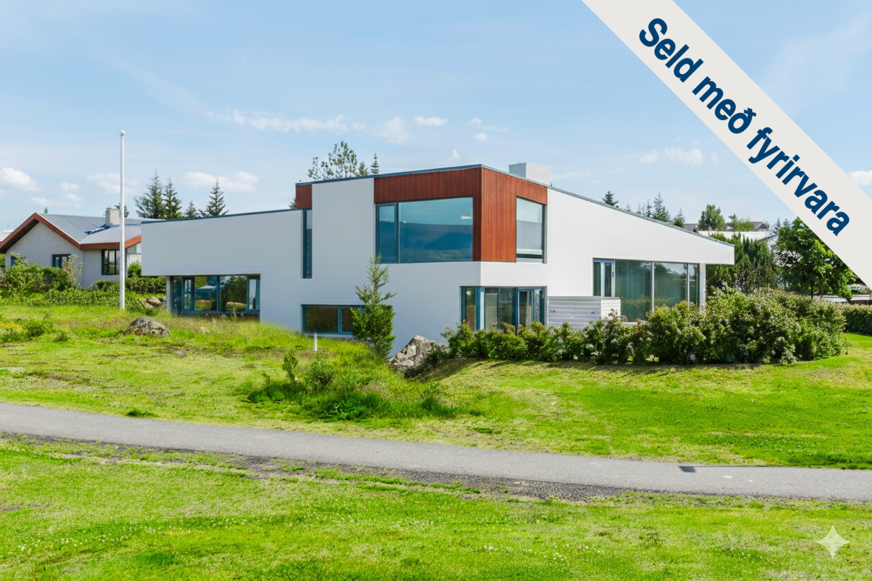 Einstaklega fallegt og vandað hús sem vert er að skoða. Húsið er staðsteypt, einangrað að utan og klætt með múrklæðningu og setrusviðarklæðningu. Húsið hefur fengið