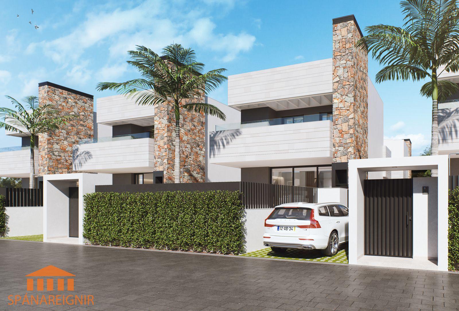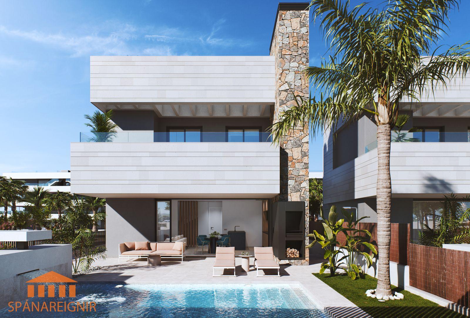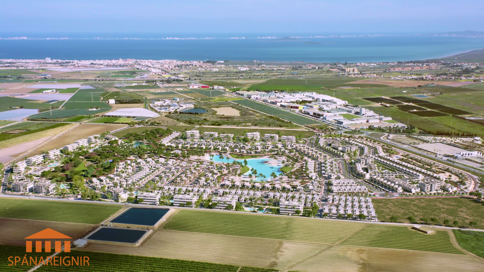 Vönduð og falleg einbýlishús á frábærum stað Í hinu nýja og glæsilega 700.000 fm., SANTA ROSALIA LAKE AND LIFE RESORT. Santa Rosalia stöðuvatnið er miðpunktur svæðisins og stærsta manngerða stöðuvatn í Evrópu, 16.000 fm., Þar er frábær aðstaða til að njóta lífsins, sandströnd, eyja til að vaða út í, góð aðstaða fyrir vatnaíþróttir og ýmislegt fleira. Á svæðinu er einnig ævintýra golfvöllur, frisbígolfvöllur, göngu-, skokk og hjólaleiðir, picknick svæði, jogasvæði, leikvellir fyrir börnin og ótal margt fleira skemmtilegt. Við vatnið og golfvöllinn er nýr og glæsilegur strand- og golfklúbbur, með veitingastöðum líkamsræktaraðstöðu og ýmissi þjónustu. Einnig verður matvöruverslun á staðnum, en stutt er í litla bæi í kring með góðu úrvali af verslunum og veitingastöðum. Örstutt frá ströndinni og bátahöfninni (4 km. 15 mín. á hjóli) í Los Alcazares. Mar Menor golfvöllurinn er í göngufæri, en einnig eru fjölmargir fleiri golfvellir á svæðinu. Ca. 1 klst. akstur í suður frá Alicante flugvelli, 30 mín. akstur frá Corvera, nýja alþjóðlega flugvellinum í Murcia.