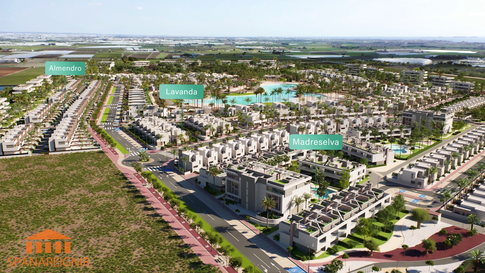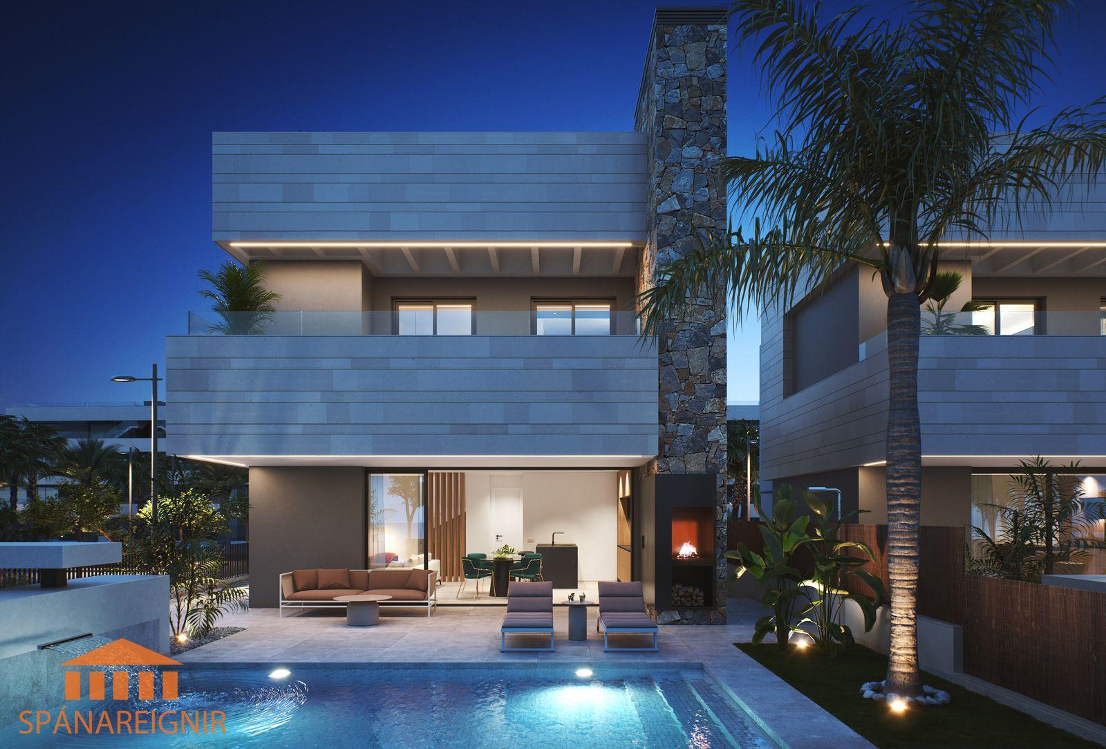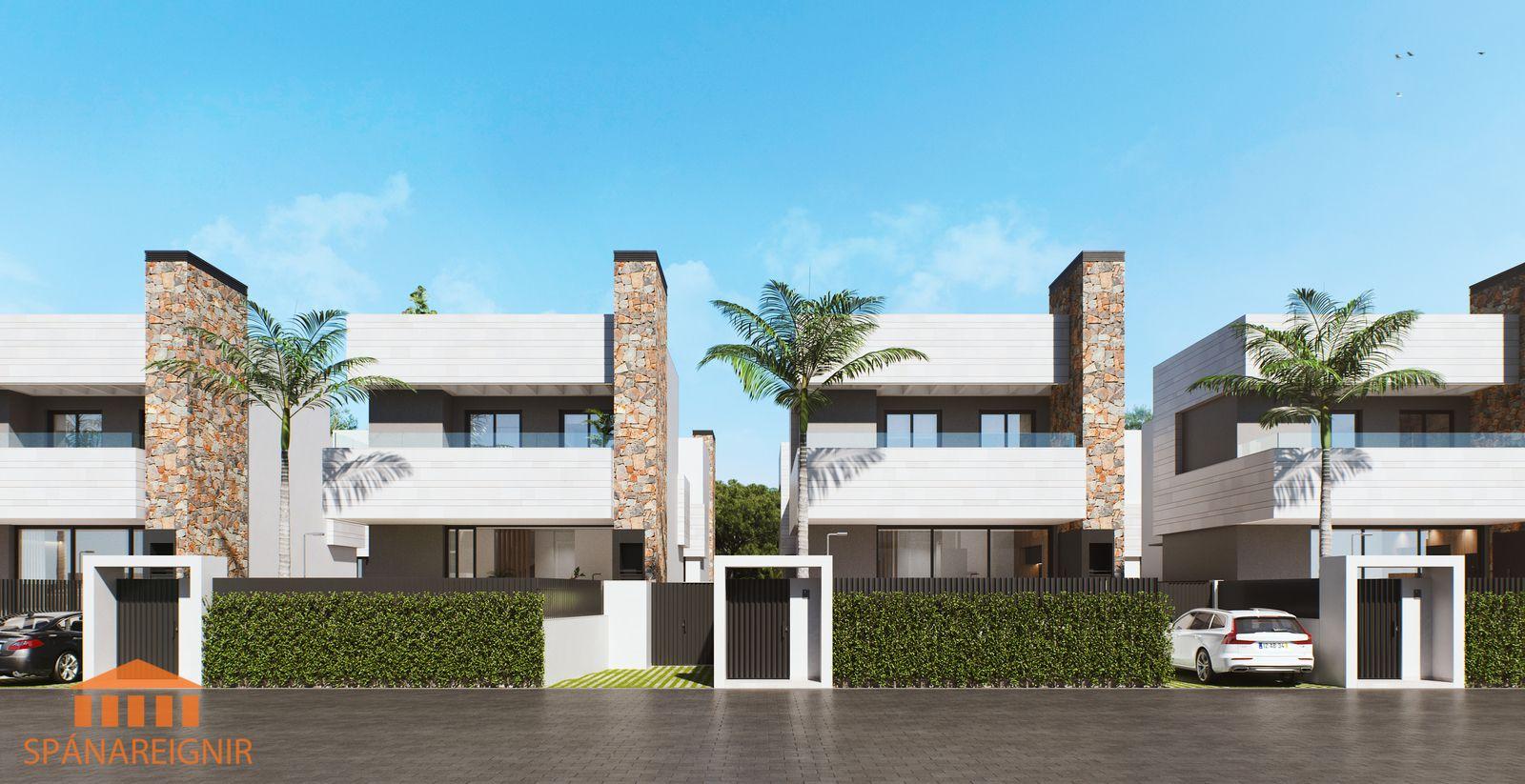 Vönduð og falleg einbýlishús á frábærum stað Í hinu nýja og glæsilega 700.000 fm., SANTA ROSALIA LAKE AND LIFE RESORT. Santa Rosalia stöðuvatnið er miðpunktur svæðisins og stærsta manngerða stöðuvatn í Evrópu, 16.000 fm., Þar er frábær aðstaða til að njóta lífsins, sandströnd, eyja til að vaða út í, góð aðstaða fyrir vatnaíþróttir og ýmislegt fleira. Á svæðinu er einnig ævintýra golfvöllur, frisbígolfvöllur, göngu-, skokk og hjólaleiðir, picknick svæði, jogasvæði, leikvellir fyrir börnin og ótal margt fleira skemmtilegt. Við vatnið og golfvöllinn er nýr og glæsilegur strand- og golfklúbbur, með veitingastöðum líkamsræktaraðstöðu og ýmissi þjónustu. Einnig verður matvöruverslun á staðnum, en stutt er í litla bæi í kring með góðu úrvali af verslunum og veitingastöðum. Örstutt frá ströndinni og bátahöfninni (4 km. 15 mín. á hjóli) í Los Alcazares. Mar Menor golfvöllurinn er í göngufæri, en einnig eru fjölmargir fleiri golfvellir á svæðinu. Ca. 1 klst. akstur í suður frá Alicante flugvelli, 30 mín. akstur frá Corvera, nýja alþjóðlega flugvellinum í Murcia.