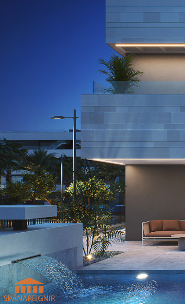 Eiginleikar: strönd, ný eign, sér garður, þakverönd, kjallari, golf,