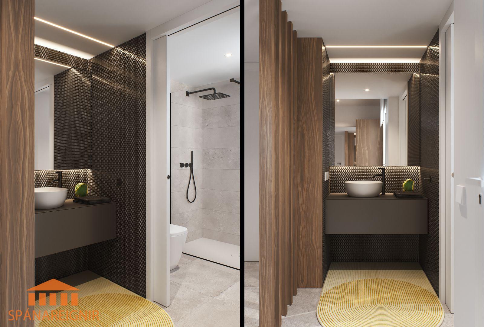 3 svefnh. + 3 baðh.+ gestasnyrting, kjallari og þakverönd, verð frá 555.000 Evrur eða 80.400.000ISK + 10% skattur og ca. 3% kostn. við kaupin (miðað við 1 Evra = 145ISK)
