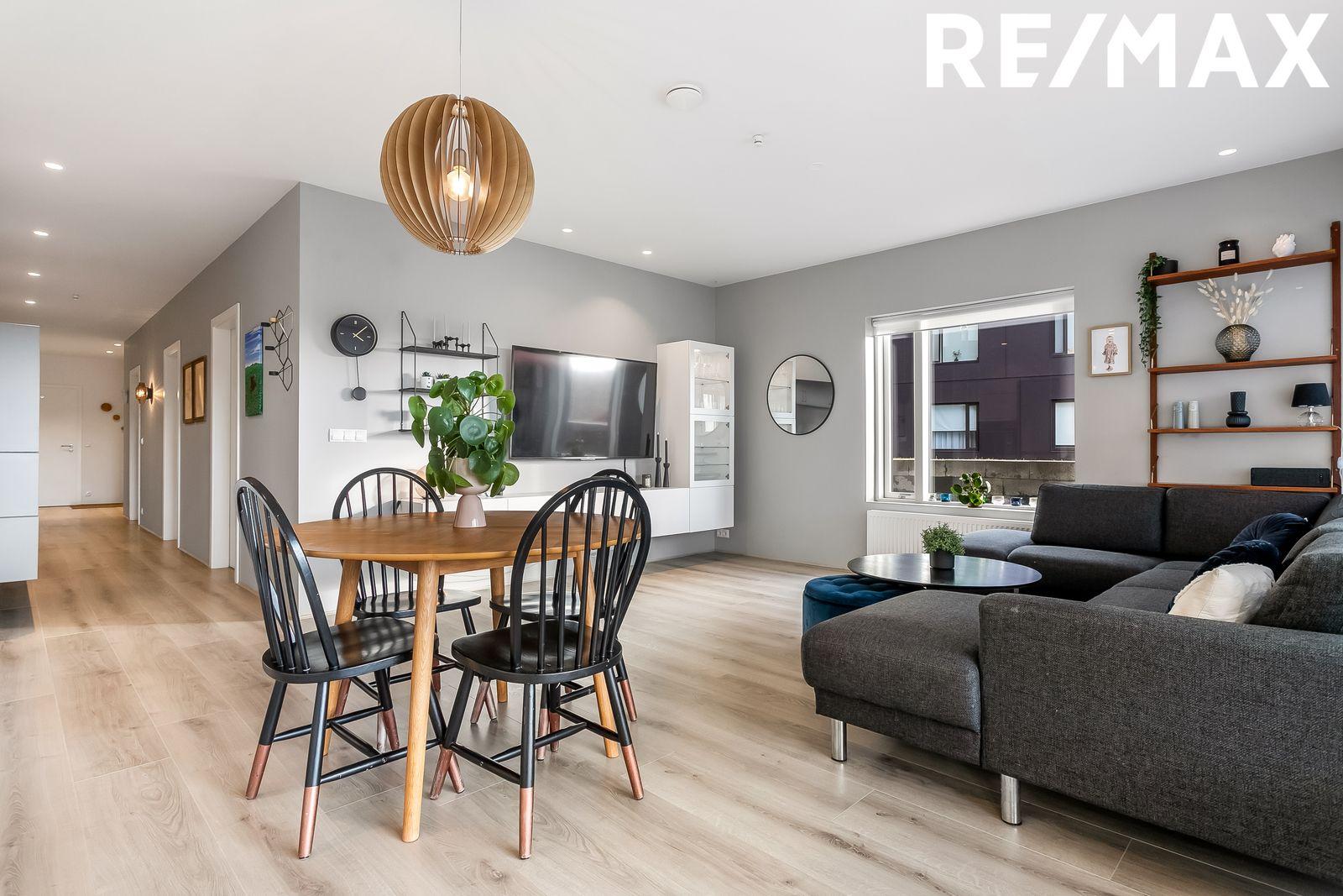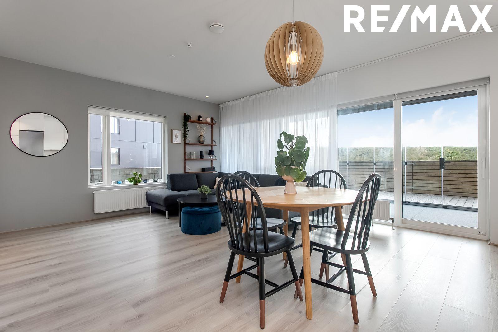 Eignin skiptist í forstofu, eldhús, stofu, þrjú svefnherbergi, baðherbergi, þvottahús og geymslu. Eignin er skráð hjá Húsnæðis- og mannvirkjastofnun 106 m2. Stæði í lokaðri bílageymslu er ekki inni heildarfermetrum. **HÉR MÁ NÁLGAST 3D MYNDBAND AF EIGNINNI. KÍKTU Í HEIMSÓKN !*VINSAMLEGA SMELLIÐ HÉR TIL AÐ BÓKA TÍMA Í SKOÐUN SUNNUD. 12. OKT. Söluyfirlit má nálgast hérNánari lýsing: