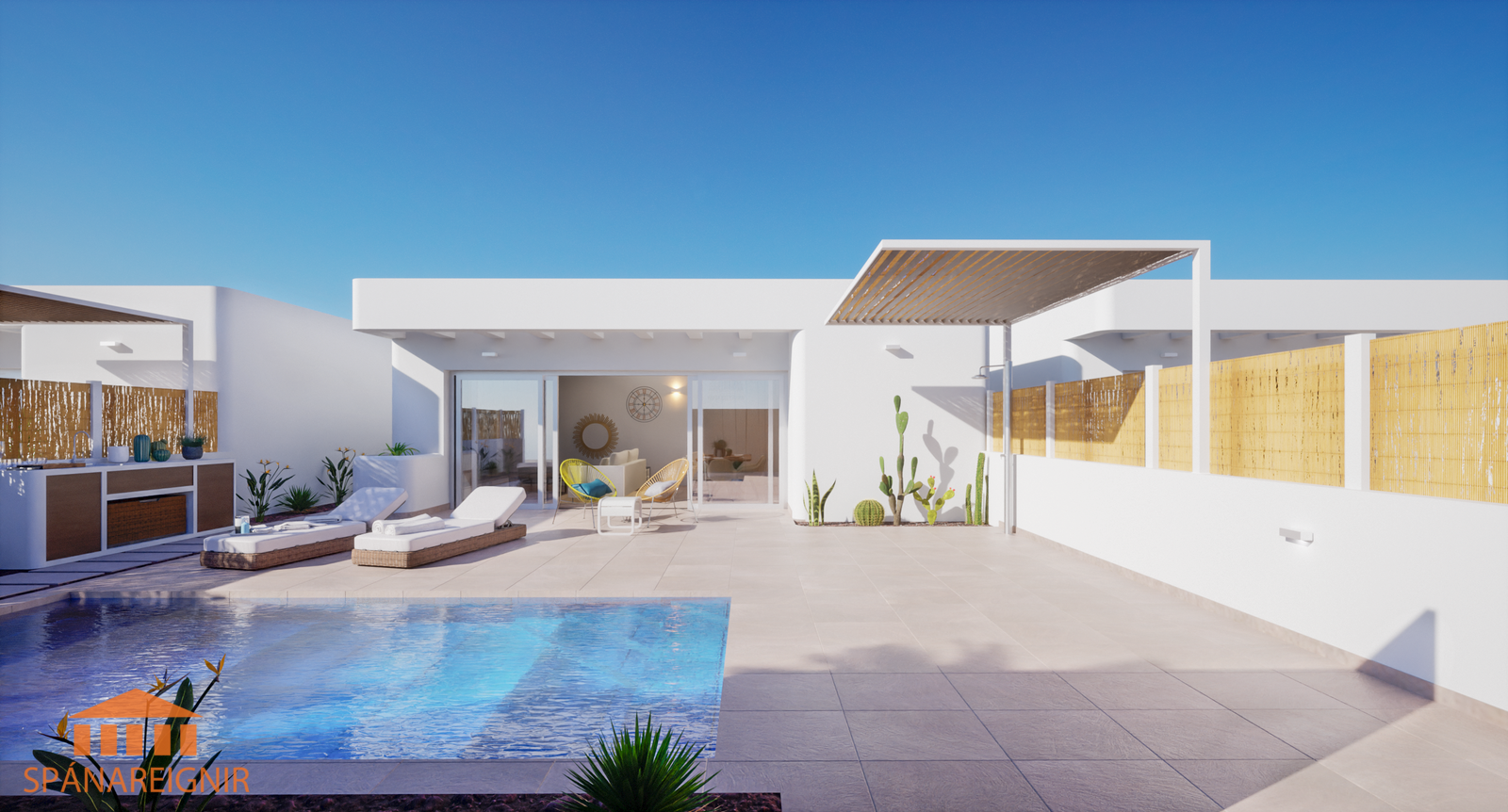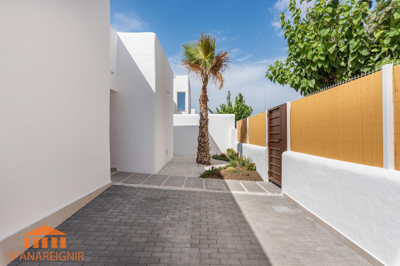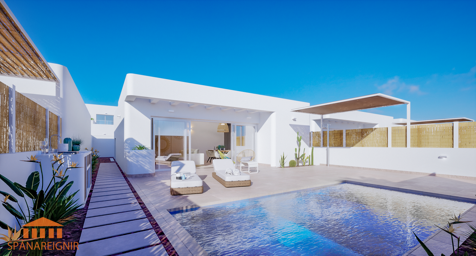 Vönduð og falleg einbýlishús á EINNI HÆÐ rétt við La Serena golfvöllinn í Los Alcazares. Þrjú svefnherbergi og tvö baðherbergi. Göngufæri á fallega strönd og gamla bæinn í Los Alcazares, þar sem svo sannarlega er sál og sjarmi, bátahöfn og skemmtilegt "promenaðe" meðfram ströndinni. Einnig eru fleiri golfvellir í nágrenninu, t.d. Roda Golf, Mar Menor golfvöllurinn, Las Colinas, Las Ramblas, Villamartin og fleiri. Um 60 mín akstur til Alicante, og ca. 10 mín. akstur til Cartagena, skemmtilega spænska borg. Fjölbreytt úrval af verslunum og veitingastöðum í göngufæri.