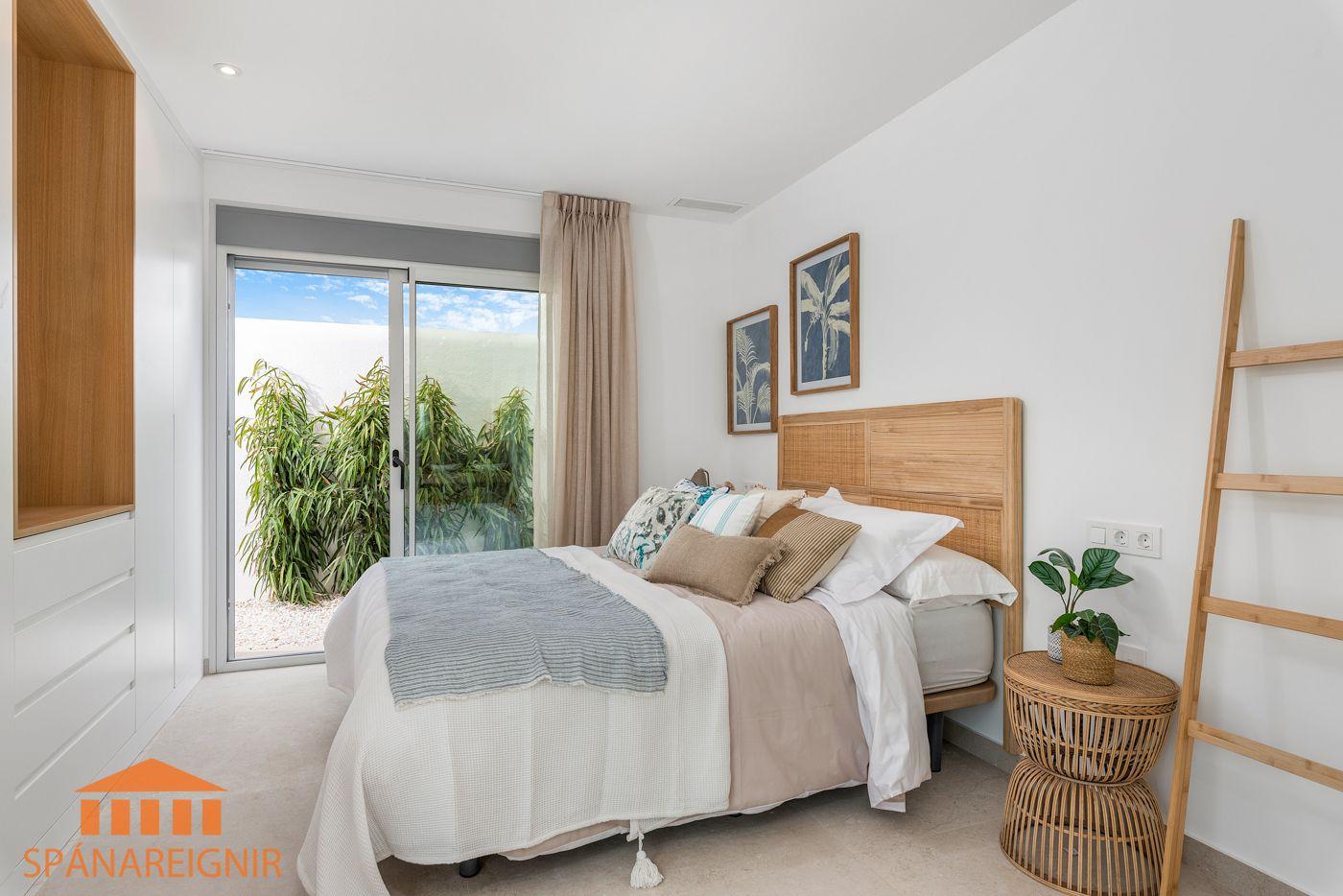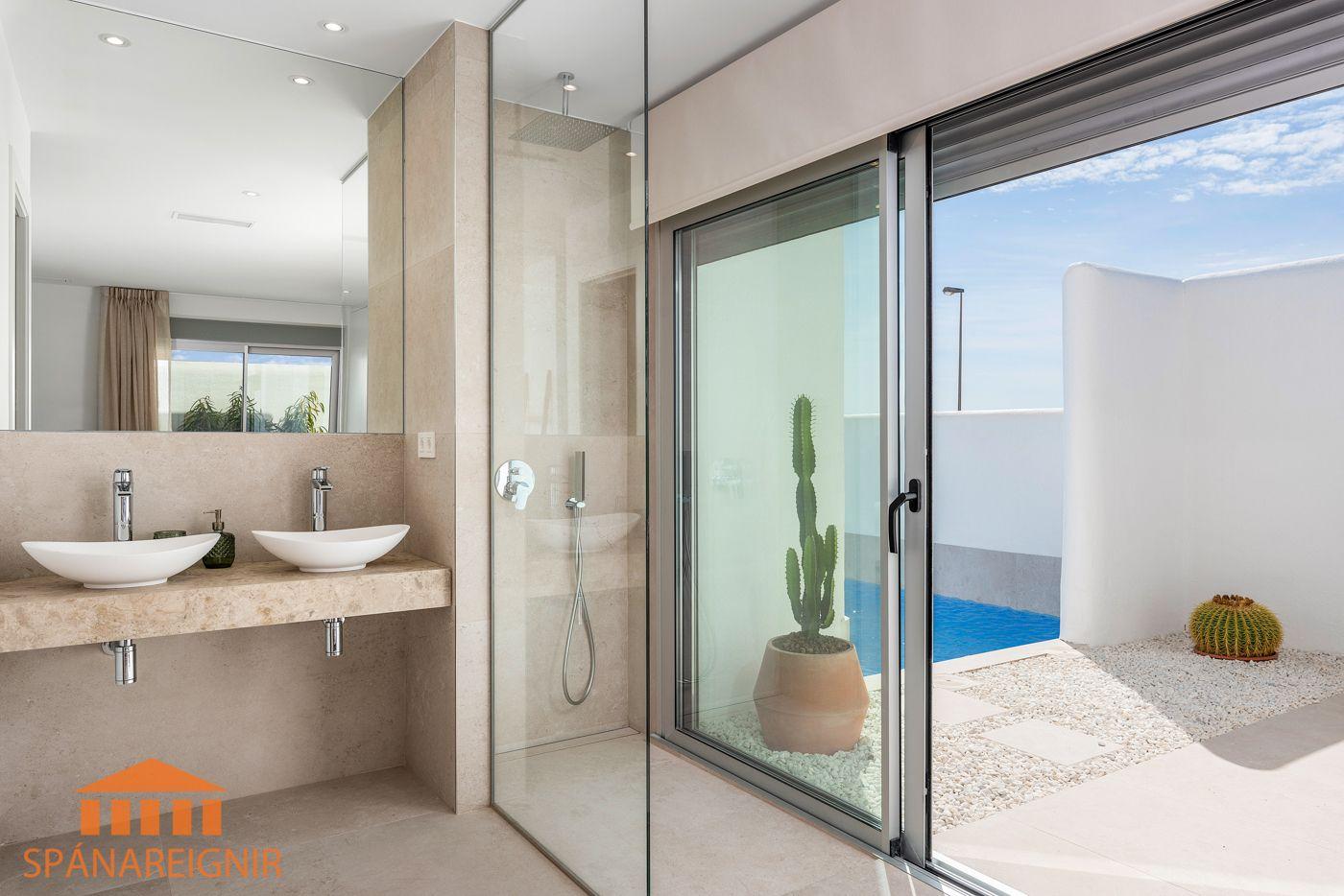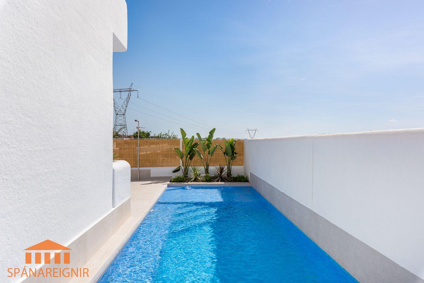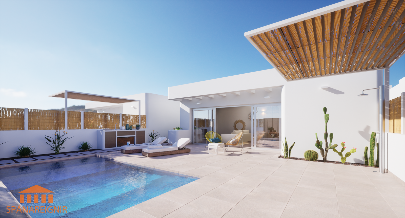 Vönduð og falleg einbýlishús á EINNI HÆÐ rétt við La Serena golfvöllinn í Los Alcazares. Þrjú svefnherbergi og tvö baðherbergi. Göngufæri á fallega strönd og gamla bæinn í Los Alcazares, þar sem svo sannarlega er sál og sjarmi, bátahöfn og skemmtilegt "promenaðe" meðfram ströndinni. Einnig eru fleiri golfvellir í nágrenninu, t.d. Roda Golf, Mar Menor golfvöllurinn, Las Colinas, Las Ramblas, Villamartin og fleiri. Um 60 mín akstur til Alicante, og ca. 10 mín. akstur til Cartagena, skemmtilega spænska borg. Fjölbreytt úrval af verslunum og veitingastöðum í göngufæri.