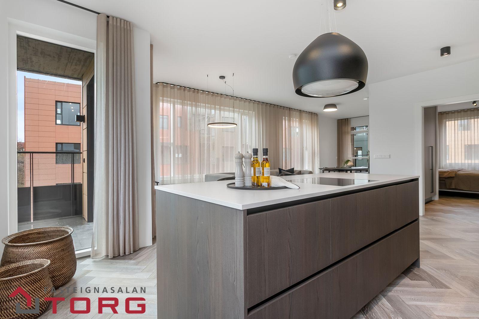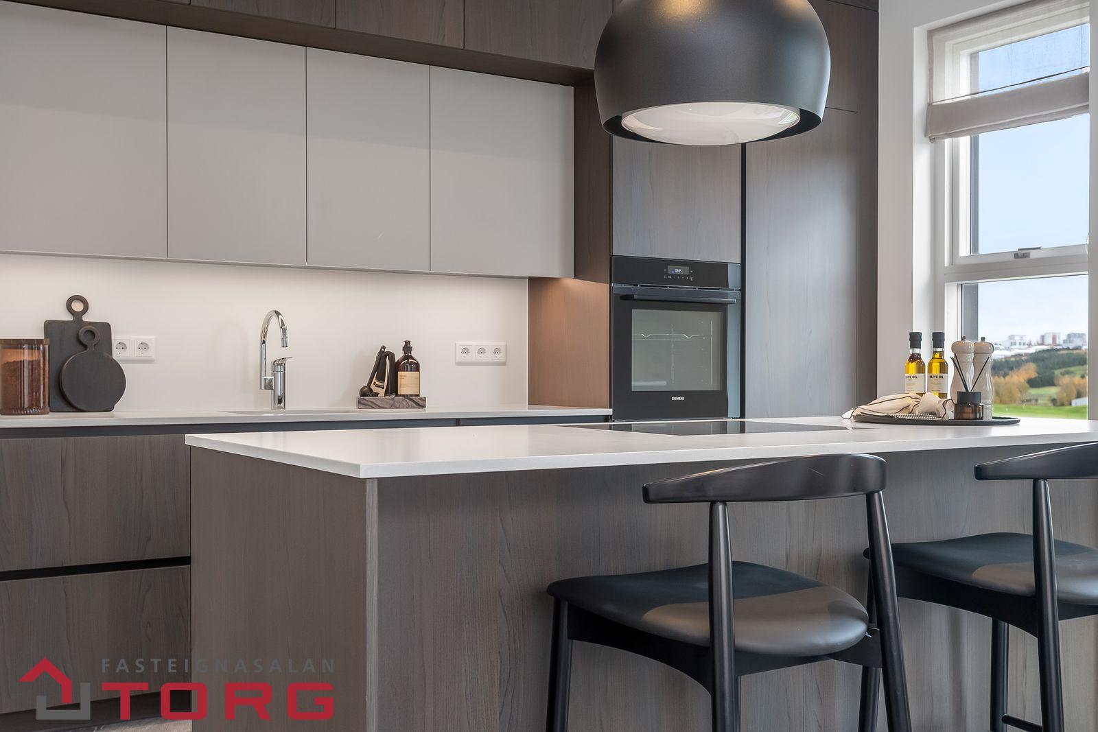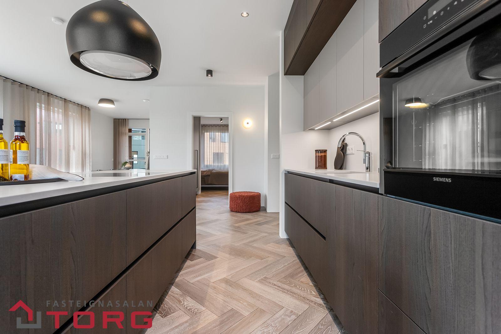 hver íbúð sitt eigið loftskiptakerfi.Við hönnun innanhúss var horft til þess að halda innréttingum þannig að þær séu klassískar og tímalausar en jafnframt nútímalegar. Vandað var við val á eldhús- og blöndunartækjum.