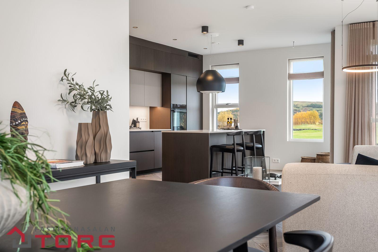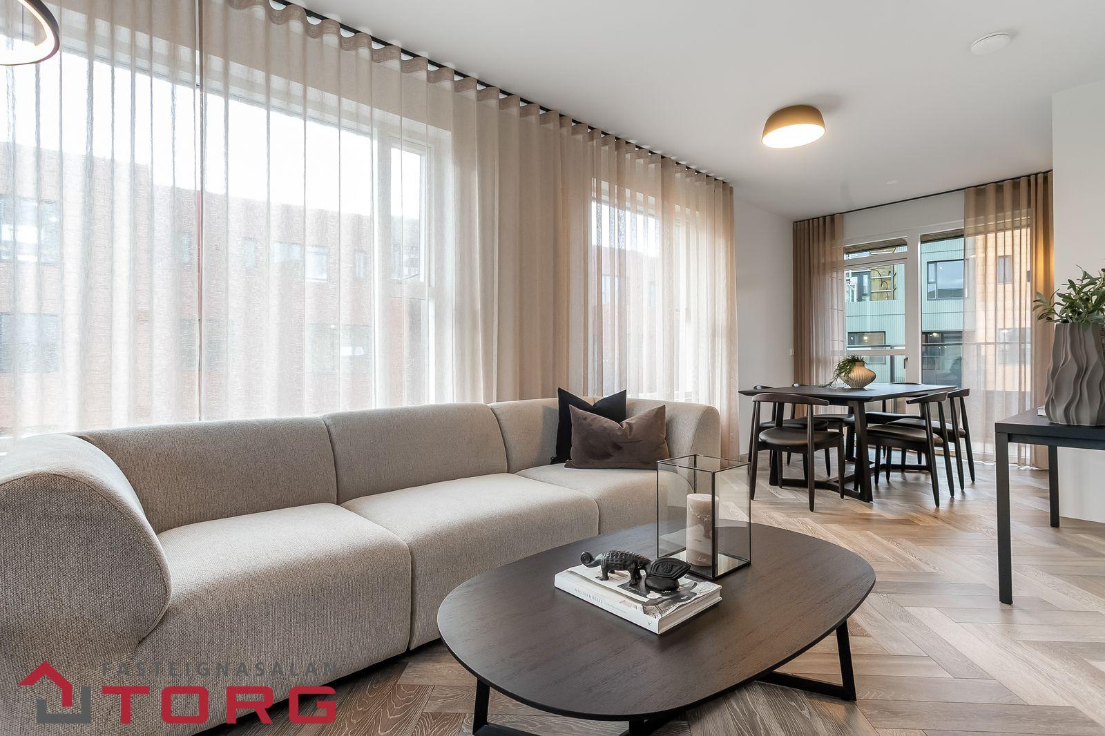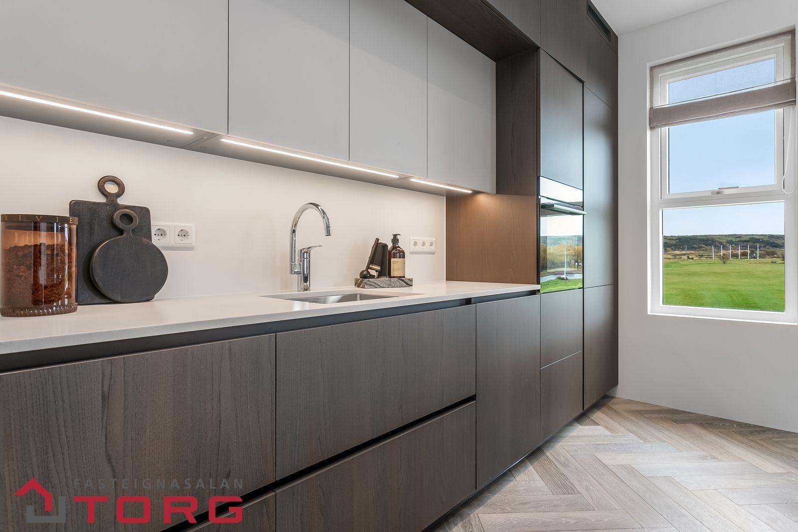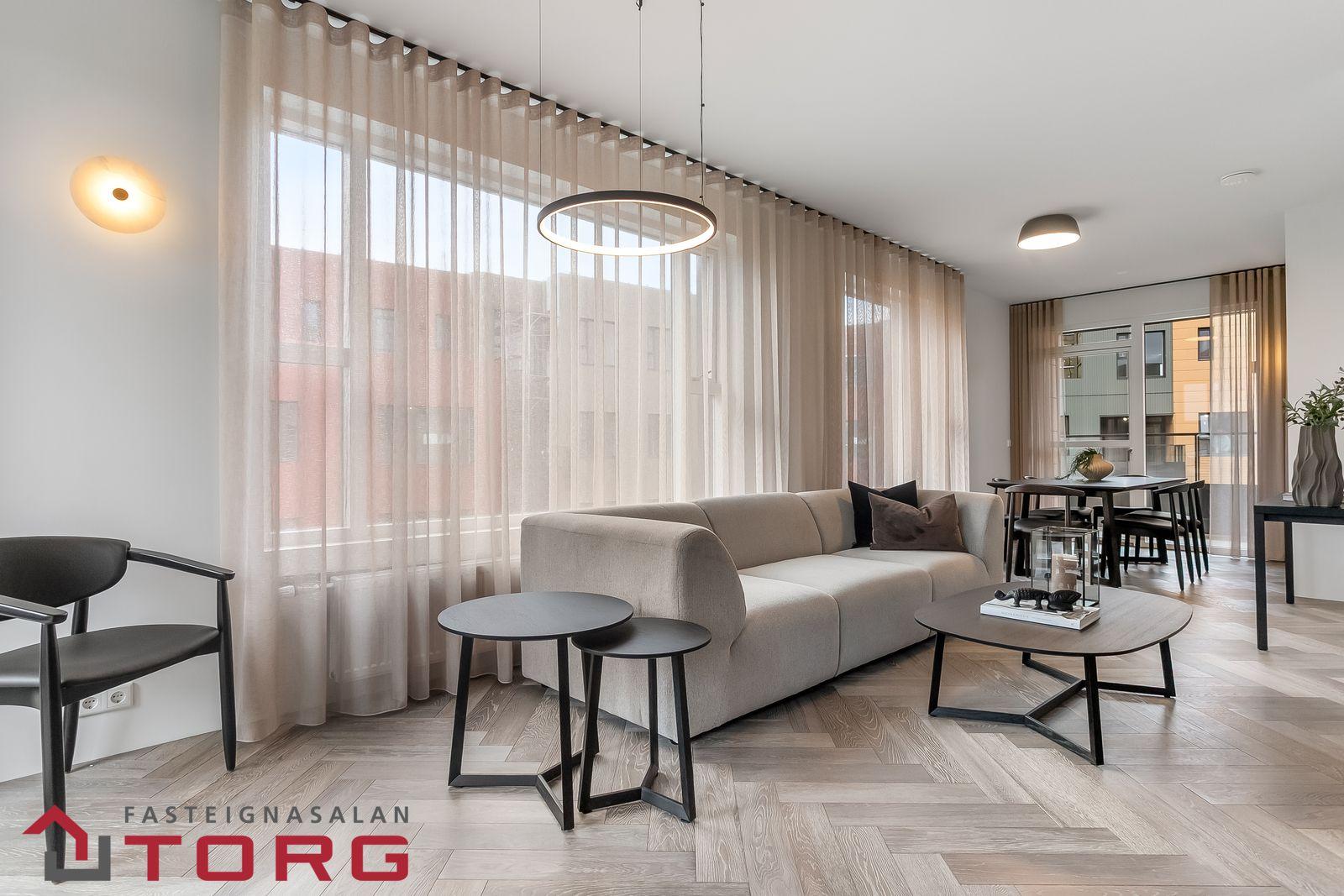 hver íbúð sitt eigið loftskiptakerfi.Við hönnun innanhúss var horft til þess að halda innréttingum þannig að þær séu klassískar og tímalausar en jafnframt nútímalegar. Vandað var við val á eldhús- og blöndunartækjum.