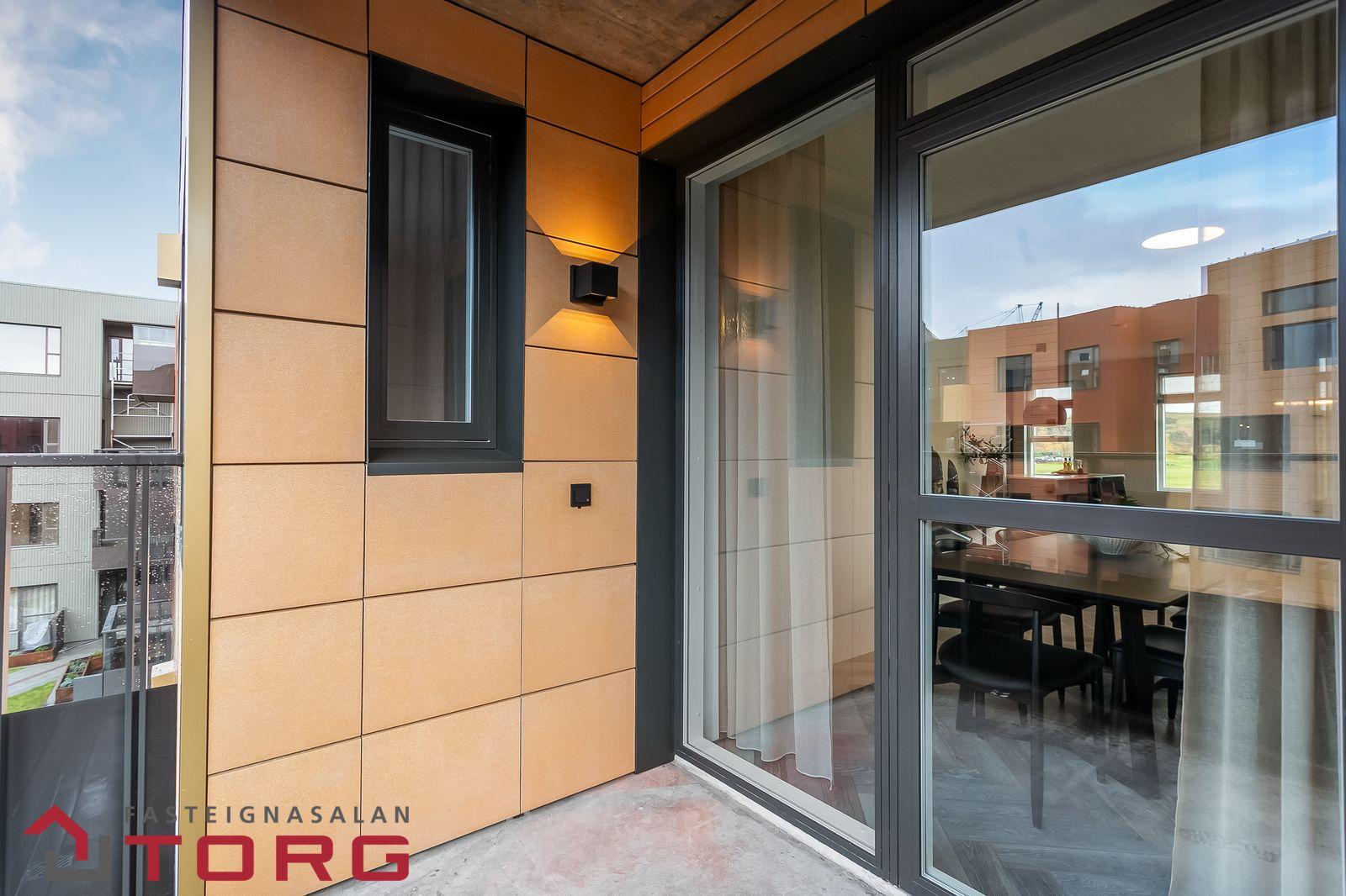 UtanhússfrágangurKlæðning: Flísar og álklæðning (báru og slétt), náttúrulegir jarðlitir.