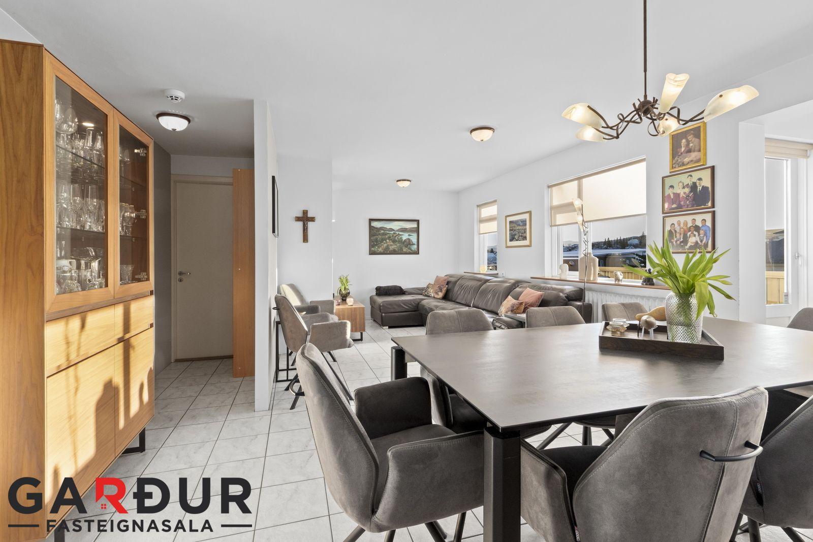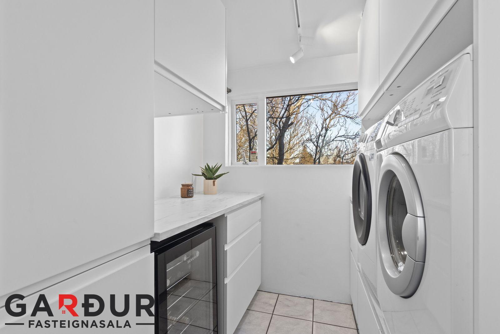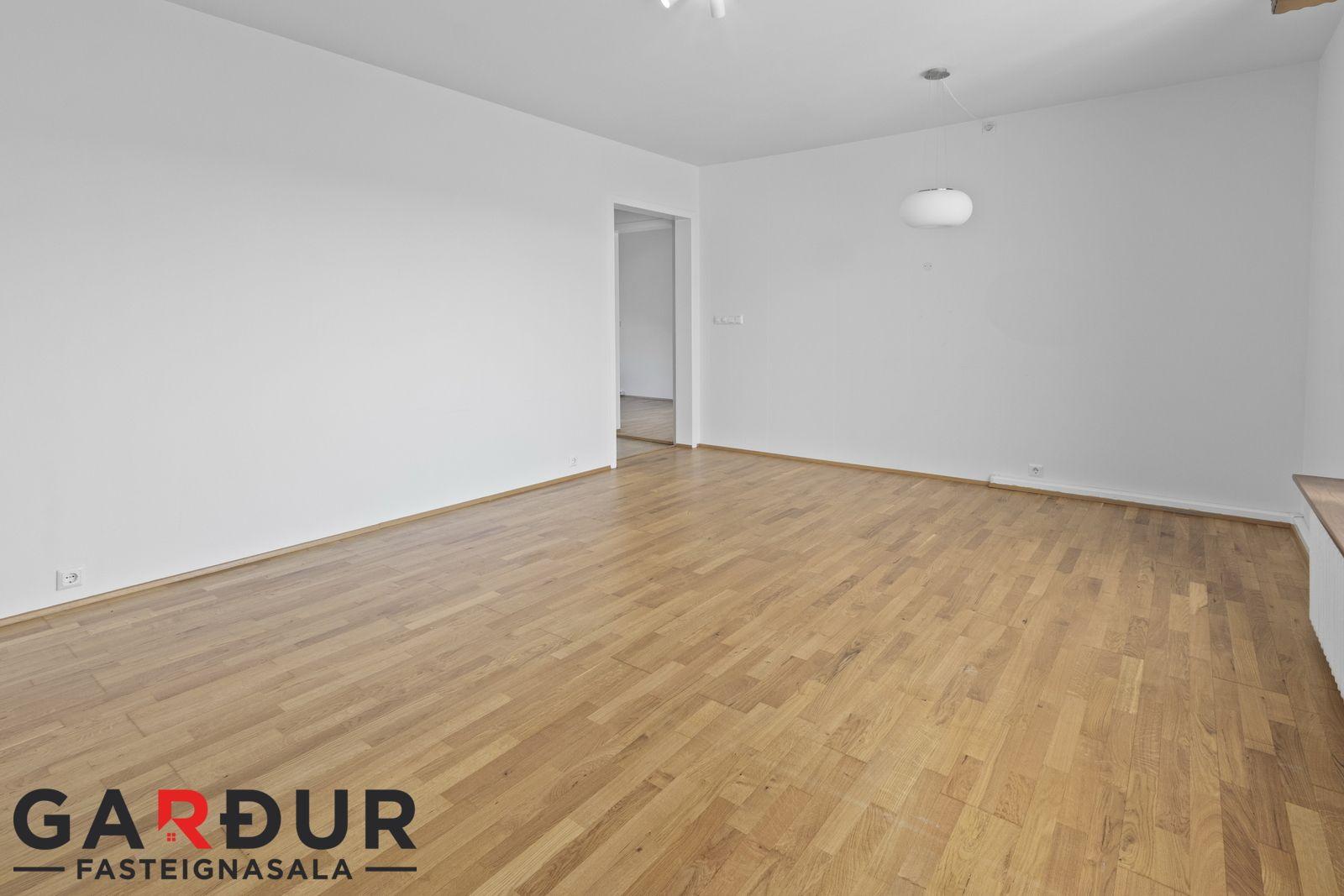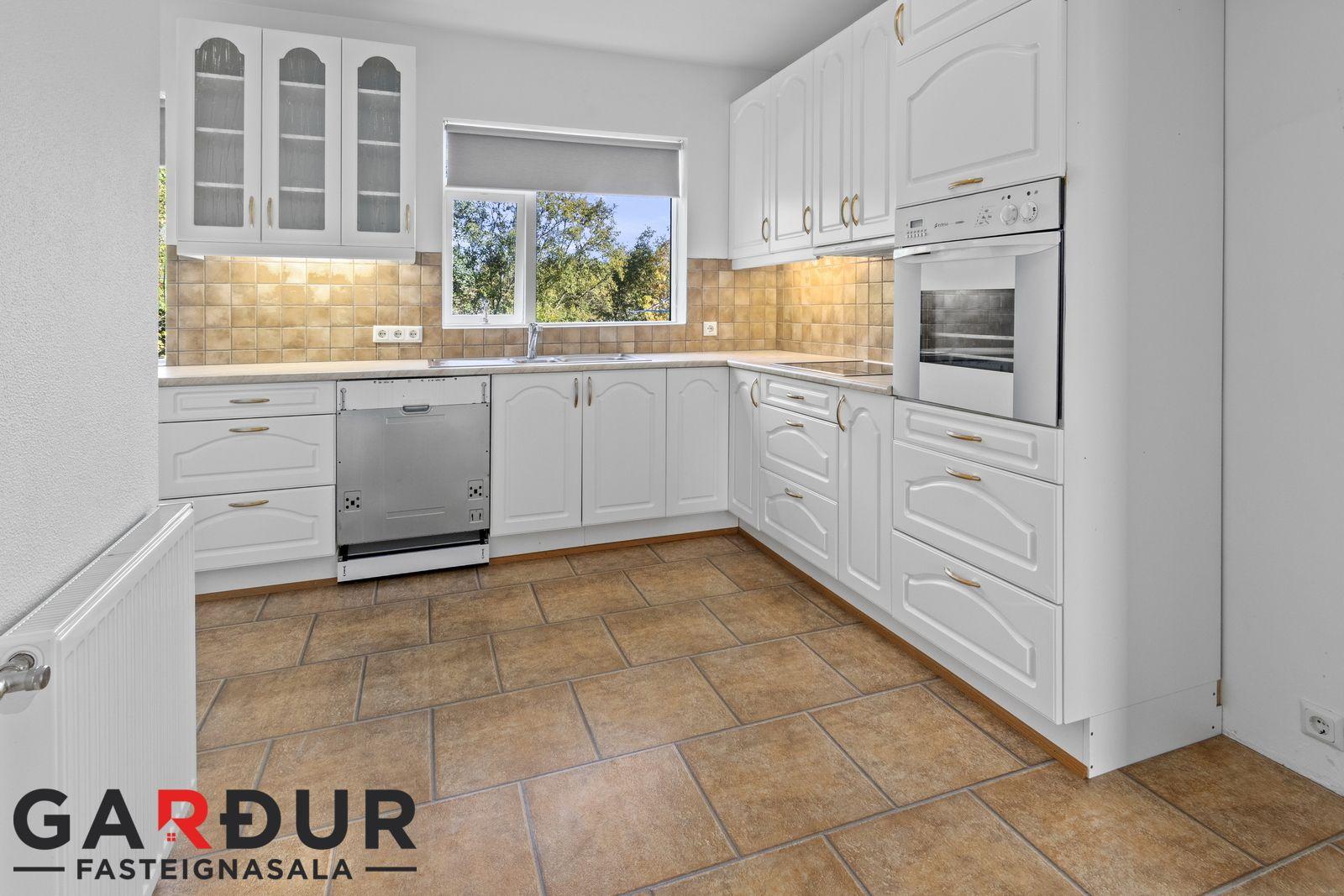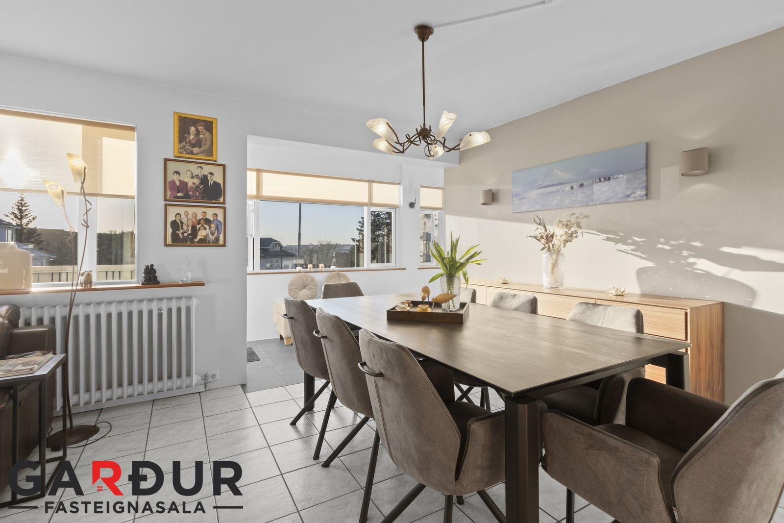 Neðri hæð: Falleg 98,9 fm 3ja til 4ra hebergja íbúð á 1.hæð Anddyri: Sérinngangur, forstofa með fatahengi. Svefnherbergi: Inn af anddyri er rúmgott svefnherbergi með góðum fataskáp. Baðherbergi: Nýlega endurnýjað baðherbergi með góðri walk in sturtu, hvít innrétting og handklæðaofn. Baðherbergið var endurnýjað 2024. Hol: Rúmgott hol sem áður var nýtt sem svefnherbergi. Auðvelt að setja upp vegg til þess að útbúa herbergið. Svefnherbergi II: Rúmgott svefnherbergi með fataskáp. Stofa: Mjög björt stofa og borðstofa með góðum glugga Eldhús: Falleg hvít eldhúsinnrétting með góðu skápaplássi, tengi fyrir uppþvottavél og bakarofn í vinnuhæð. Innréttingin lýtur vel út og er gott pláss í kringum innréttinguna. Inn af eldhúsi er bakinngangur þar sem er hægt að komast út á timburverönd út í garði. Þvottahús: Gott þvottahús með hvítri innréttingu þar sem er pláss fyrir þvottavél og þurrkara í vinnuhæð. Þvottahúsgólf flotað og IKEA innrétting sett upp 2024.