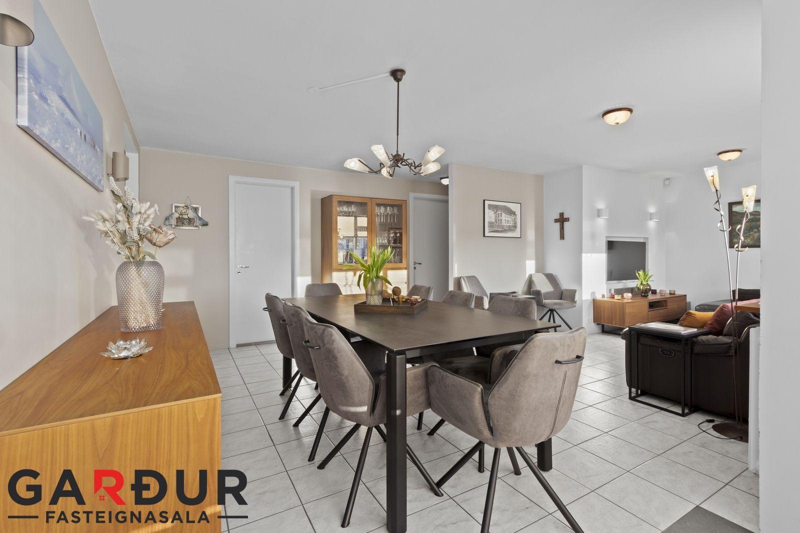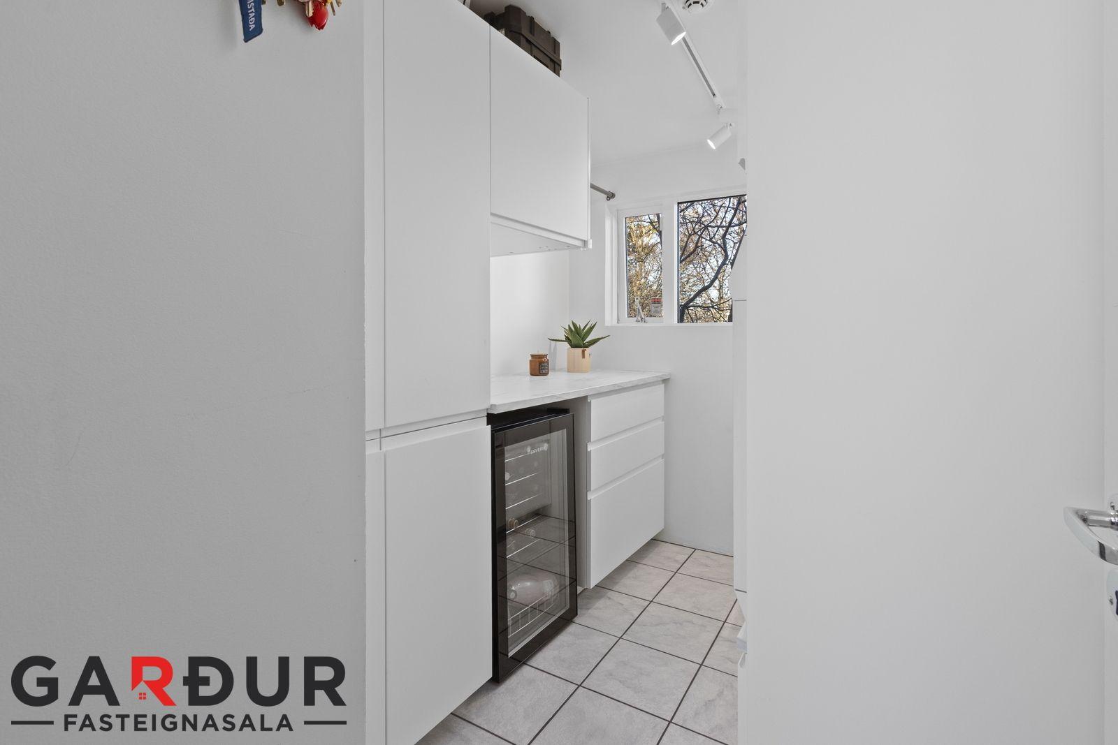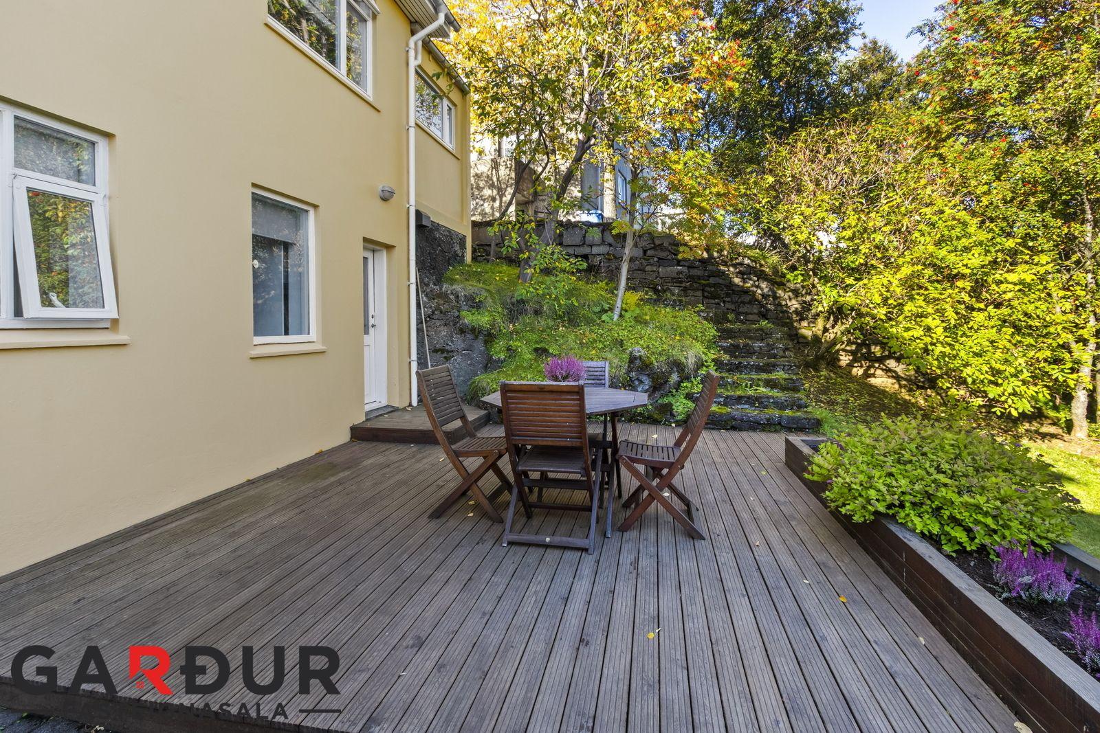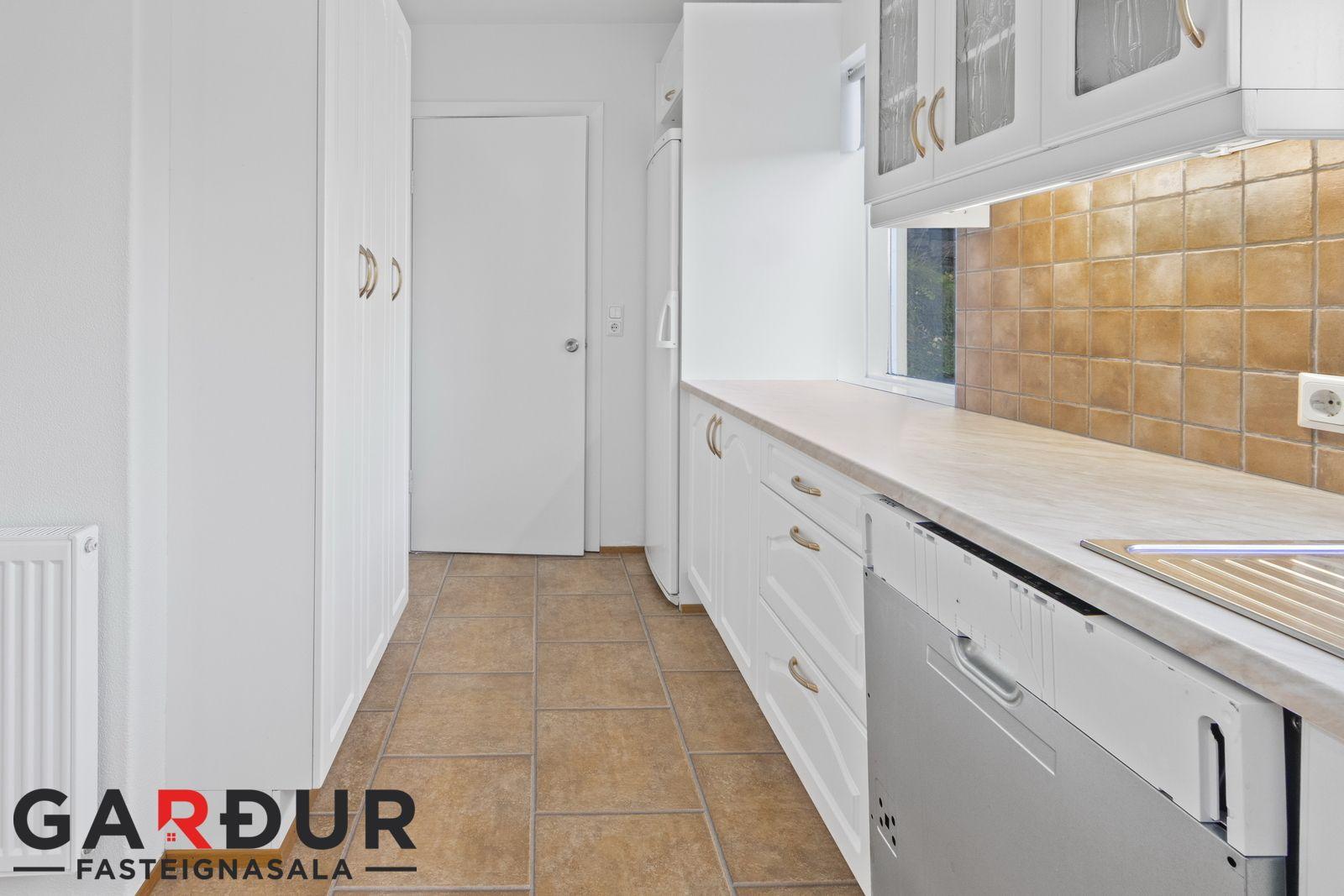 Neðri hæð: Falleg 98,9 fm 3ja til 4ra hebergja íbúð á 1.hæð Anddyri: Sérinngangur, forstofa með fatahengi. Svefnherbergi: Inn af anddyri er rúmgott svefnherbergi með góðum fataskáp. Baðherbergi: Nýlega endurnýjað baðherbergi með góðri walk in sturtu, hvít innrétting og handklæðaofn. Baðherbergið var endurnýjað 2024. Hol: Rúmgott hol sem áður var nýtt sem svefnherbergi. Auðvelt að setja upp vegg til þess að útbúa herbergið. Svefnherbergi II: Rúmgott svefnherbergi með fataskáp. Stofa: Mjög björt stofa og borðstofa með góðum glugga Eldhús: Falleg hvít eldhúsinnrétting með góðu skápaplássi, tengi fyrir uppþvottavél og bakarofn í vinnuhæð. Innréttingin lýtur vel út og er gott pláss í kringum innréttinguna. Inn af eldhúsi er bakinngangur þar sem er hægt að komast út á timburverönd út í garði. Þvottahús: Gott þvottahús með hvítri innréttingu þar sem er pláss fyrir þvottavél og þurrkara í vinnuhæð. Þvottahúsgólf flotað og IKEA innrétting sett upp 2024.