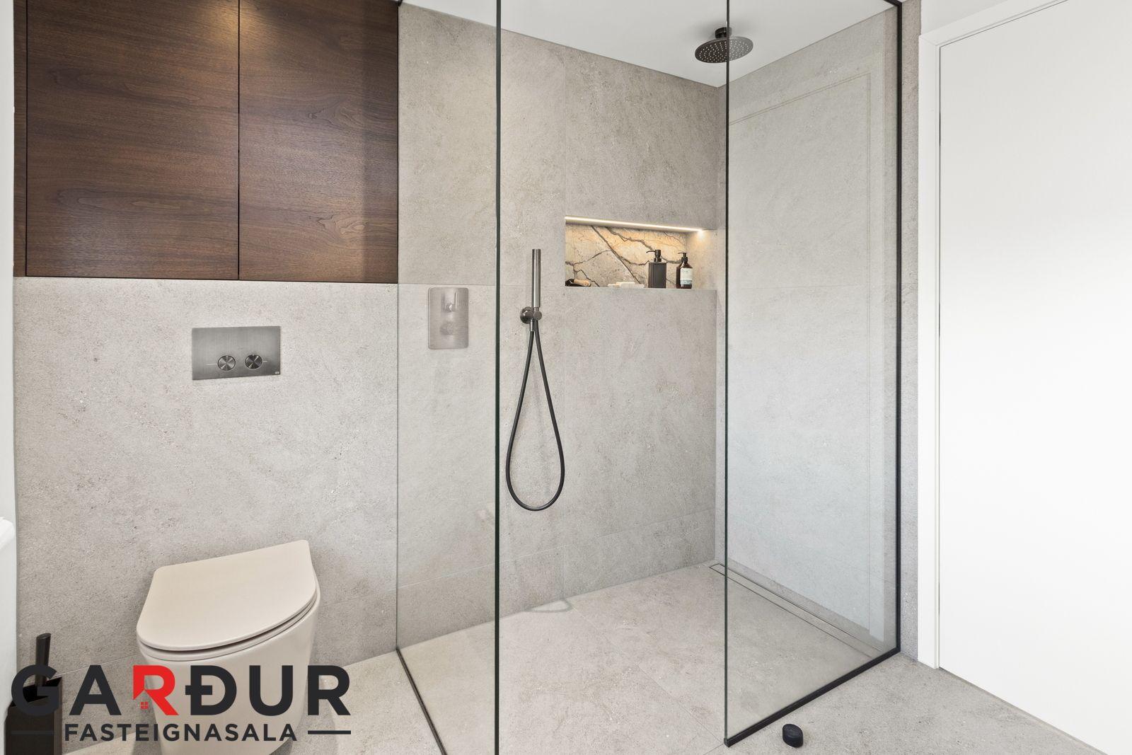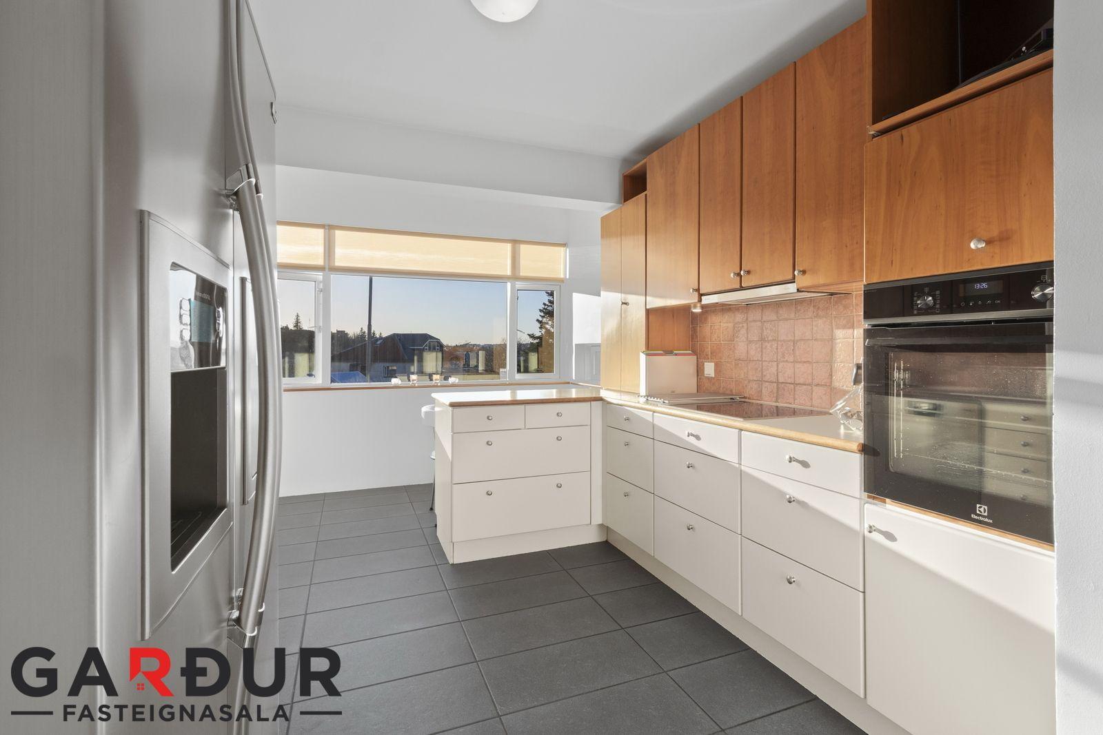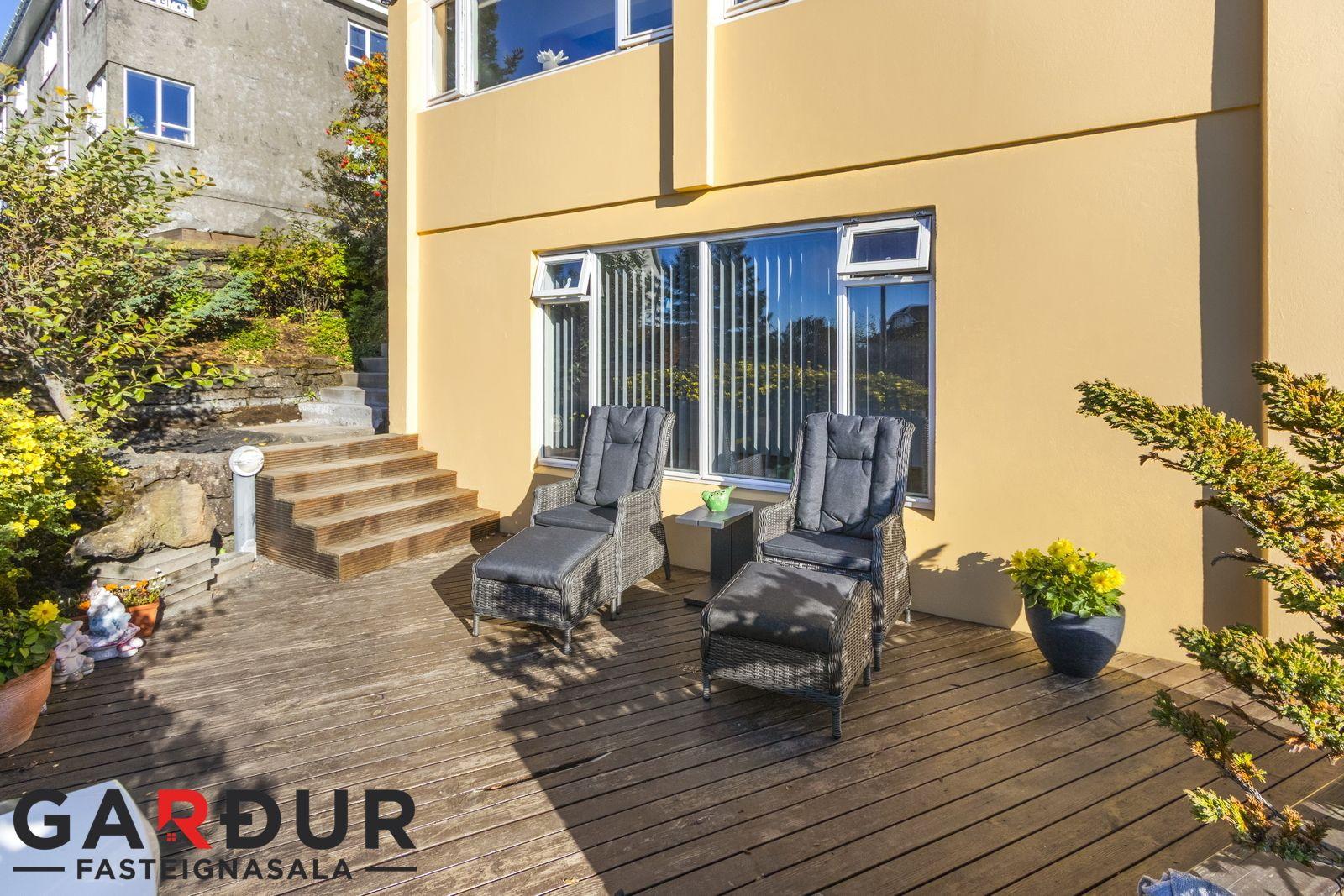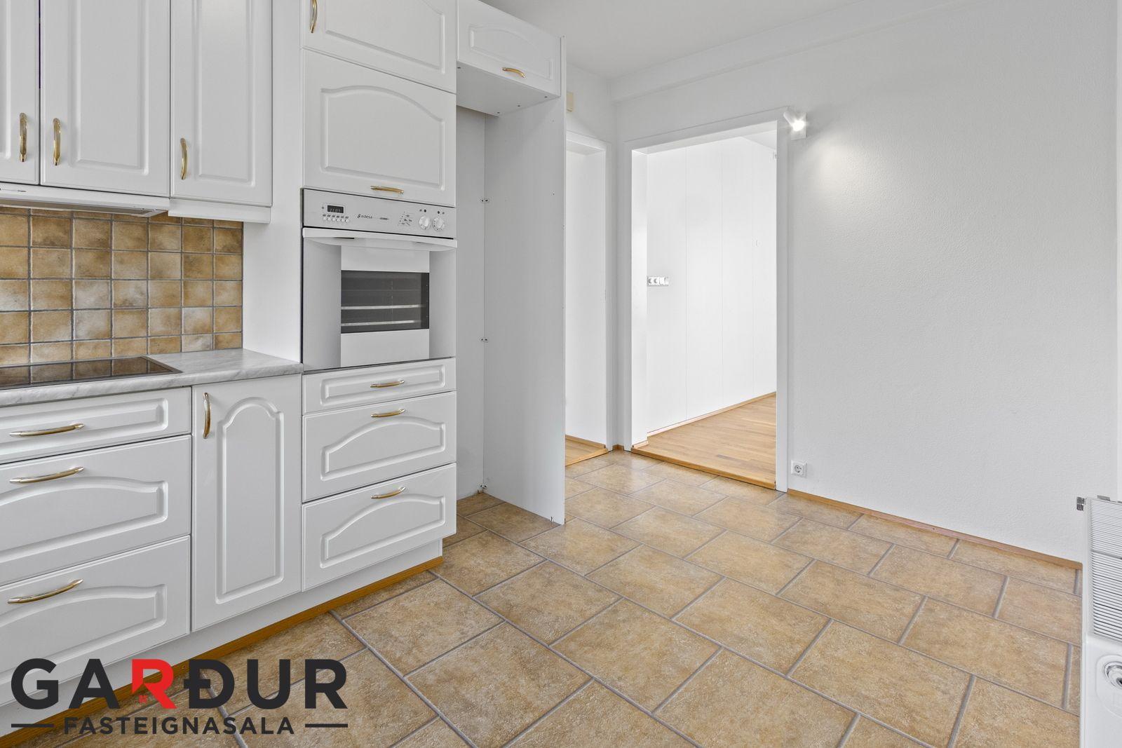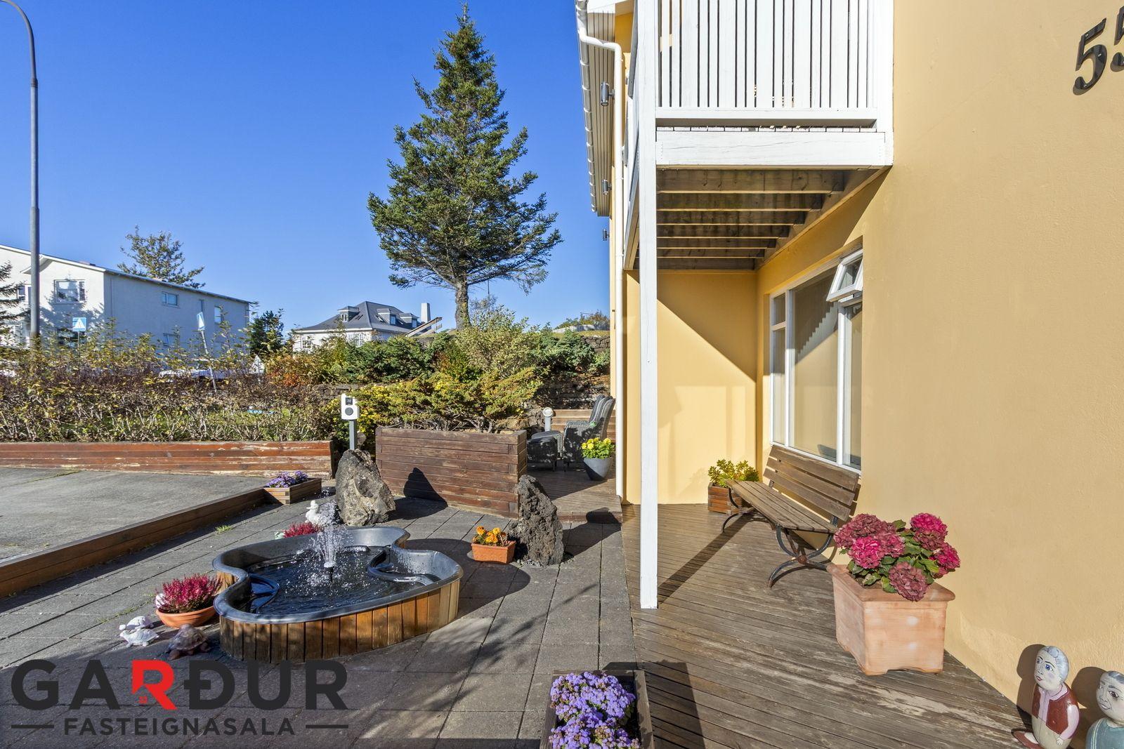 Neðri hæð: Falleg 98,9 fm 3ja til 4ra hebergja íbúð á 1.hæð Anddyri: Sérinngangur, forstofa með fatahengi. Svefnherbergi: Inn af anddyri er rúmgott svefnherbergi með góðum fataskáp. Baðherbergi: Nýlega endurnýjað baðherbergi með góðri walk in sturtu, hvít innrétting og handklæðaofn. Baðherbergið var endurnýjað 2024. Hol: Rúmgott hol sem áður var nýtt sem svefnherbergi. Auðvelt að setja upp vegg til þess að útbúa herbergið. Svefnherbergi II: Rúmgott svefnherbergi með fataskáp. Stofa: Mjög björt stofa og borðstofa með góðum glugga Eldhús: Falleg hvít eldhúsinnrétting með góðu skápaplássi, tengi fyrir uppþvottavél og bakarofn í vinnuhæð. Innréttingin lýtur vel út og er gott pláss í kringum innréttinguna. Inn af eldhúsi er bakinngangur þar sem er hægt að komast út á timburverönd út í garði. Þvottahús: Gott þvottahús með hvítri innréttingu þar sem er pláss fyrir þvottavél og þurrkara í vinnuhæð. Þvottahúsgólf flotað og IKEA innrétting sett upp 2024.