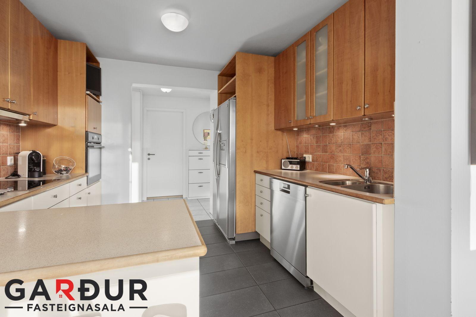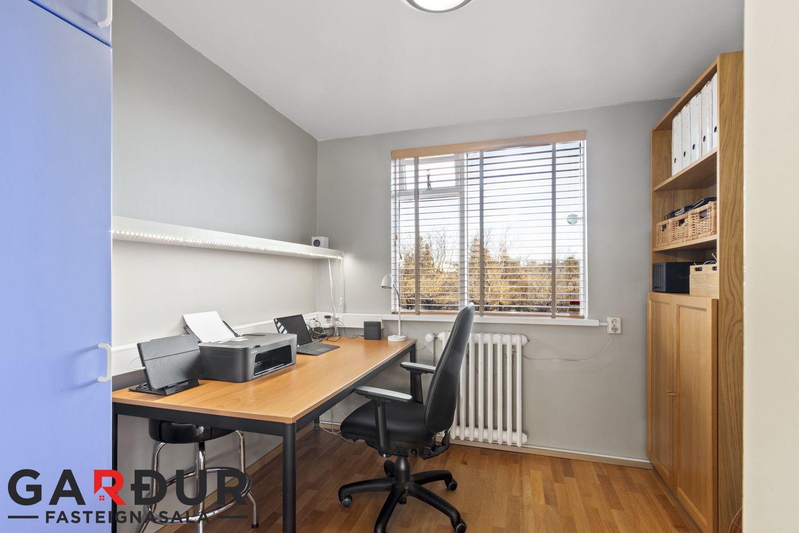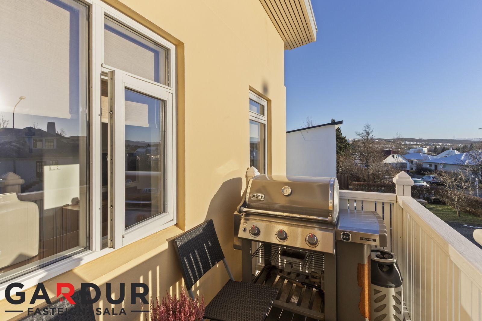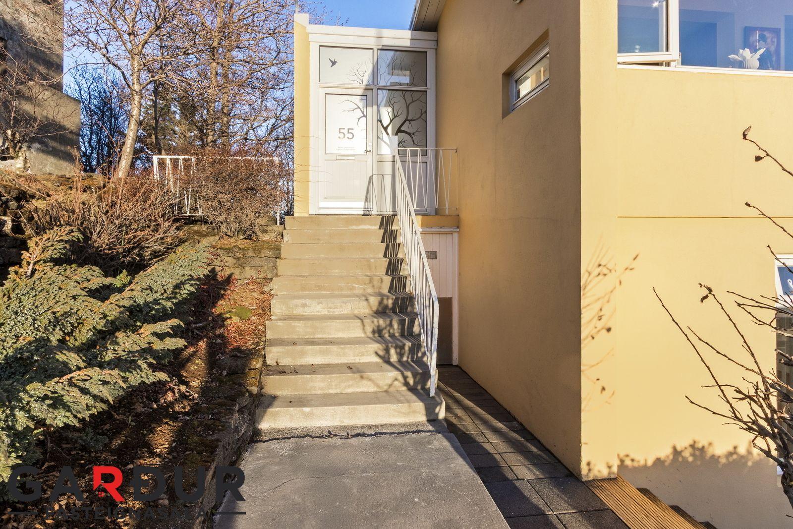 Neðri hæð: Falleg 98,9 fm 3ja til 4ra hebergja íbúð á 1.hæð Anddyri: Sérinngangur, forstofa með fatahengi. Svefnherbergi: Inn af anddyri er rúmgott svefnherbergi með góðum fataskáp. Baðherbergi: Nýlega endurnýjað baðherbergi með góðri walk in sturtu, hvít innrétting og handklæðaofn. Baðherbergið var endurnýjað 2024. Hol: Rúmgott hol sem áður var nýtt sem svefnherbergi. Auðvelt að setja upp vegg til þess að útbúa herbergið. Svefnherbergi II: Rúmgott svefnherbergi með fataskáp. Stofa: Mjög björt stofa og borðstofa með góðum glugga Eldhús: Falleg hvít eldhúsinnrétting með góðu skápaplássi, tengi fyrir uppþvottavél og bakarofn í vinnuhæð. Innréttingin lýtur vel út og er gott pláss í kringum innréttinguna. Inn af eldhúsi er bakinngangur þar sem er hægt að komast út á timburverönd út í garði. Þvottahús: Gott þvottahús með hvítri innréttingu þar sem er pláss fyrir þvottavél og þurrkara í vinnuhæð. Þvottahúsgólf flotað og IKEA innrétting sett upp 2024.