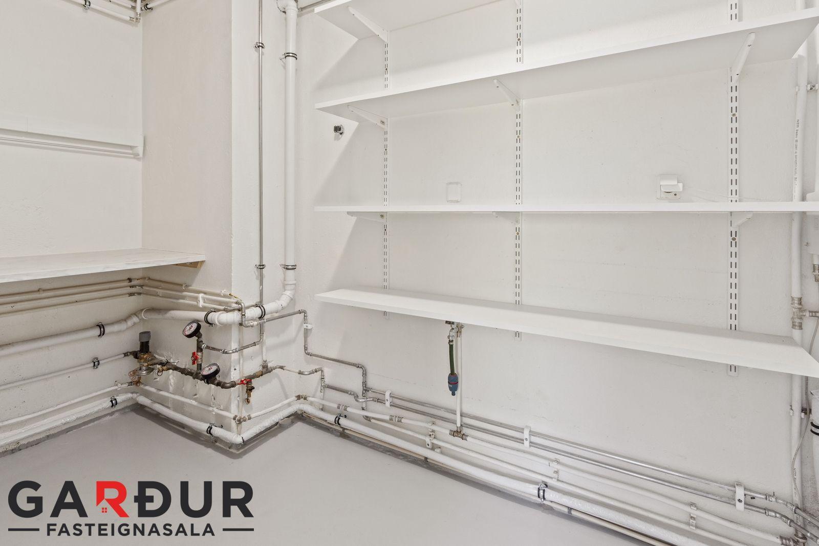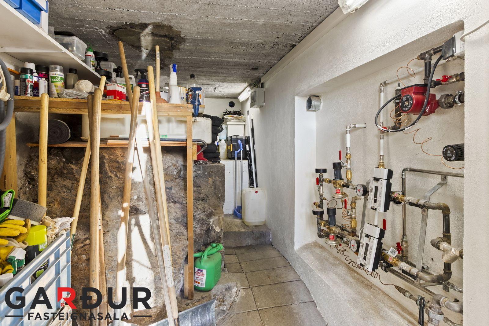 Sameign: Undir stiga er mjög góð sameiginleg geymsla þar sem hitagrindin er staðsett. Hitaveitugrindur endurnýjaðar 2024 og kaldavatnsheimtaug lögð ný inn í sept. 2025.