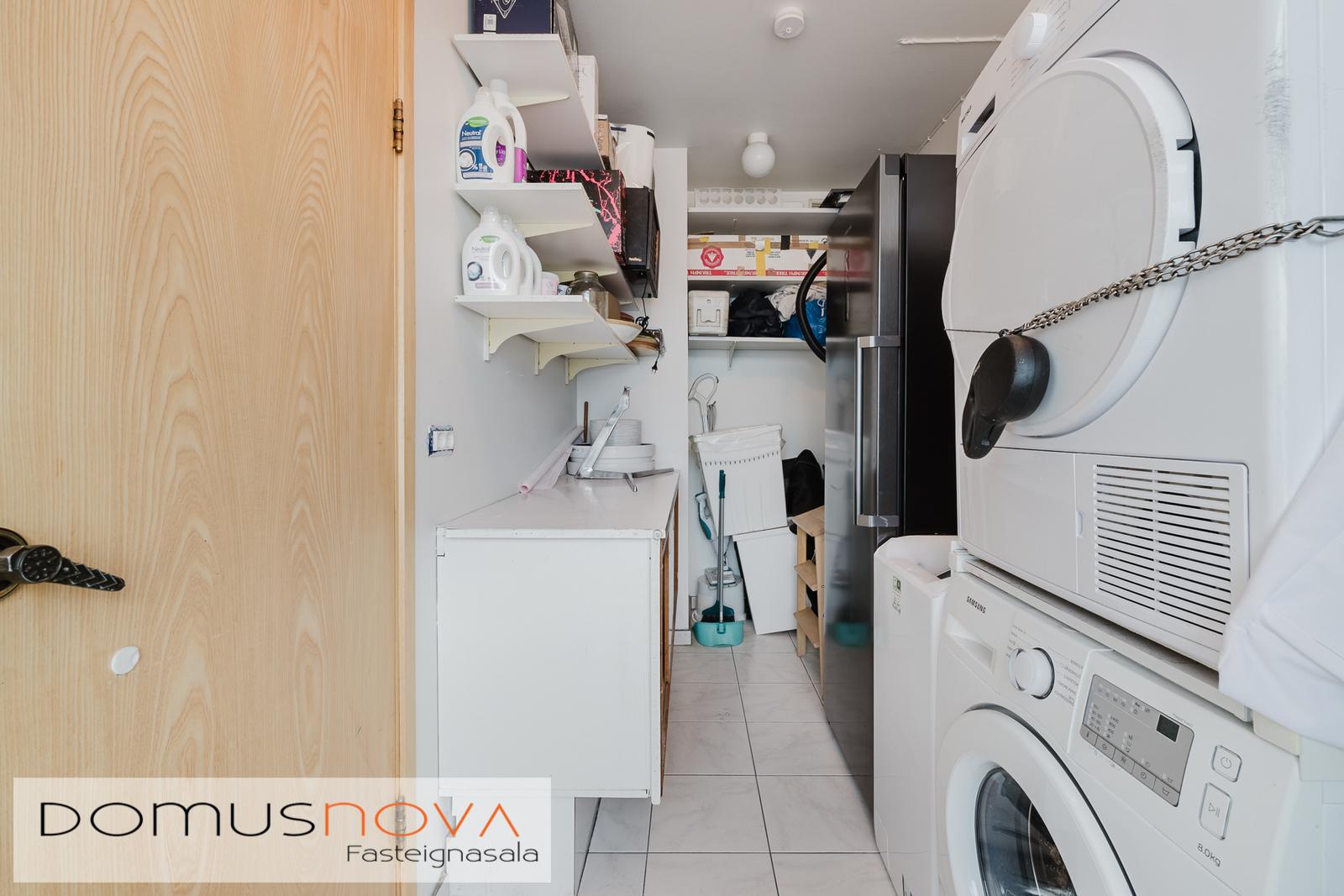 Þvottahús/búr/geymsla - er inn af eldhúsi, tengi fyrir þvottavél og þurrkara ásamt góður geymslurými, flýstar á gólfi.