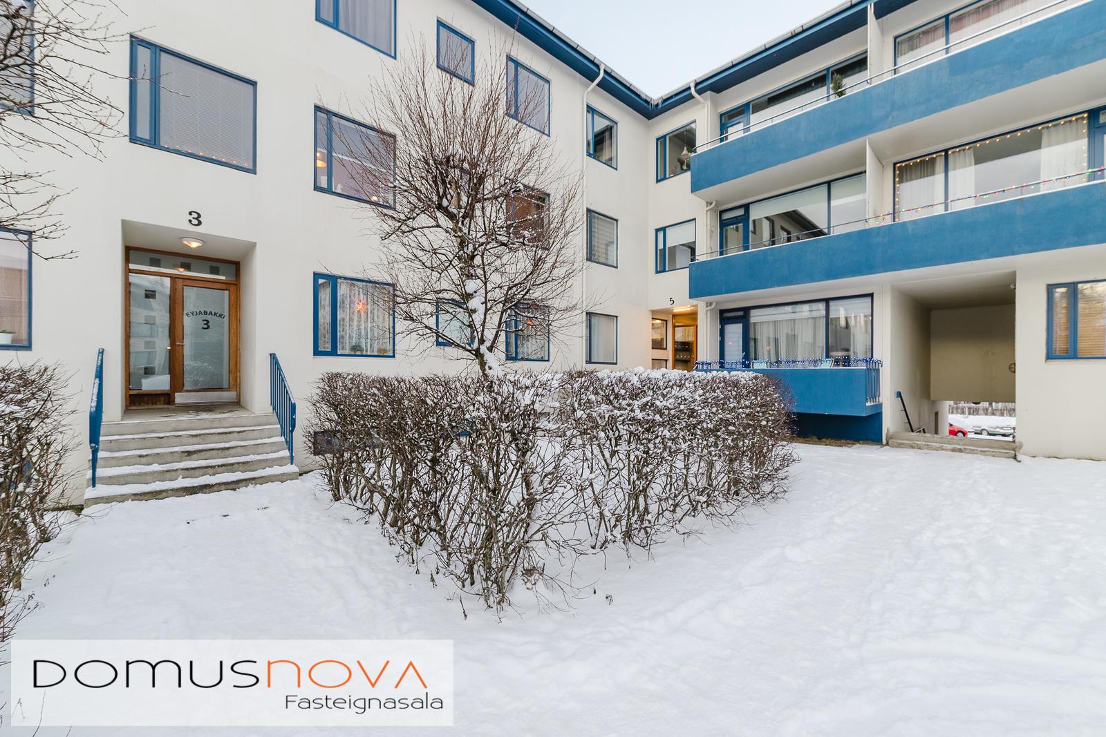 Eignin skiptist í þriggja herbergja íbúð (80 fm) á annarri hæð með sér þvottahúsi/búri inn af eldhúsi, rúmgóðri stofu/borðstofu, tveimur svefnherbergjum og baðherbergi.