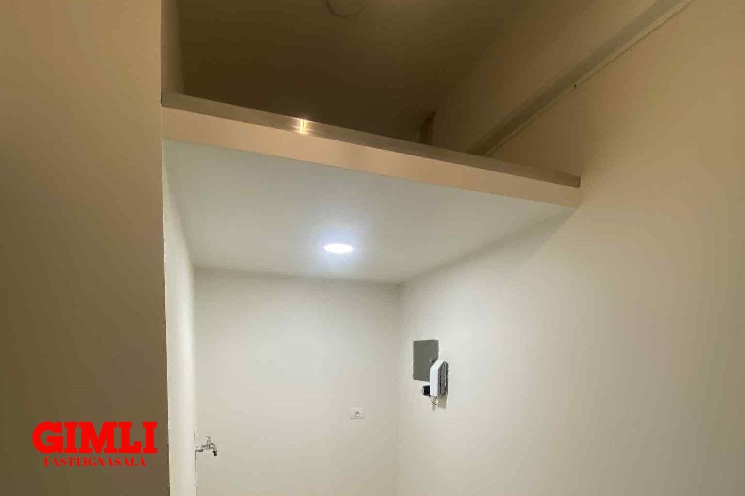 Þvottaaðstaða og geymslupláss: er innan íbúðar, gengið upp tvær tröppur. Þar er tengi fyrir þvottavél og þurrkara. Geymsluloft yfir rýminu
