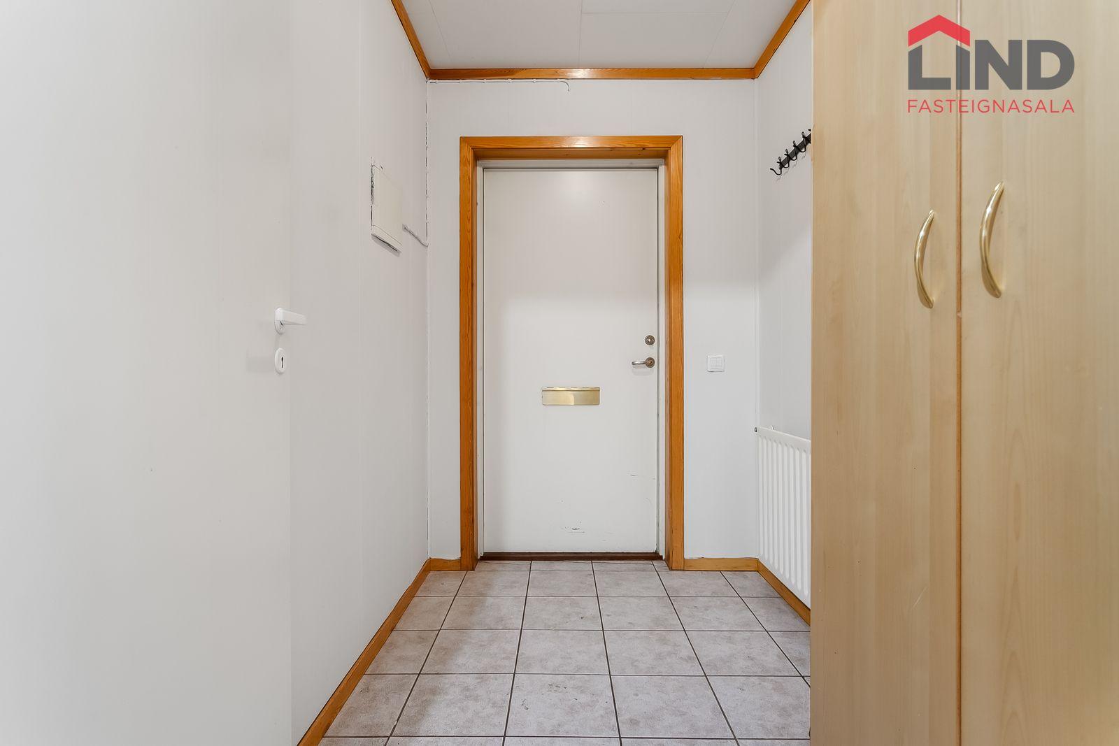Komið er inn í forstofu með flísum á gólfi. Úr forstofu er komið inn í hol með parketi á gólfi.
