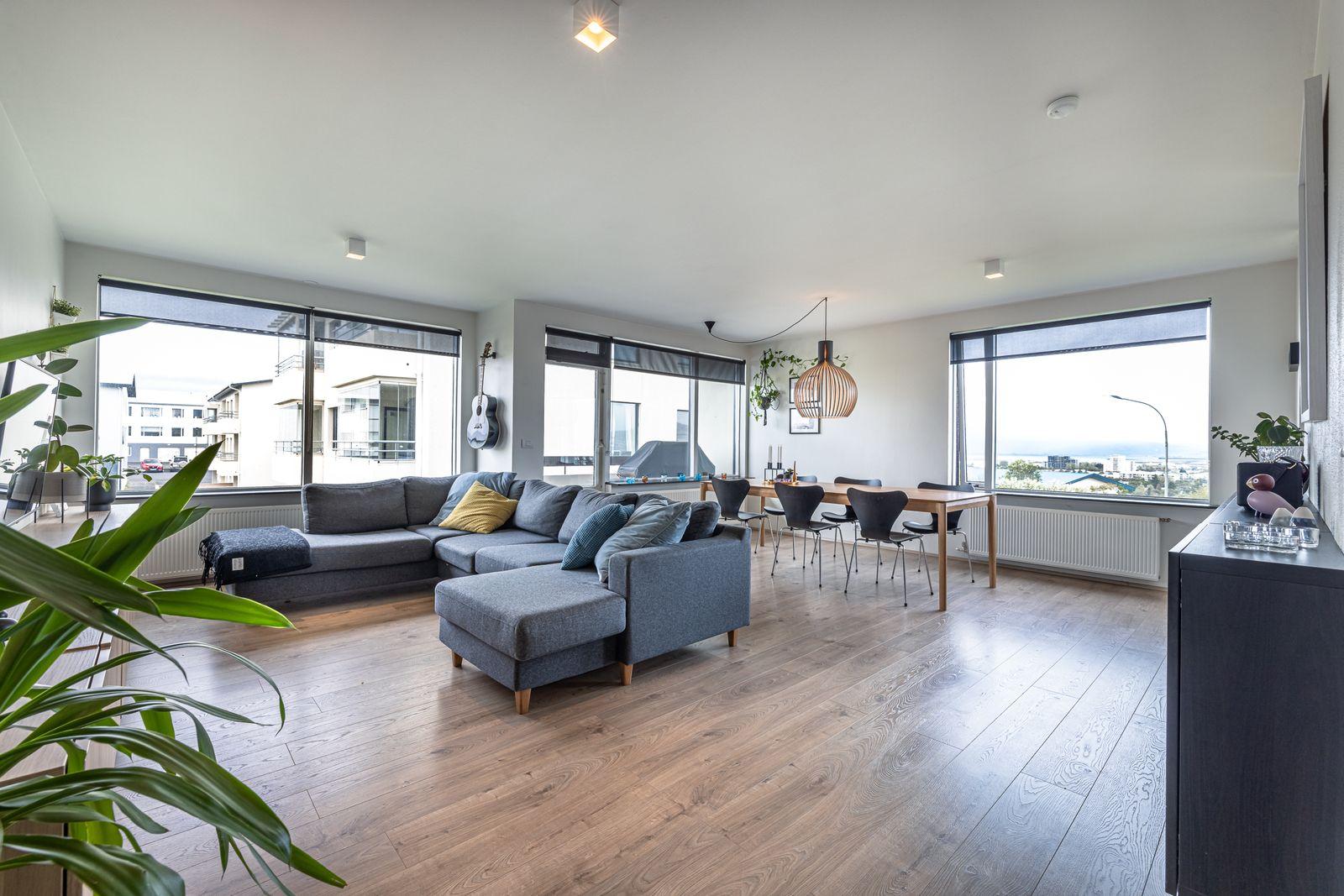 Frábært útsýni er úr íbúðinni. Á seinustu árum er búið er að endurnýja eldhús, baðherbergi, gólfefni, hurðar og alla ofna (nema einn í þvottahúsi), rafmagnstengla og dósir og auka rafmagnstafla var sett í eldhúsið.