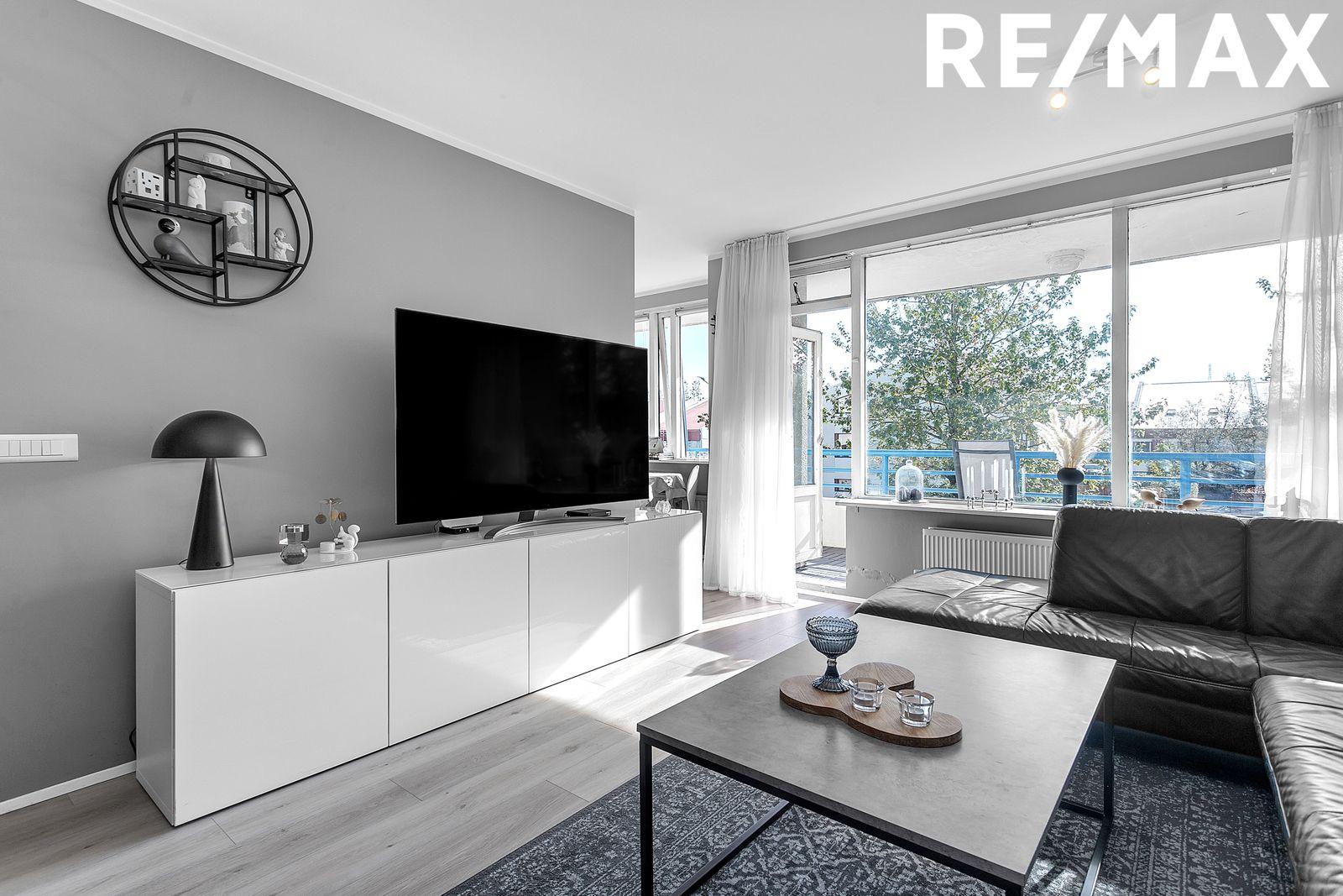 Stofa/borðstofa: Eru í sameiginlegu björtu rými með stórum gluggum með útgengi út á svalir.